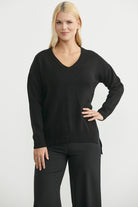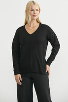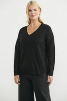 Oversize V Yaka Triko Kazak - Siyah