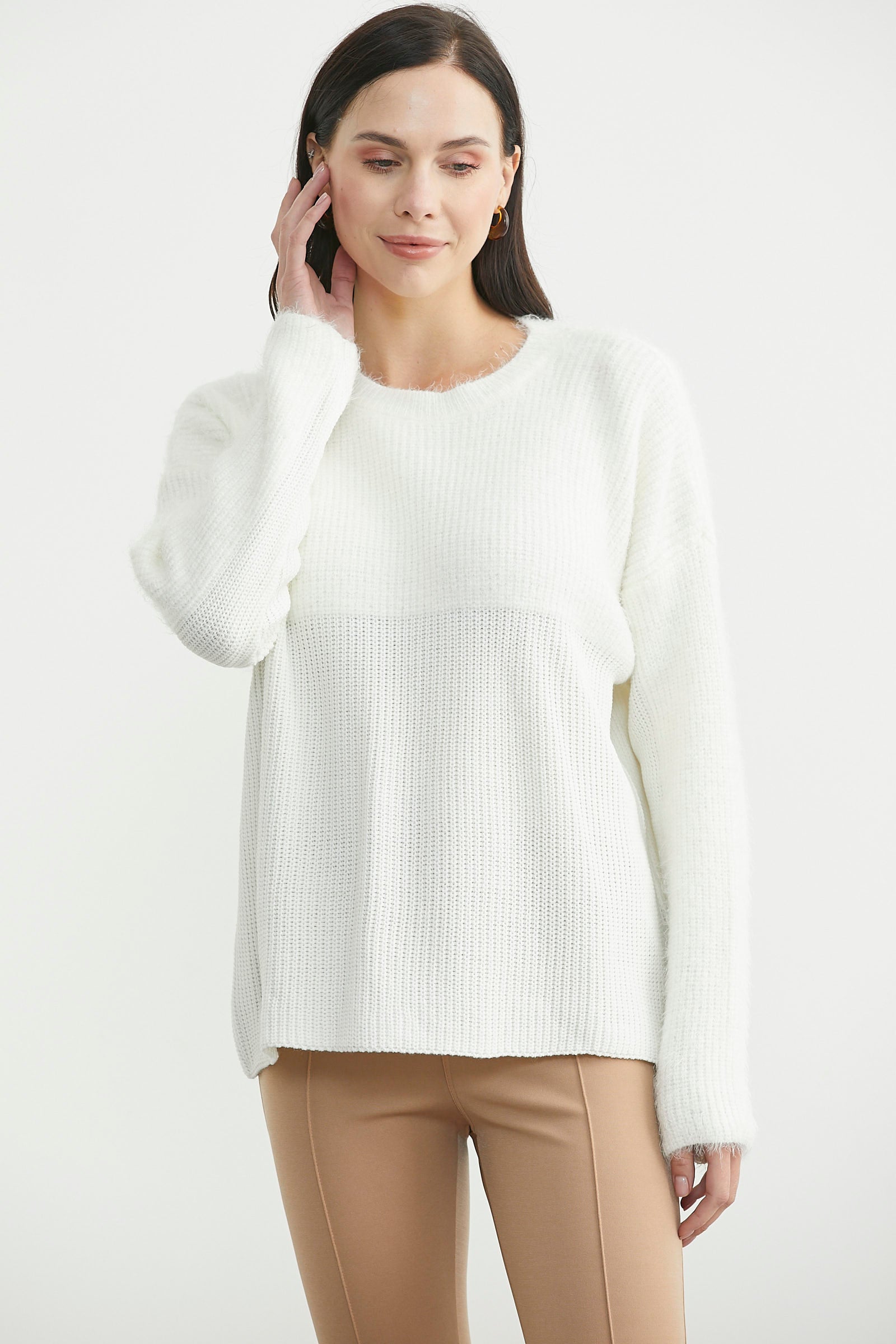 Oversize Yumuşak Dokulu Triko Kazak - Beyaz