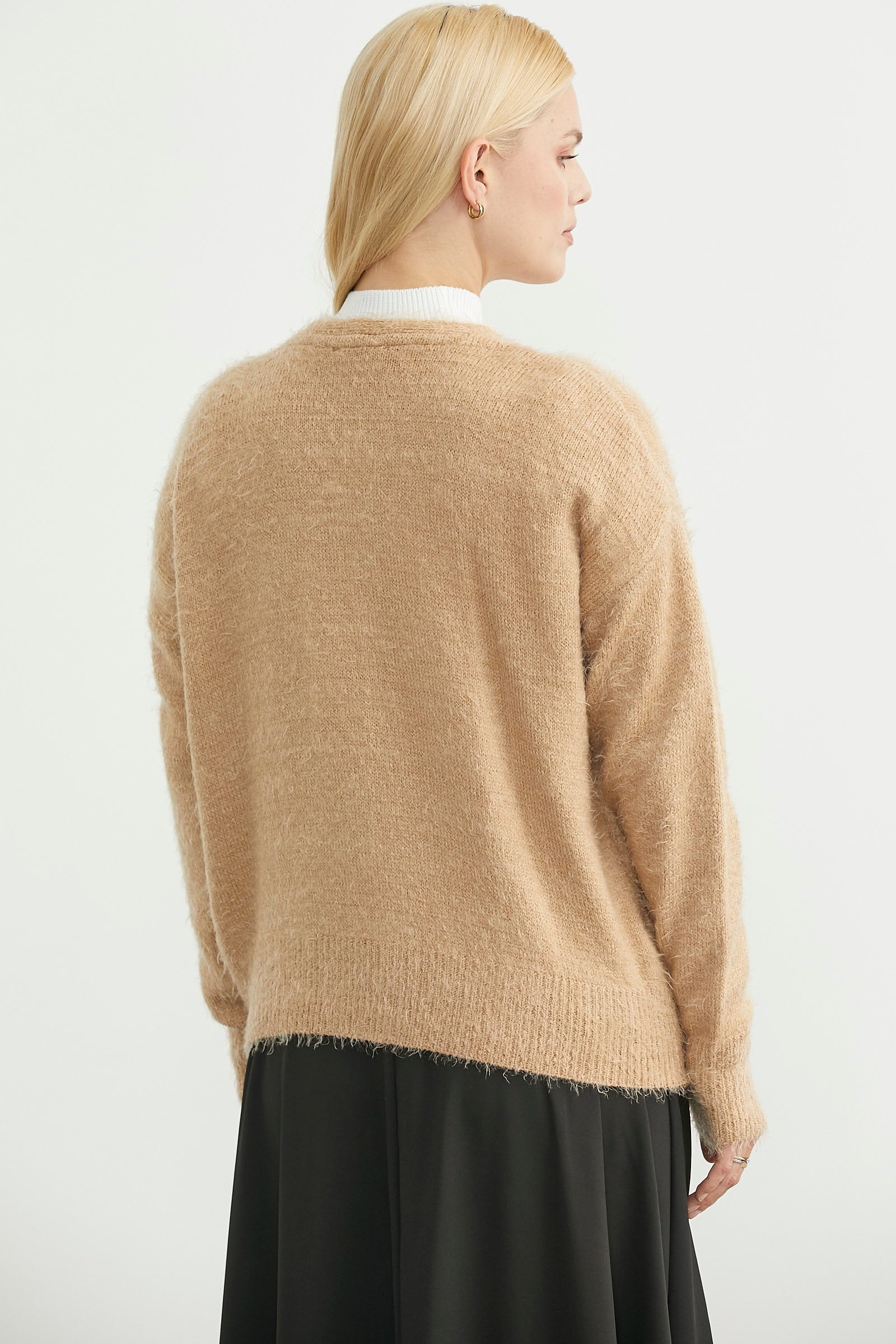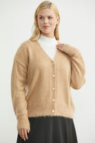 Pamuklu Yumoş Triko Hırka - Karamel