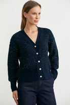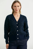Payet Detaylı Yünlü Triko Hırka - Lacivert