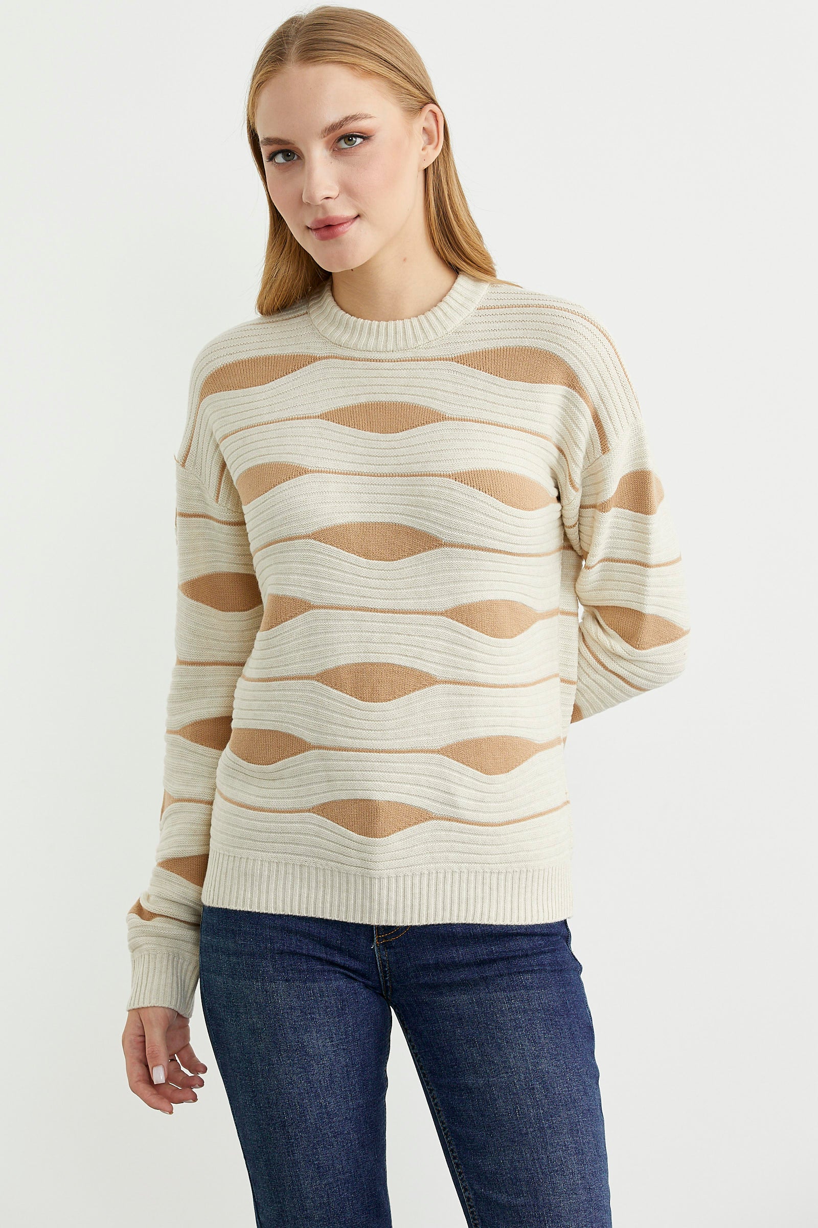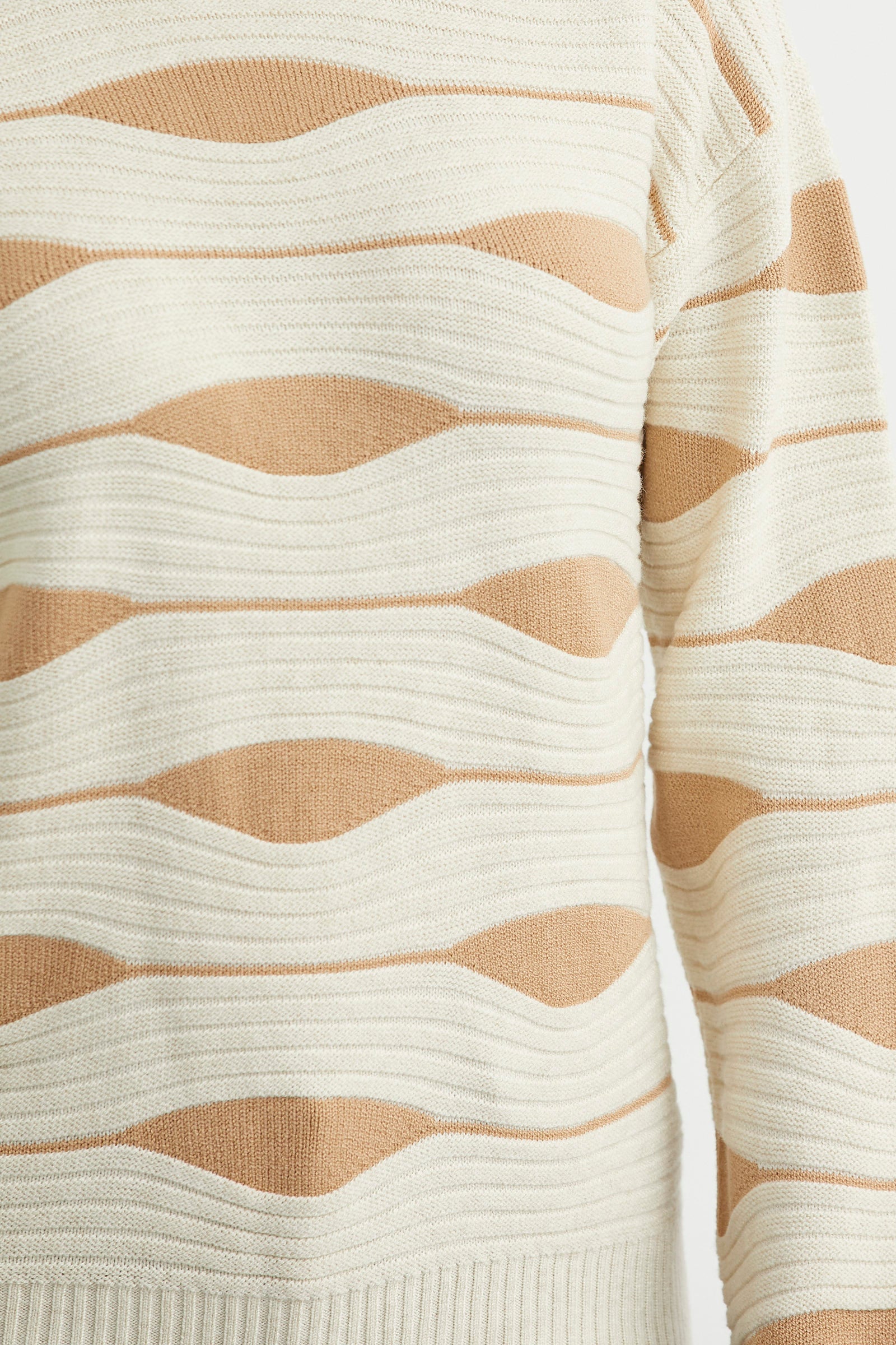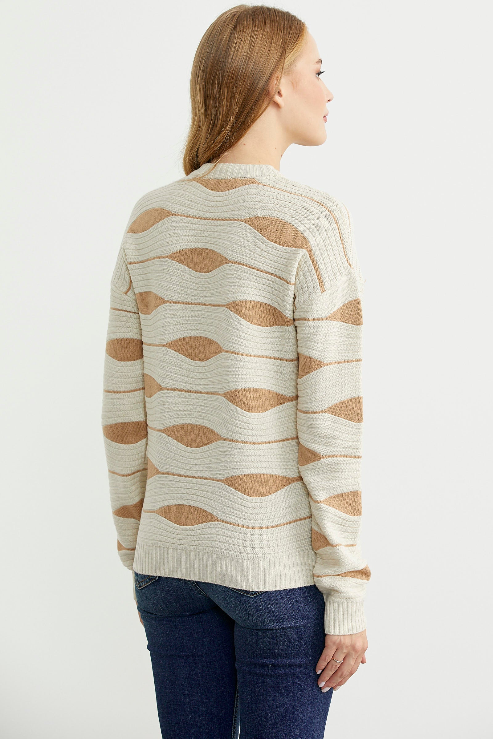 Kombinli kullanılan renk ve motif detayına sahiptir. Uzun kollu ve sıfır yakadır.