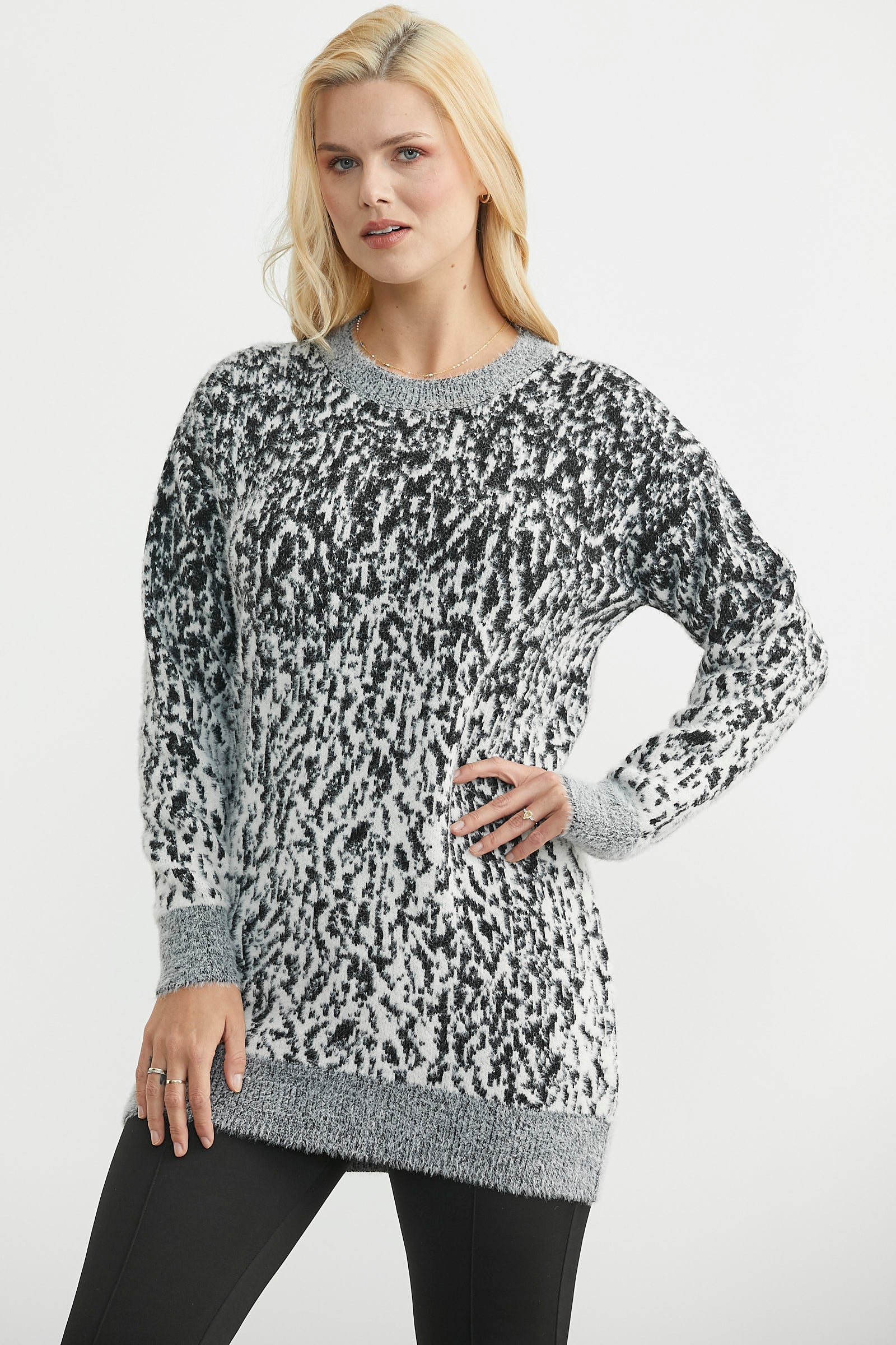 Sakallı ipten örülmüş, desenli, kol ve etek ucu lastik triko tunik.