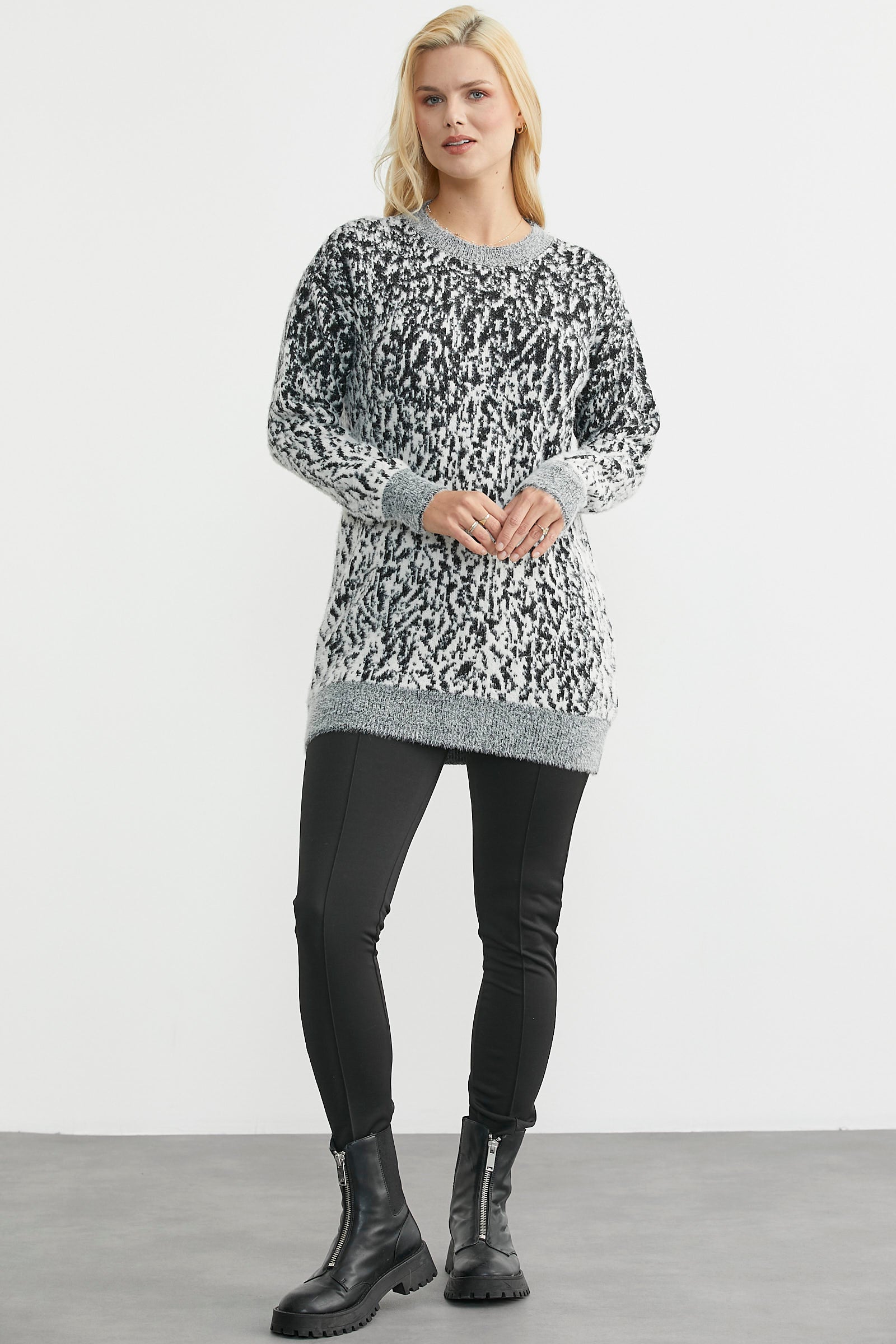Renk Kombinli Tunik Triko Kazak - Siyah