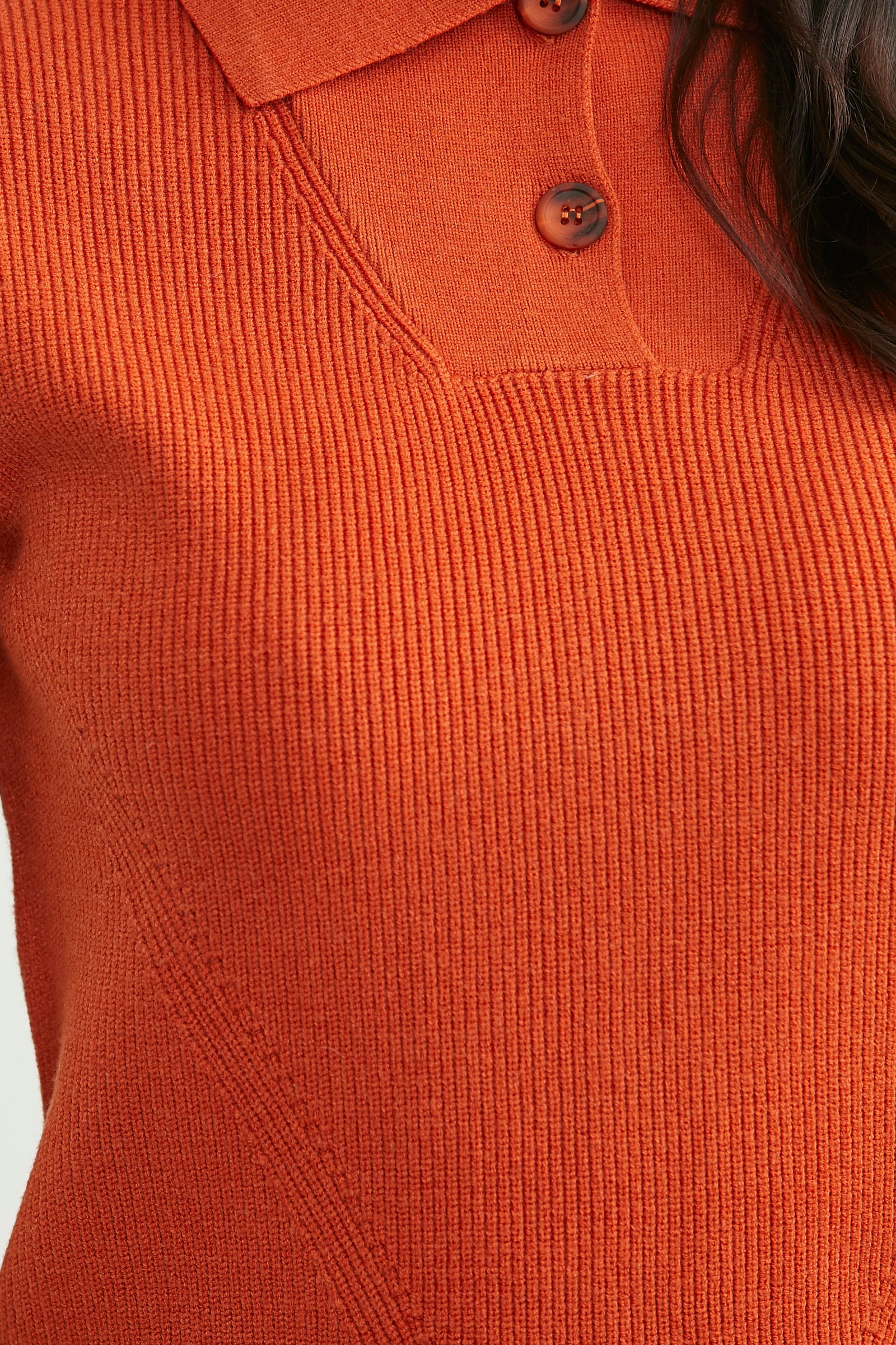 Şal Yaka Yarım Düğmeli Triko Süveter - Oranj
