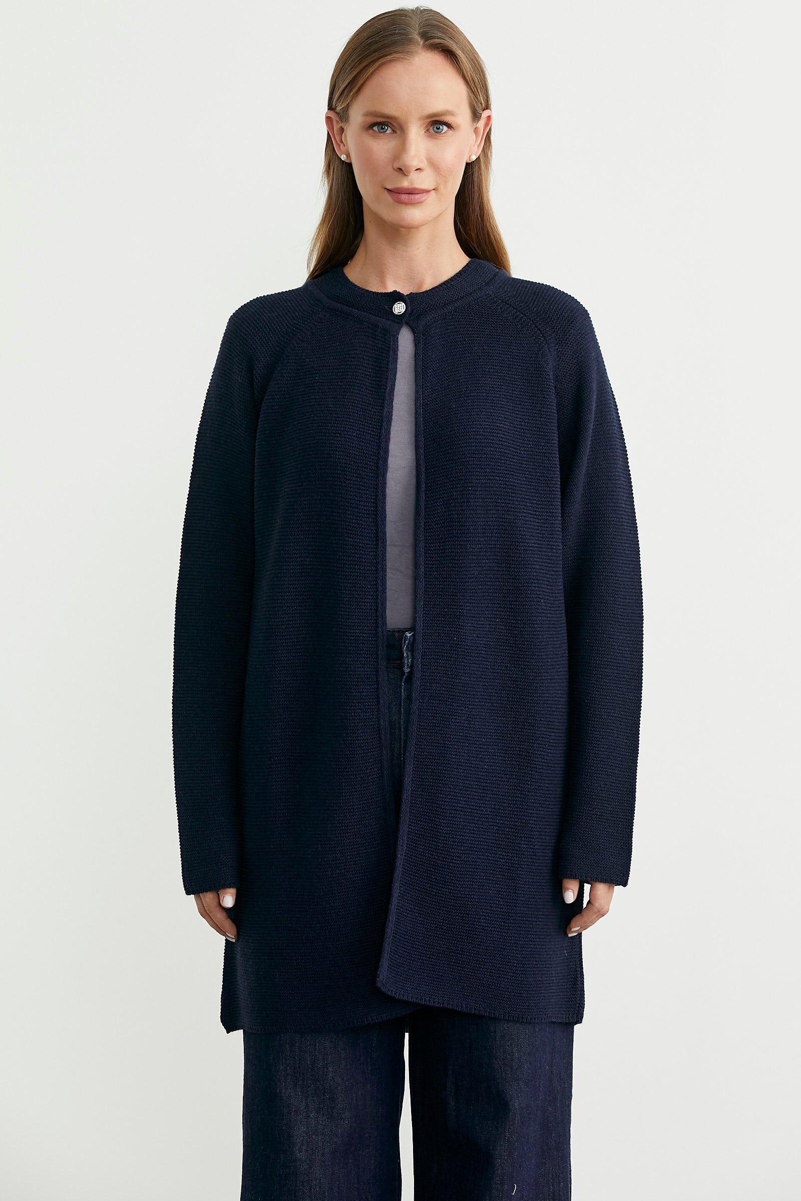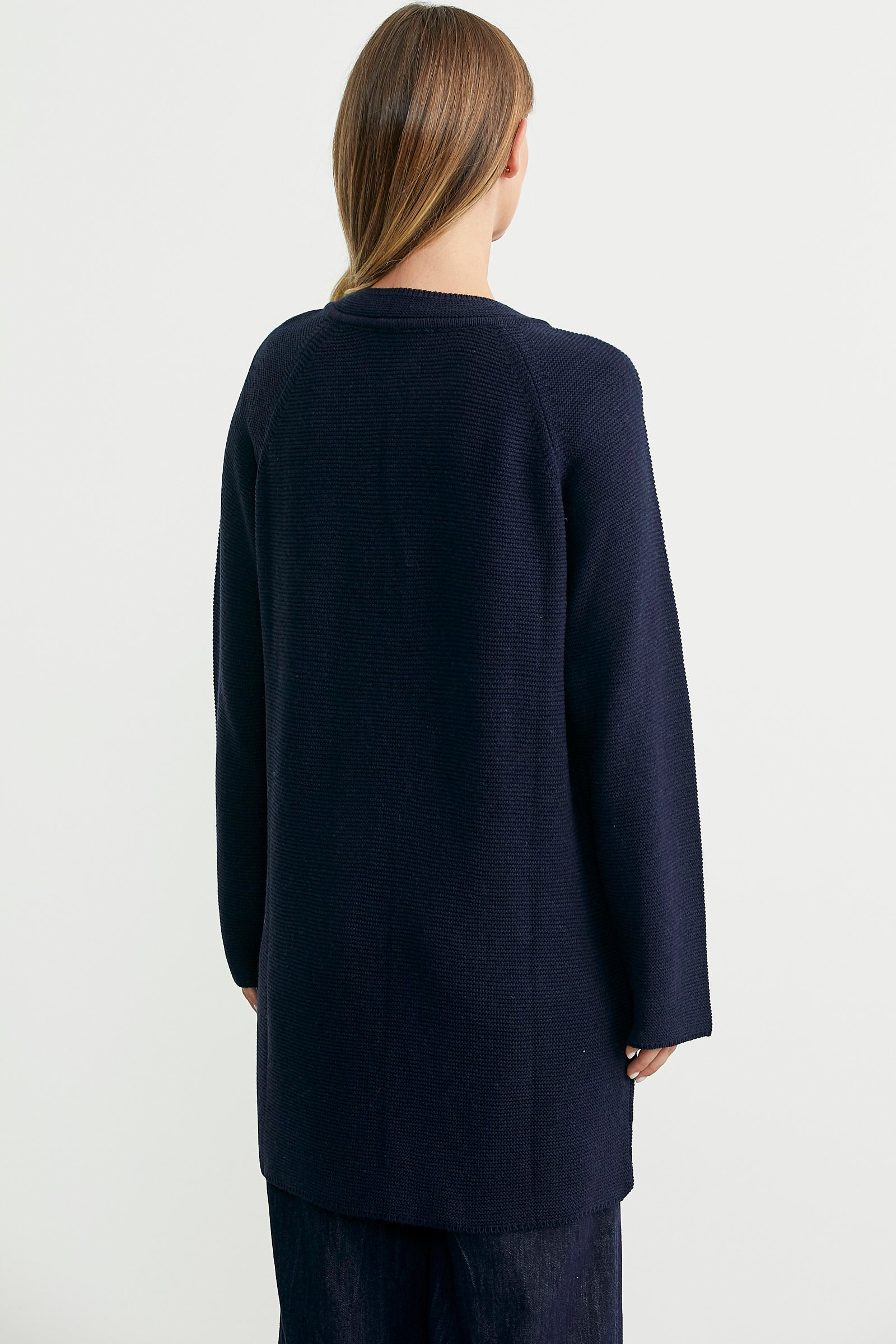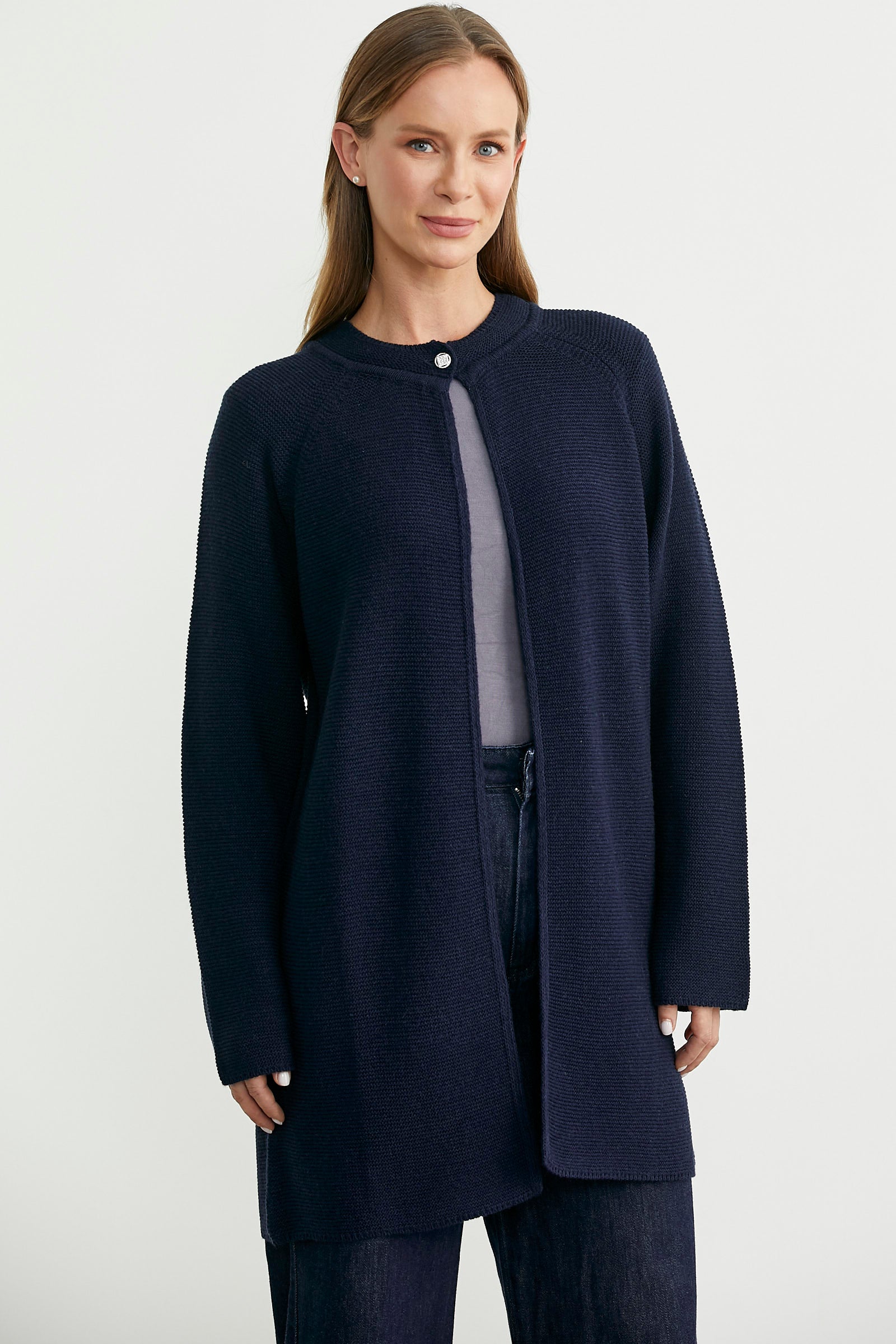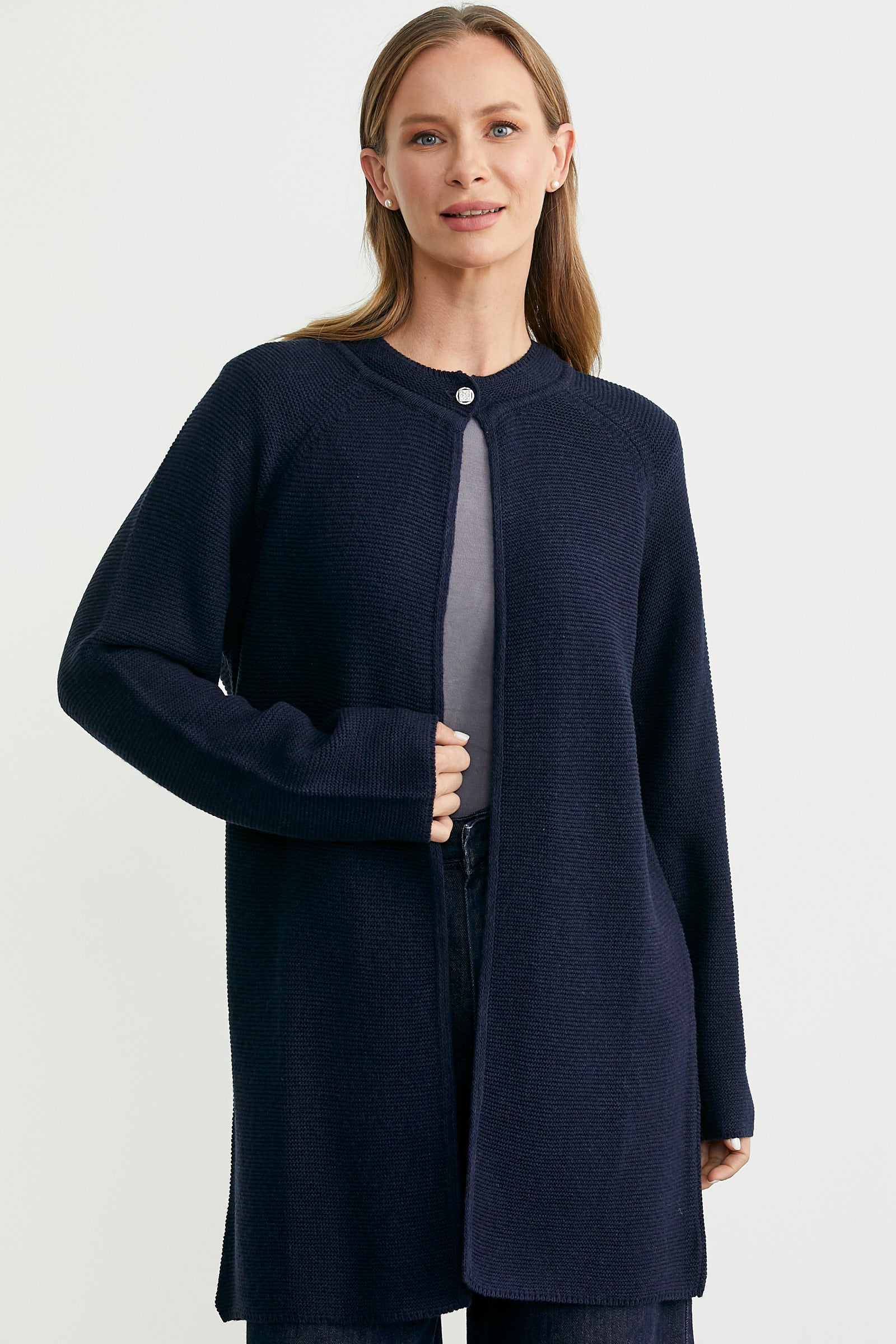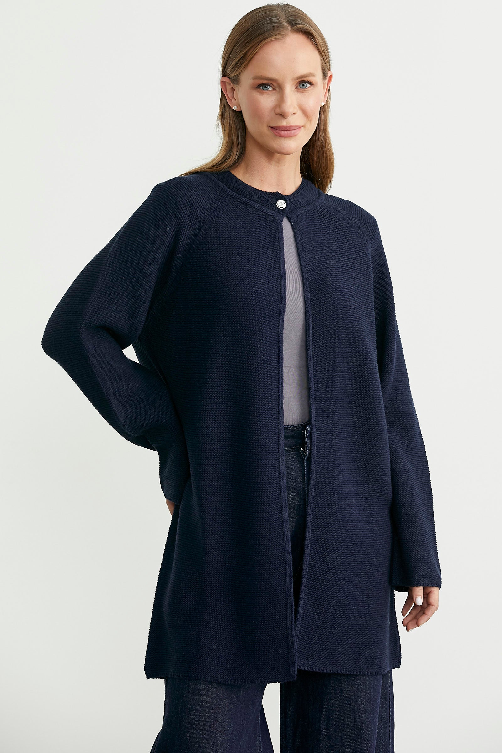 Sıfır Yaka Yünlü Uzun Triko Hırka - Lacivert