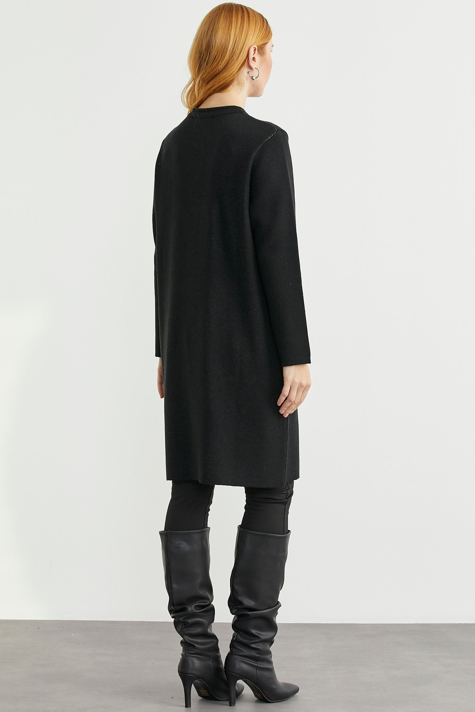 Uzun Cep Detaylı Yünlü Triko Hırka - Siyah
