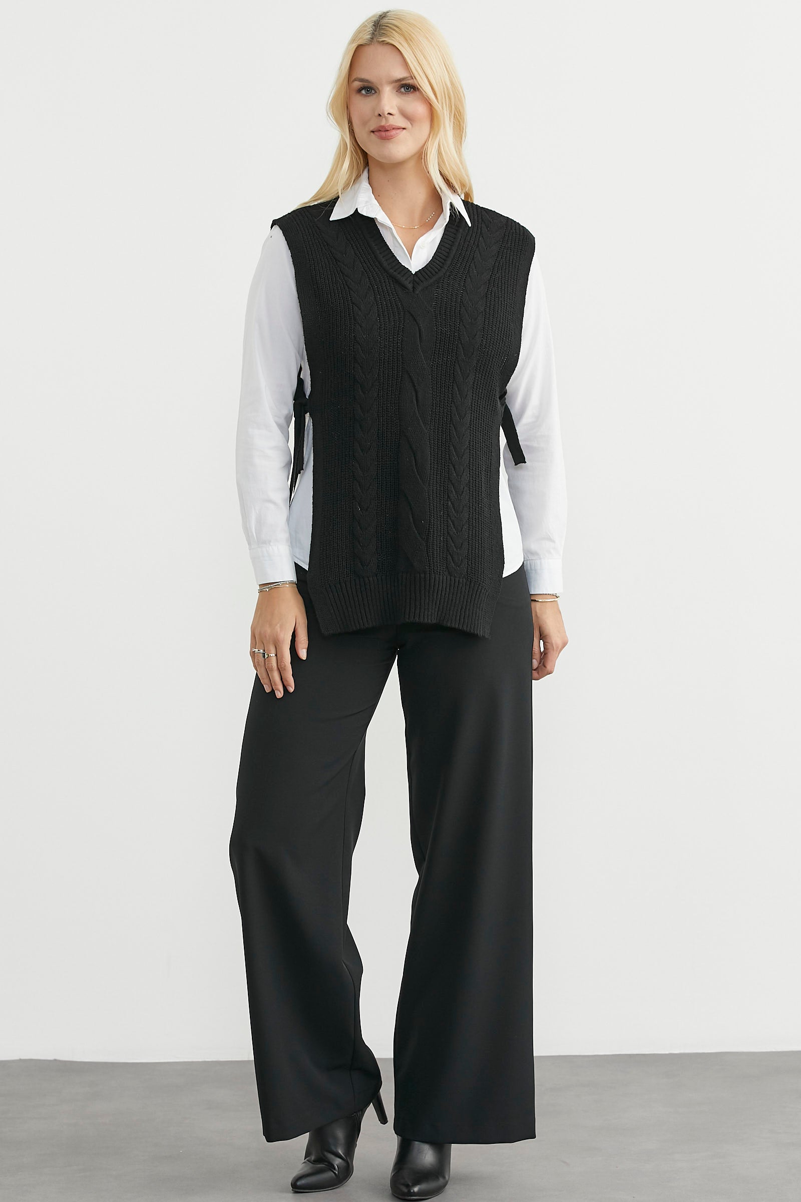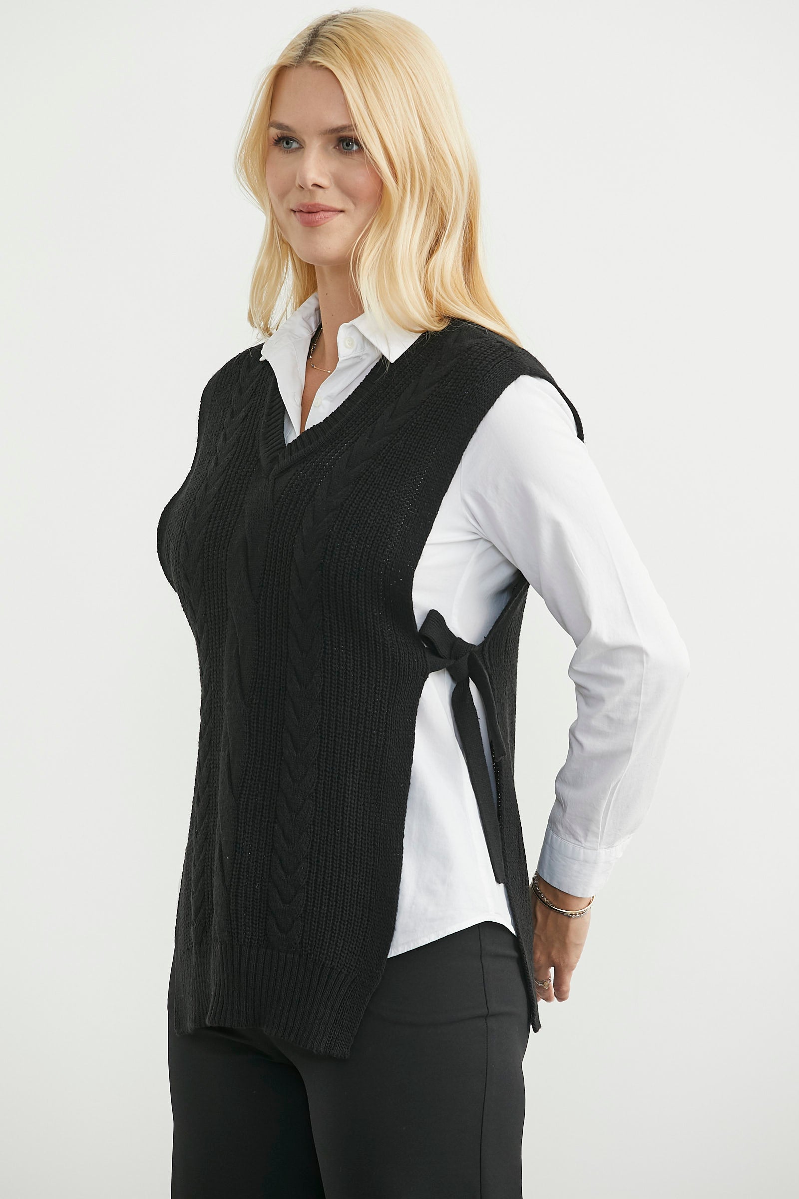 Yanları Bağlama Detaylı Yünlü Triko Süveter - Siyah