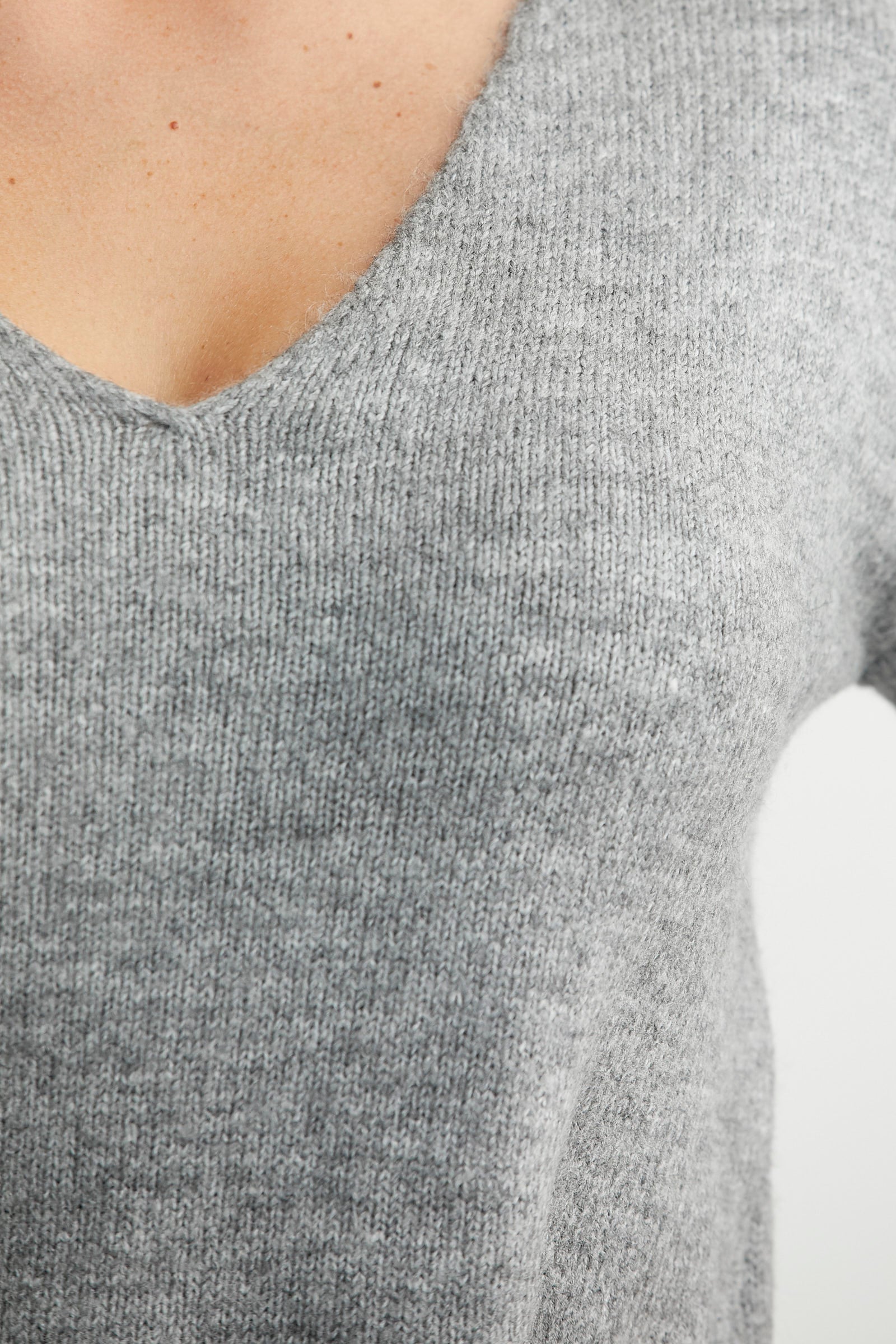 Yumuşak Dokulu V Yaka Triko Kazak - Füme