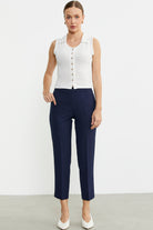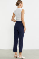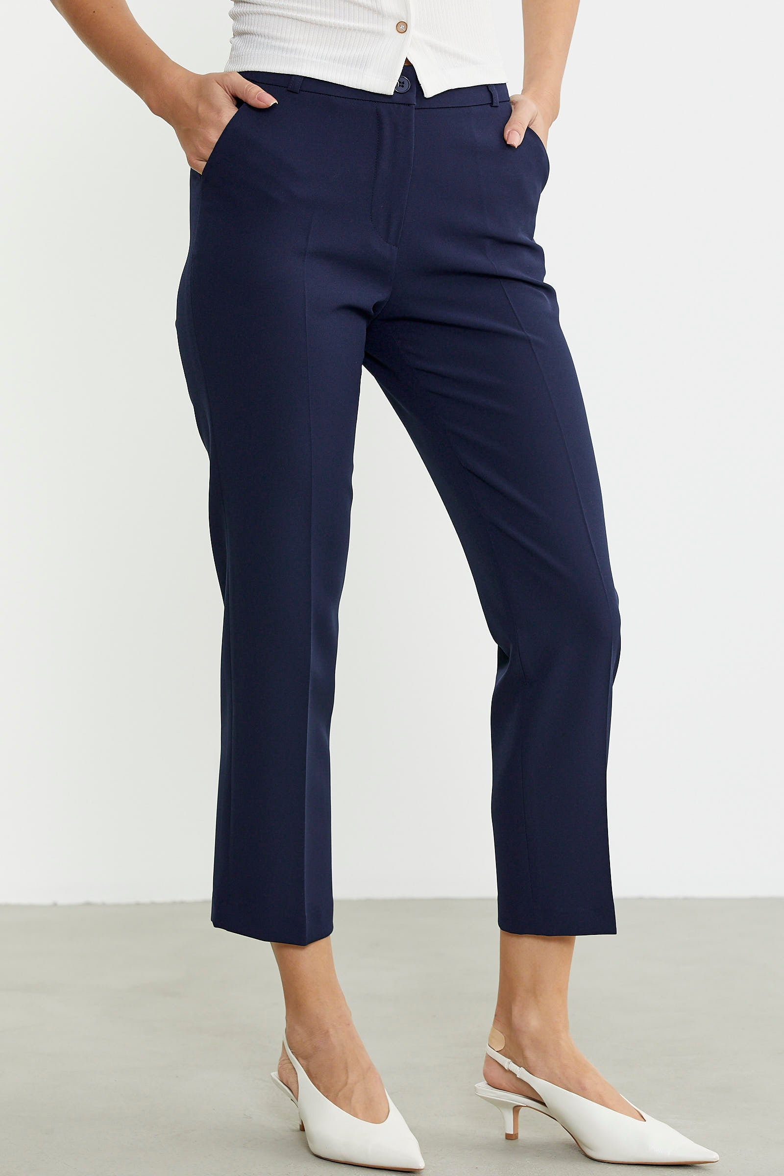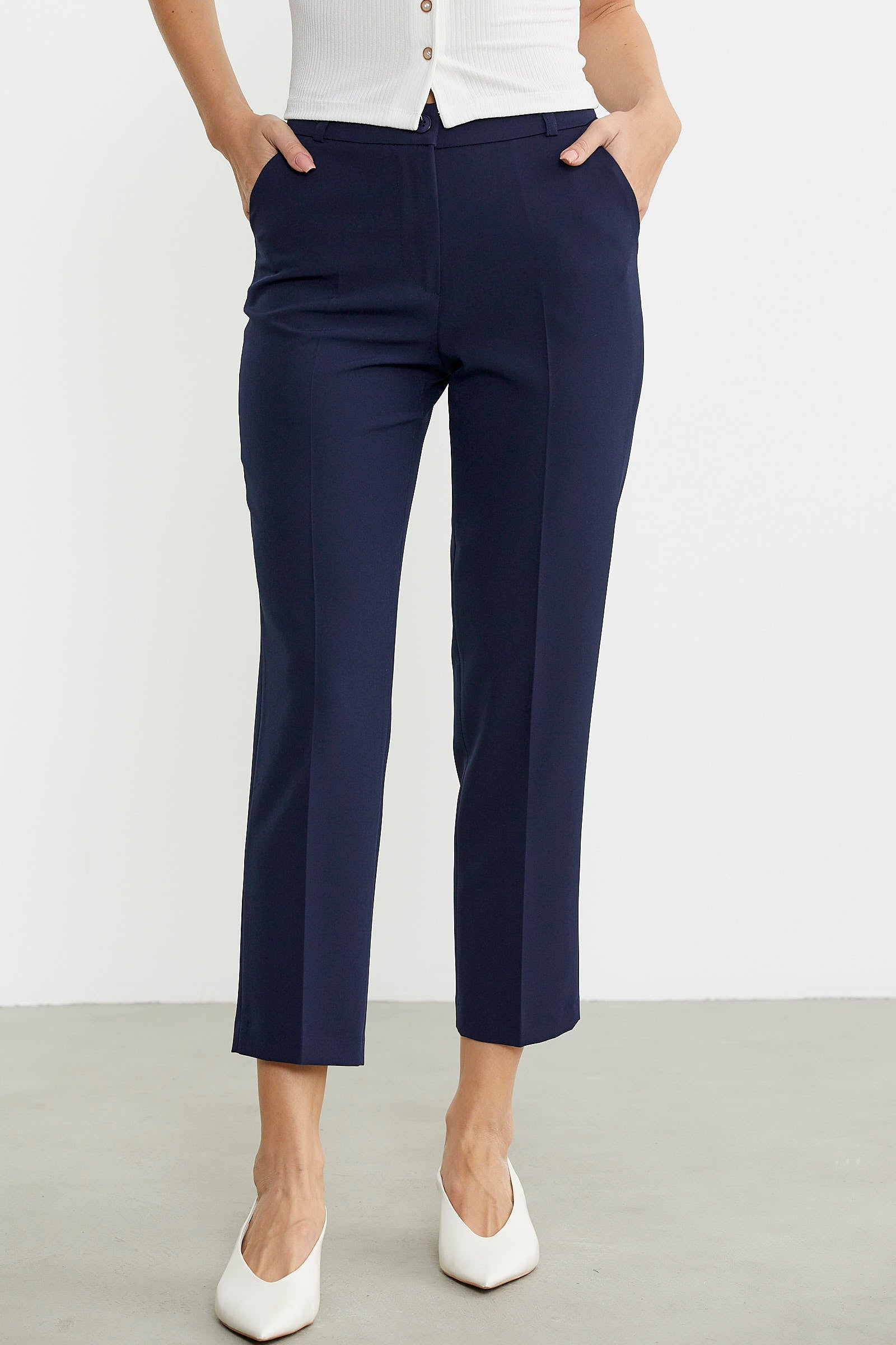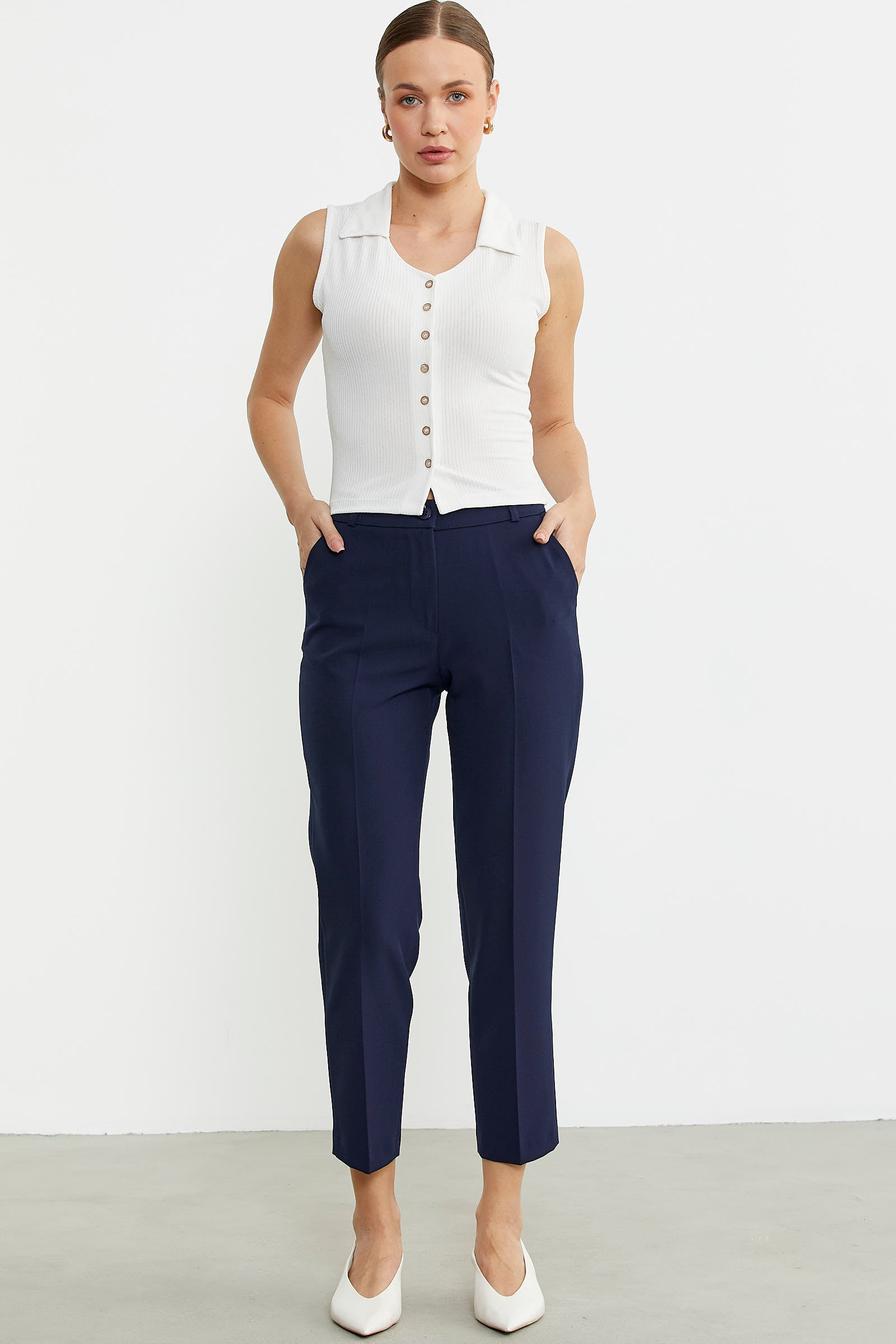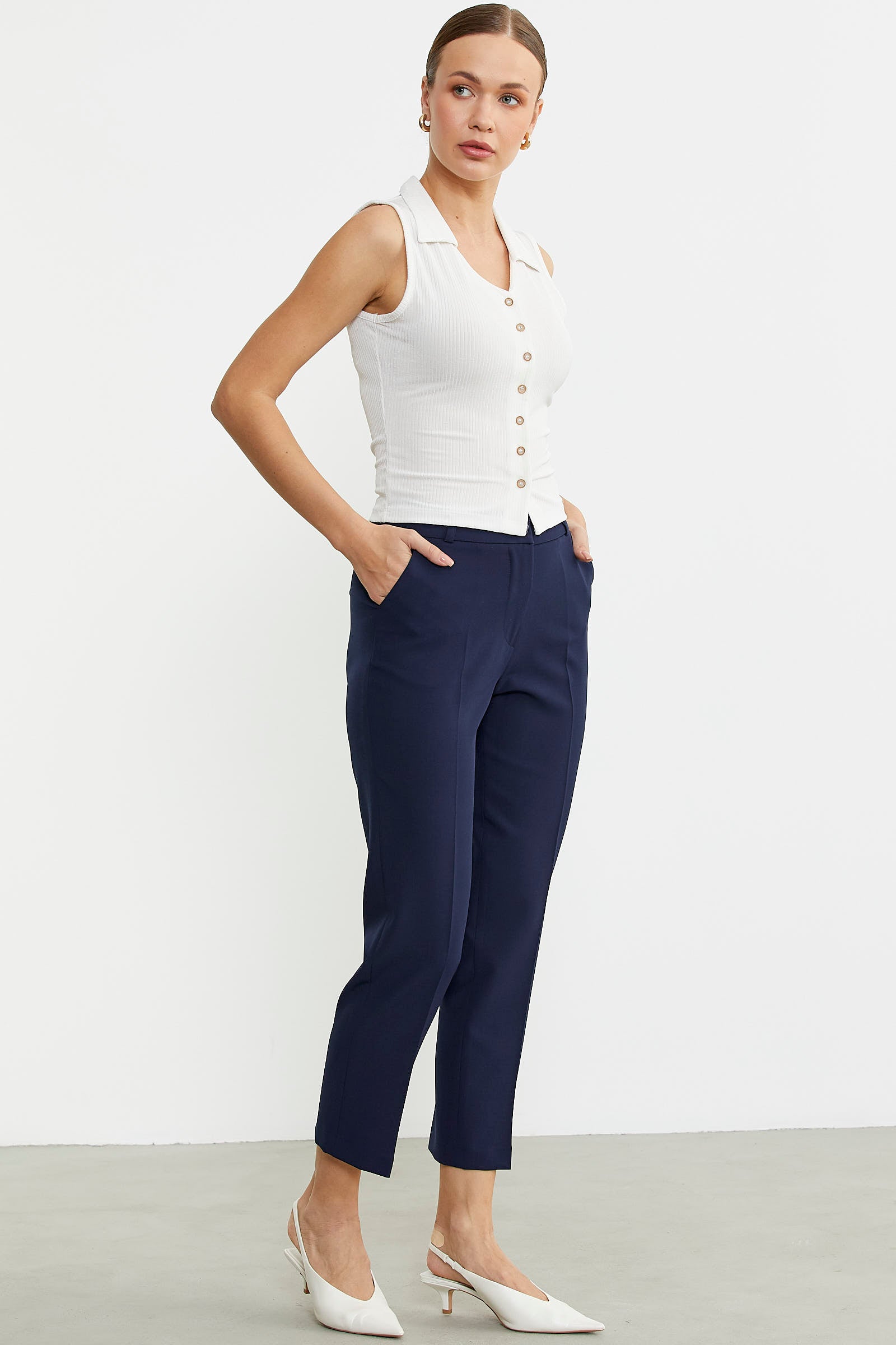 Bilek Boy Cepli Kumaş Pantolon - Lacivert