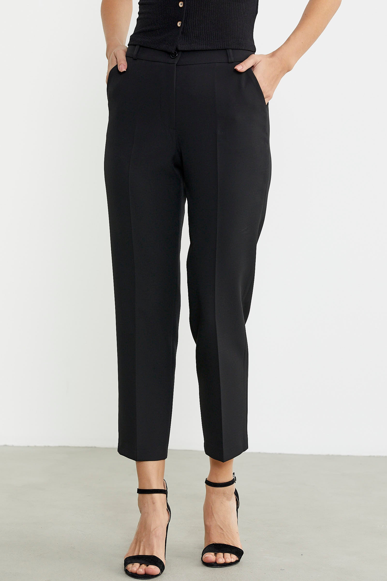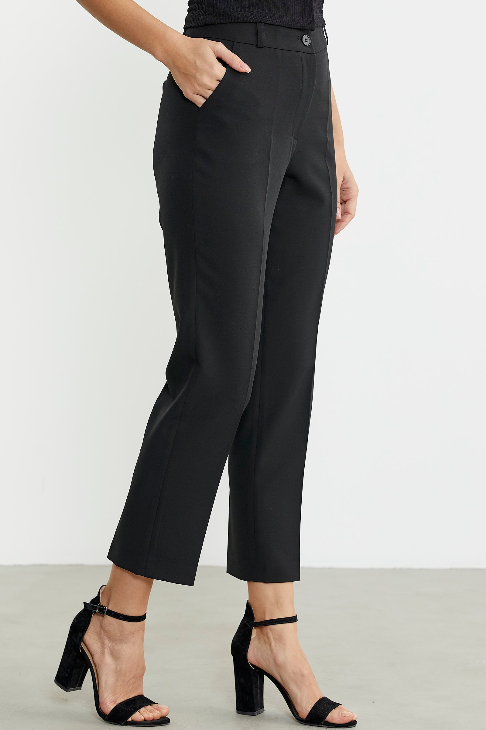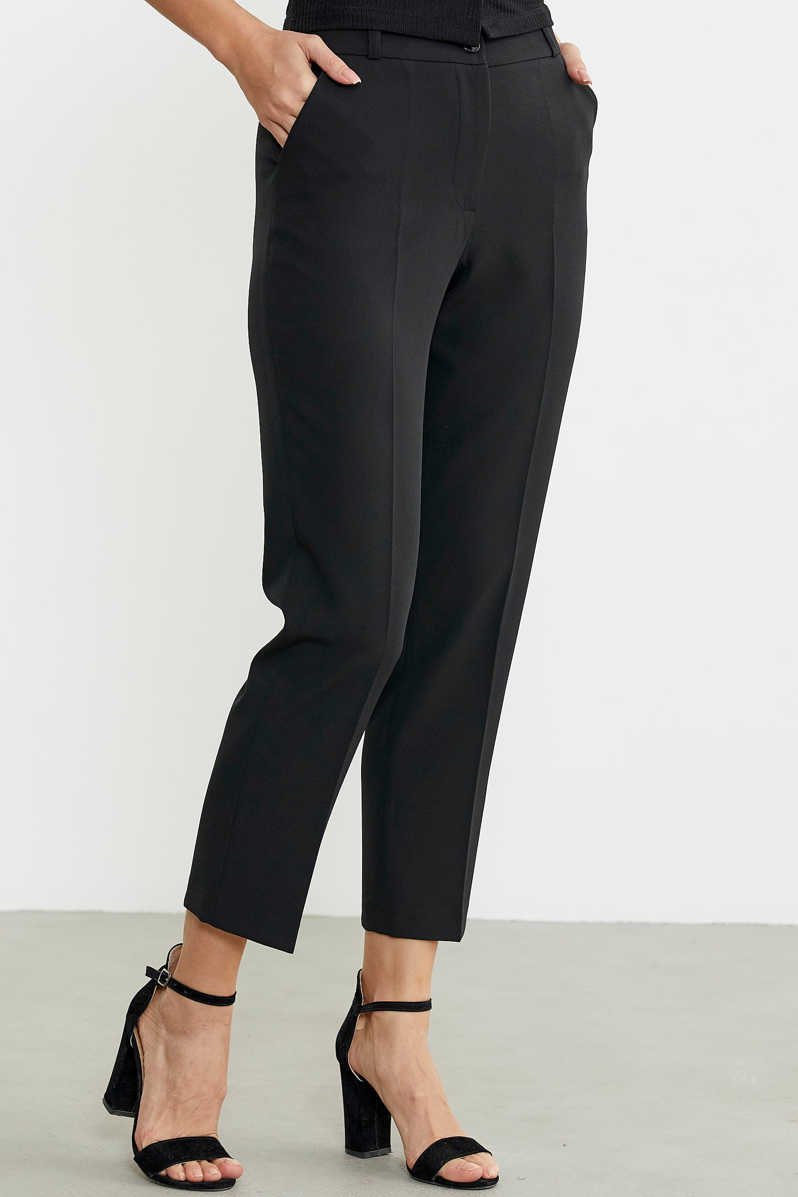 Bilek Boy Cepli Kumaş Pantolon - Siyah