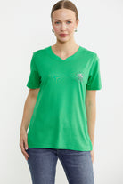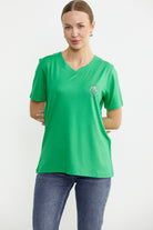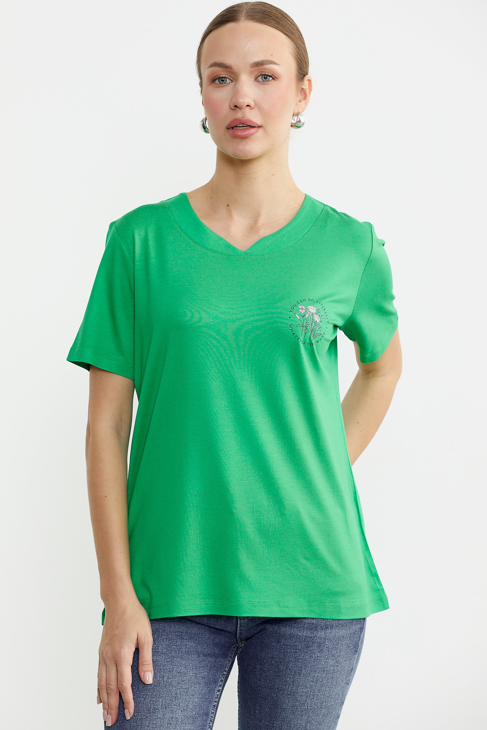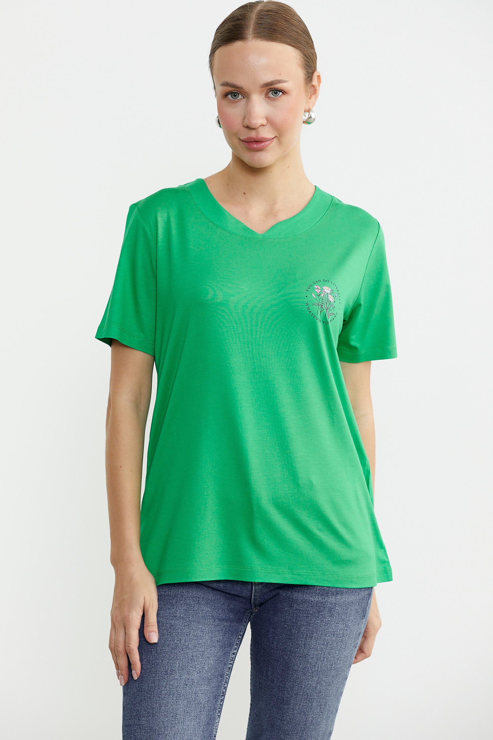 Bisiklet Yaka Baskılı Dökümlü Tişört - Yeşil