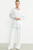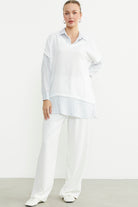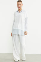 Bluz Kombinli Oversize Gömlek - Mavi