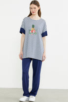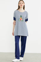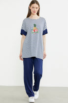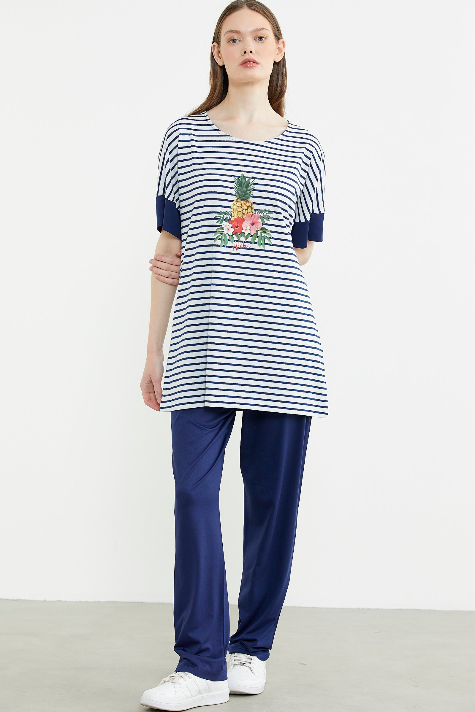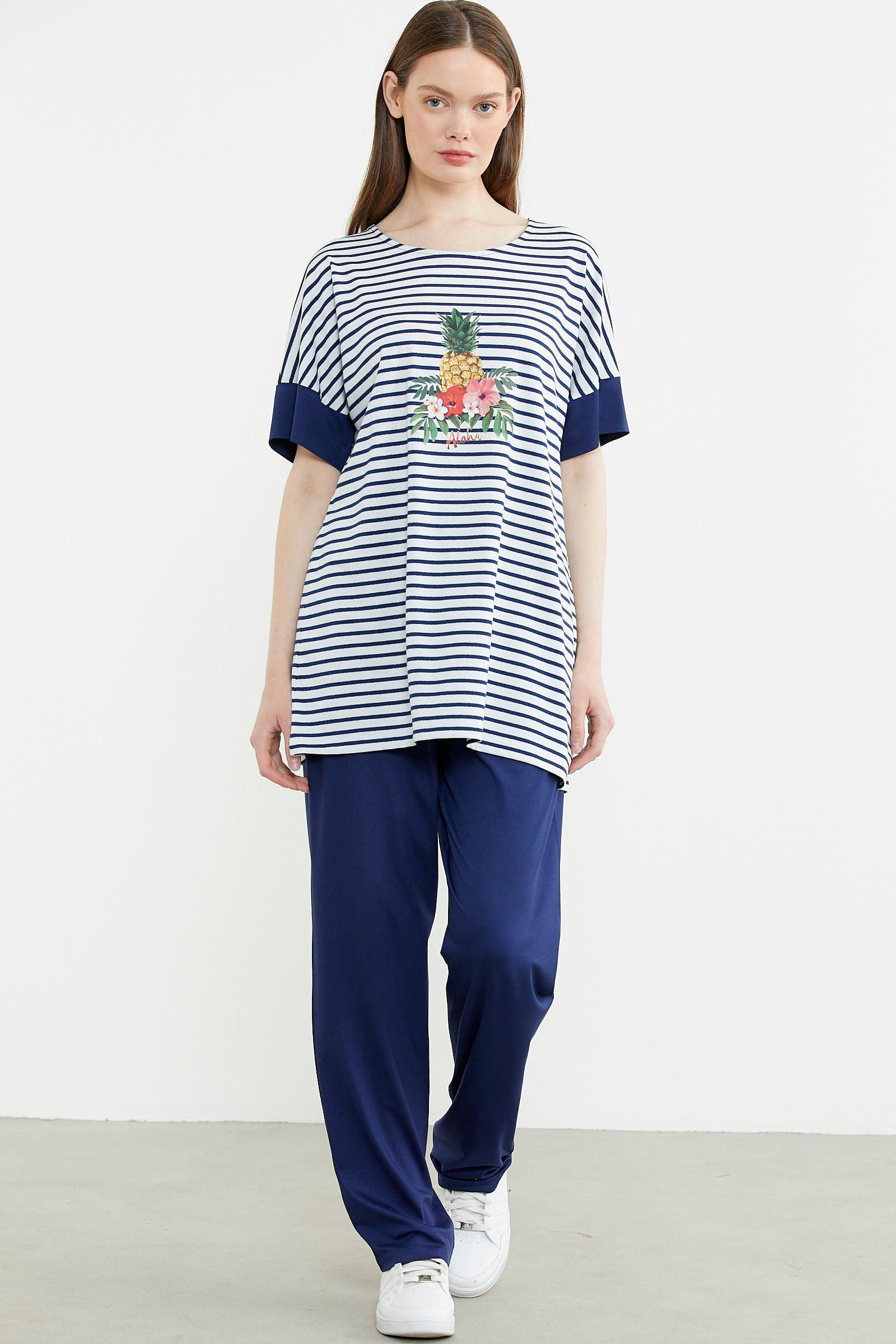 Büyük Beden Baskılı Penye Tunik Takım - Lacivert
