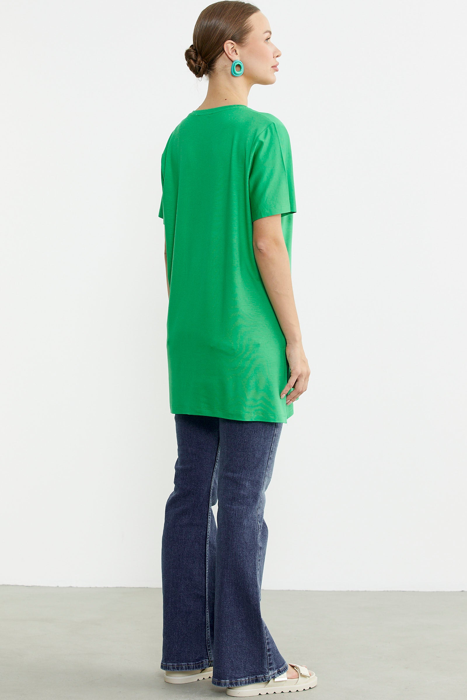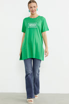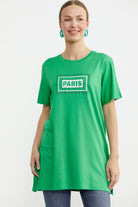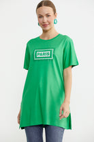 Büyük Beden Baskılı Uzun Tunik Tişört - Yeşil
