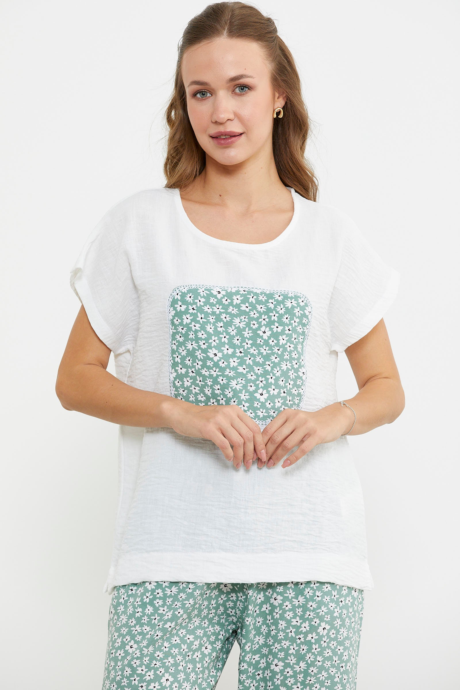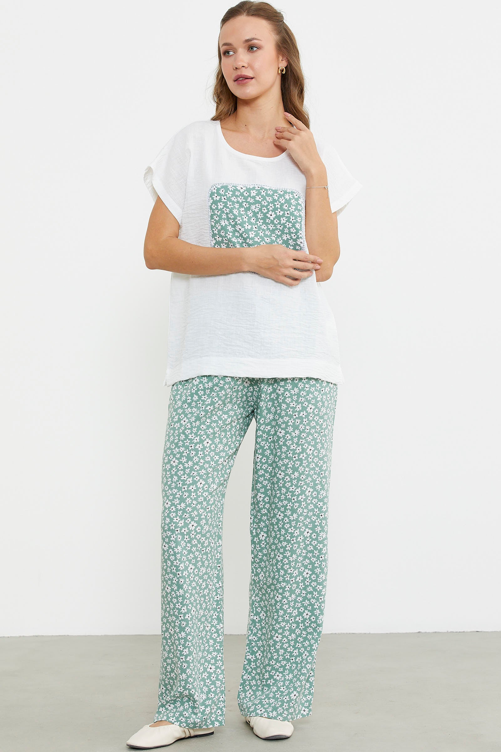 Çiçek Desen Kombinli İkili Takım - Yeşil