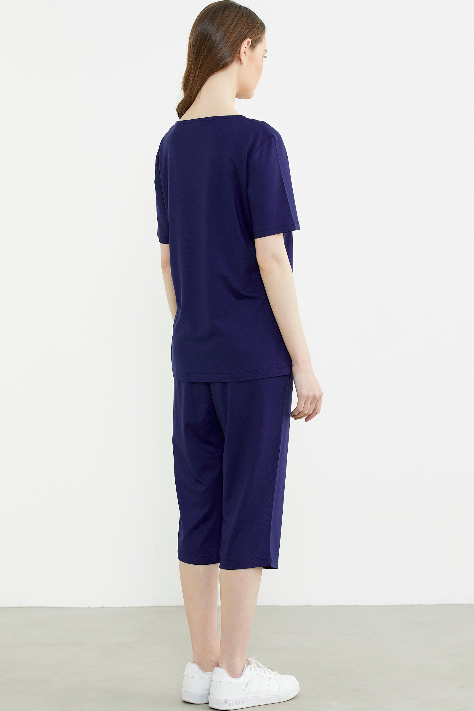 Çizgi Detaylı Kapri Penye Takım - Lacivert