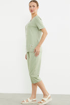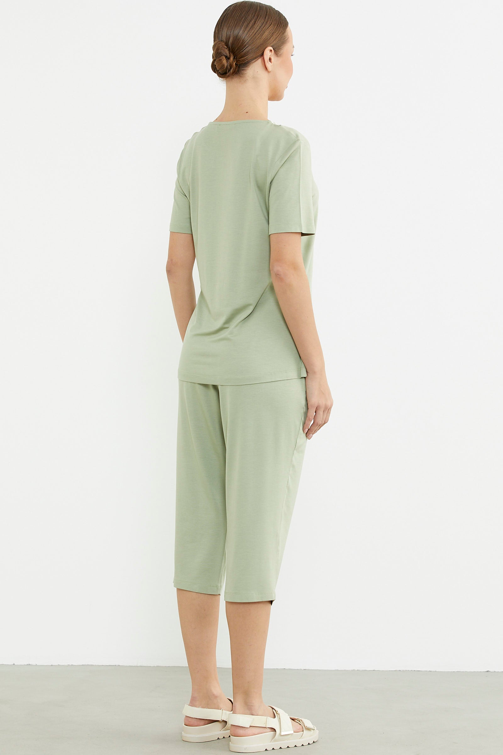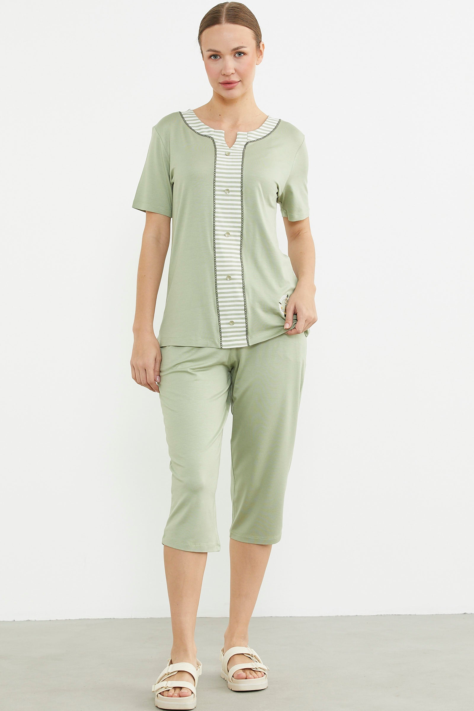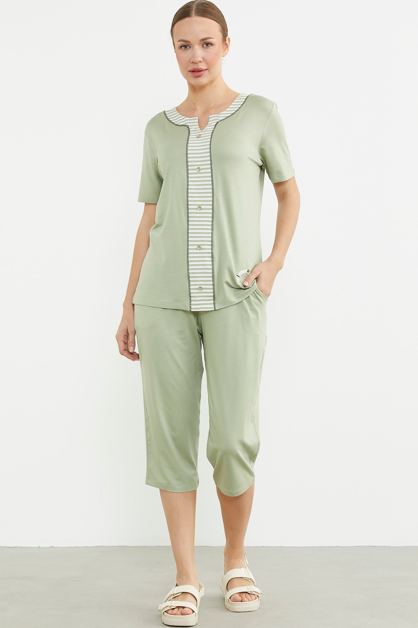 Çizgi Detaylı Kapri Penye Takım - Yeşil