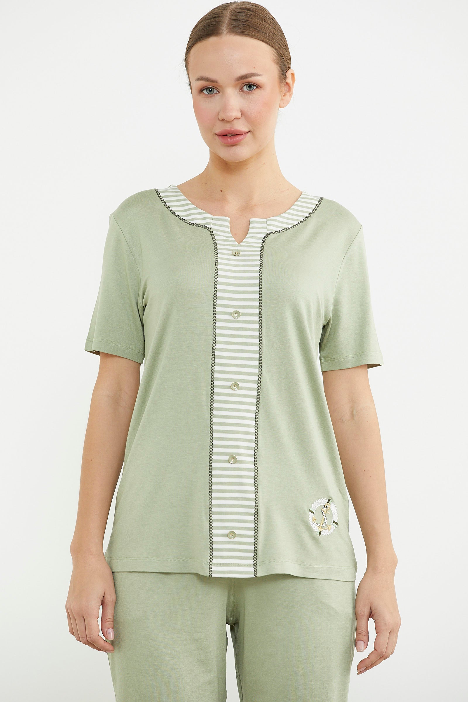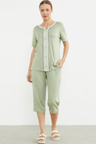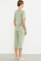 Marin detaylı rahat kalıp kapri takım geniş yaka ve kontrast dikiş detayıyla öne çıkıyor. Yumuşak dokusuyla günlük kullanım için idealdir.
