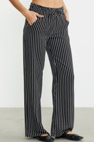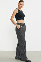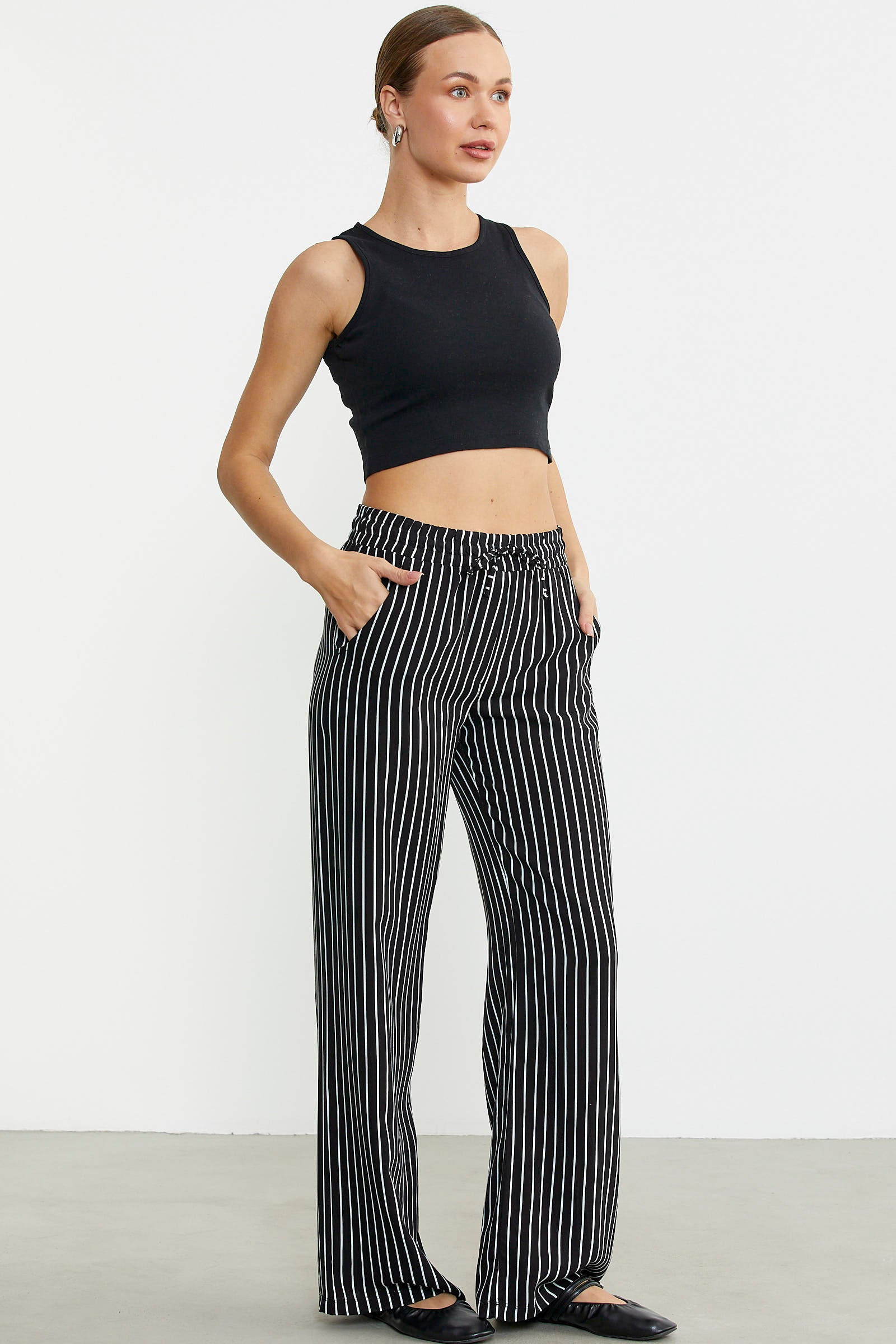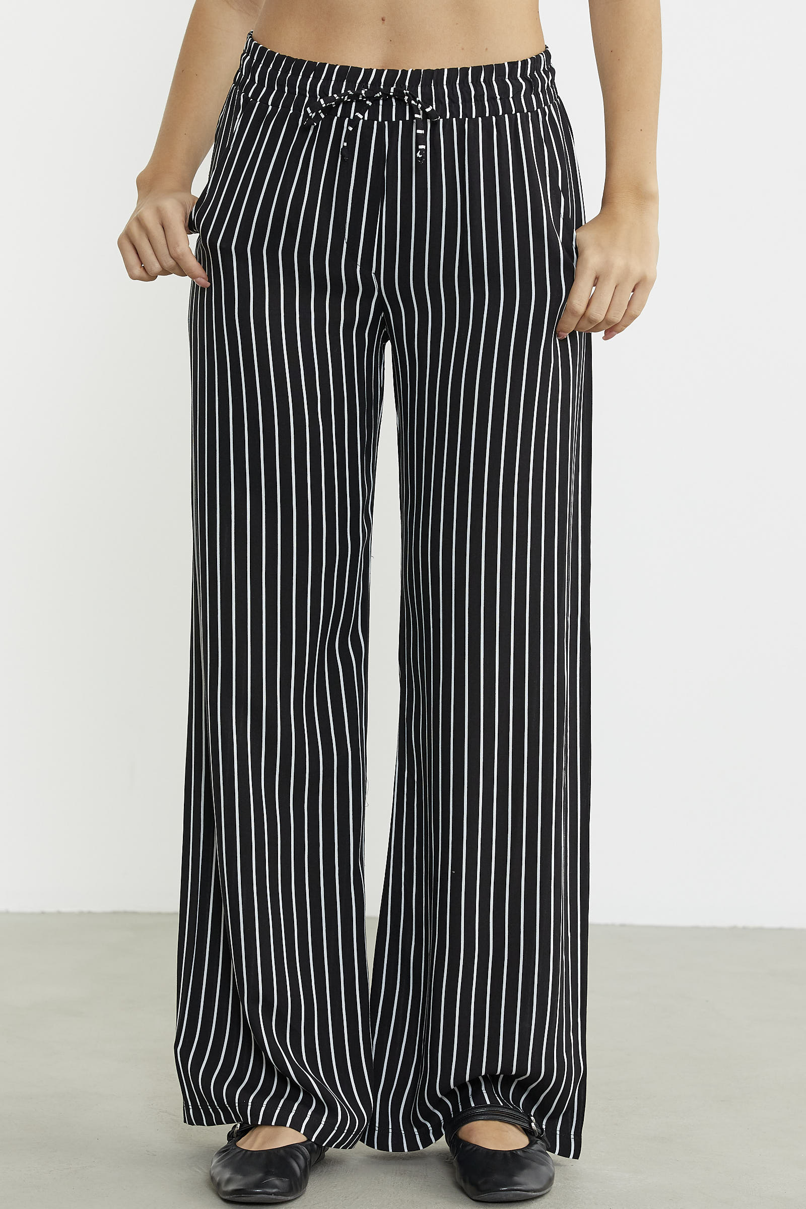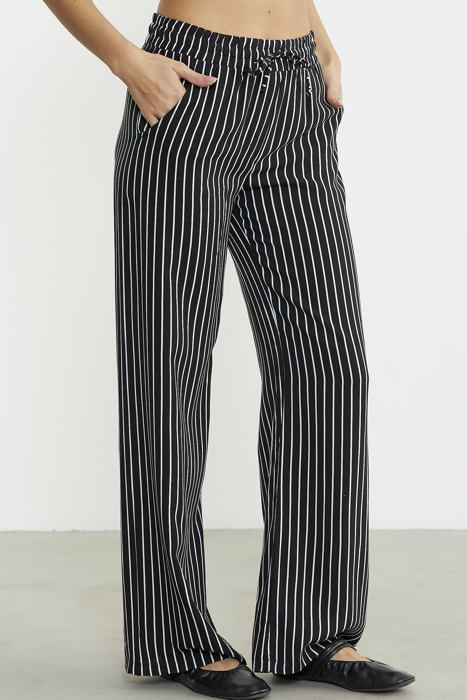 Çizgili Bol Kesim Viskon Pantolon - Siyah