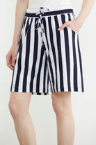 Çizgili Rahat Kalıp Pamuk Şort - Lacivert