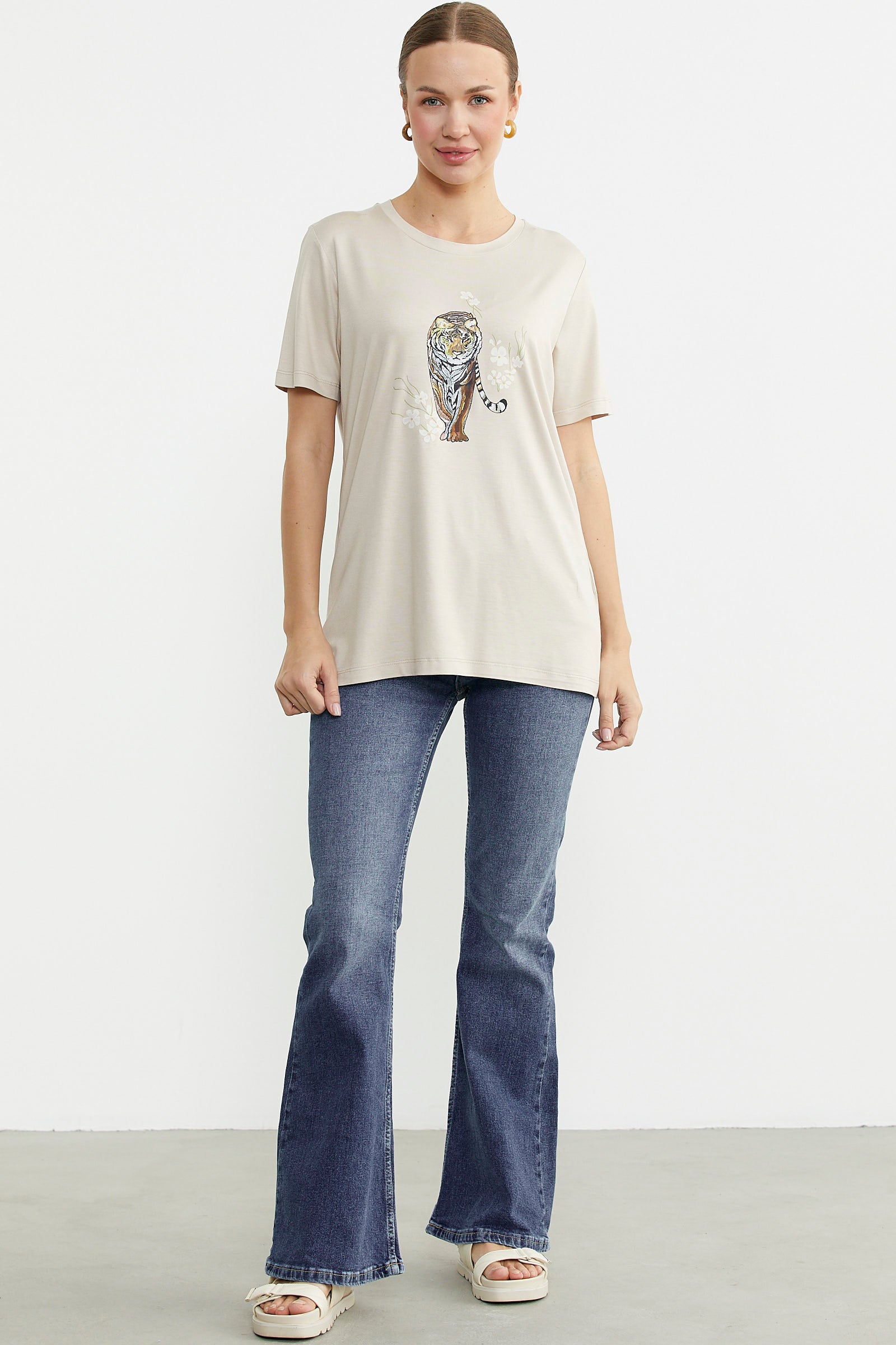 Regular fit formuyla dökümlü bir görünüm sunan tişört, baskısıyla karakteristik bir duruş yakalıyor. Yuvarlak yakalı ve kısa kol olarak üretilmiştir.