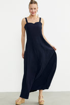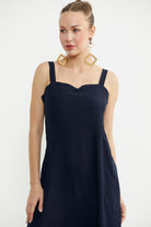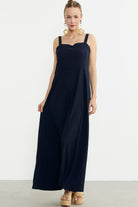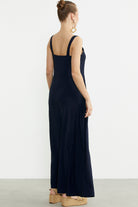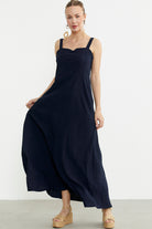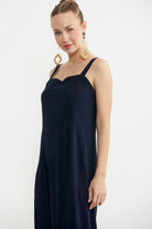 İnce Askılı Uzun Krep Elbise - Lacivert