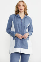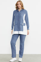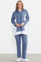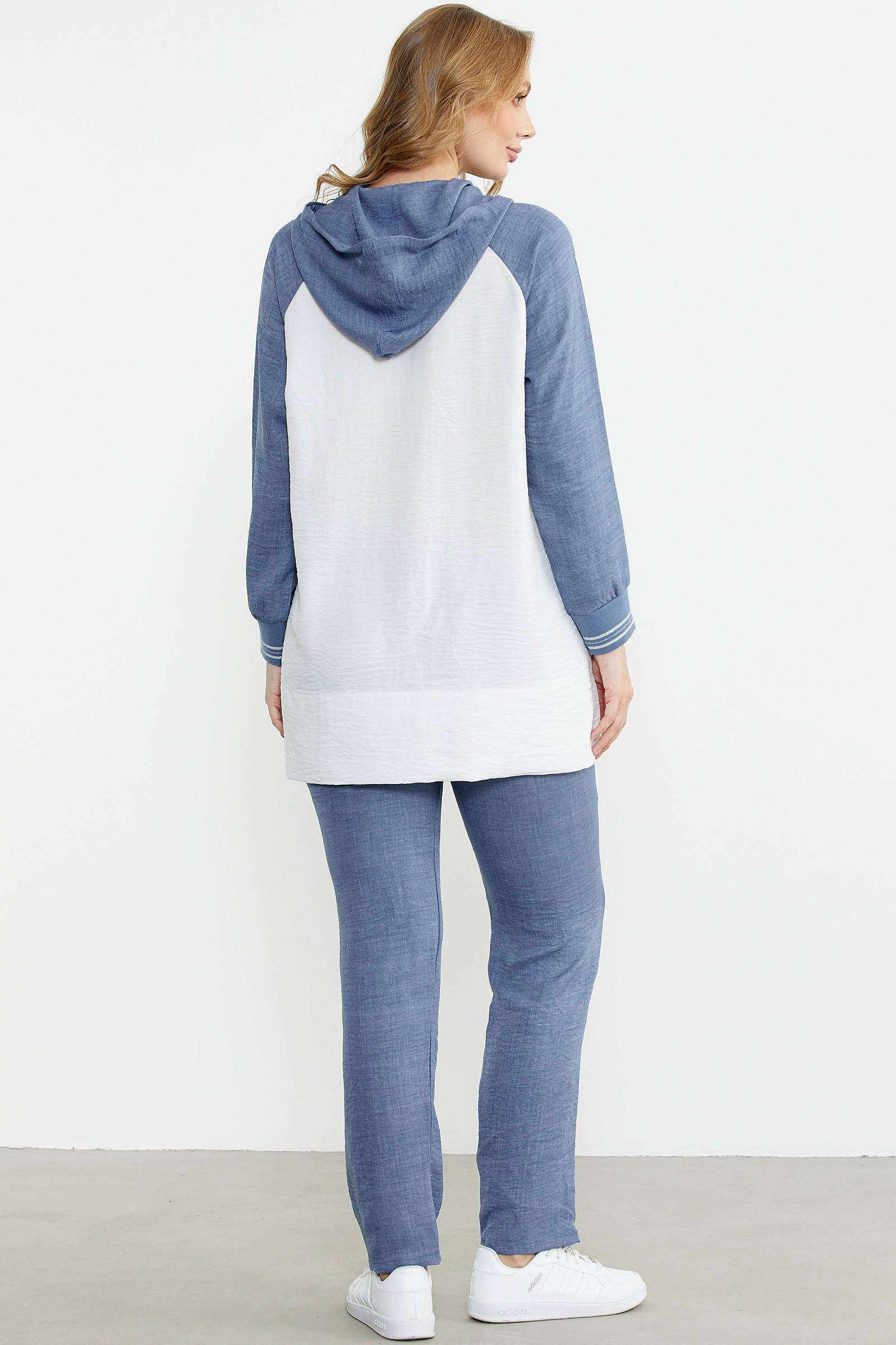 Keten Görünümlü Kapüşonlu Tunik Takım - Indigo
