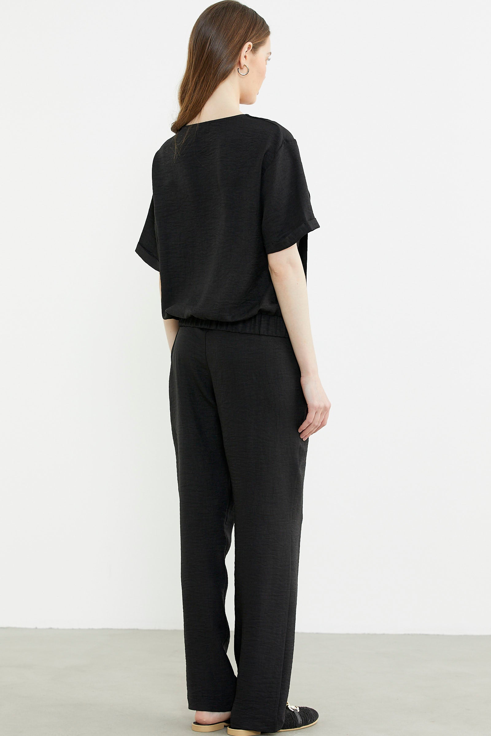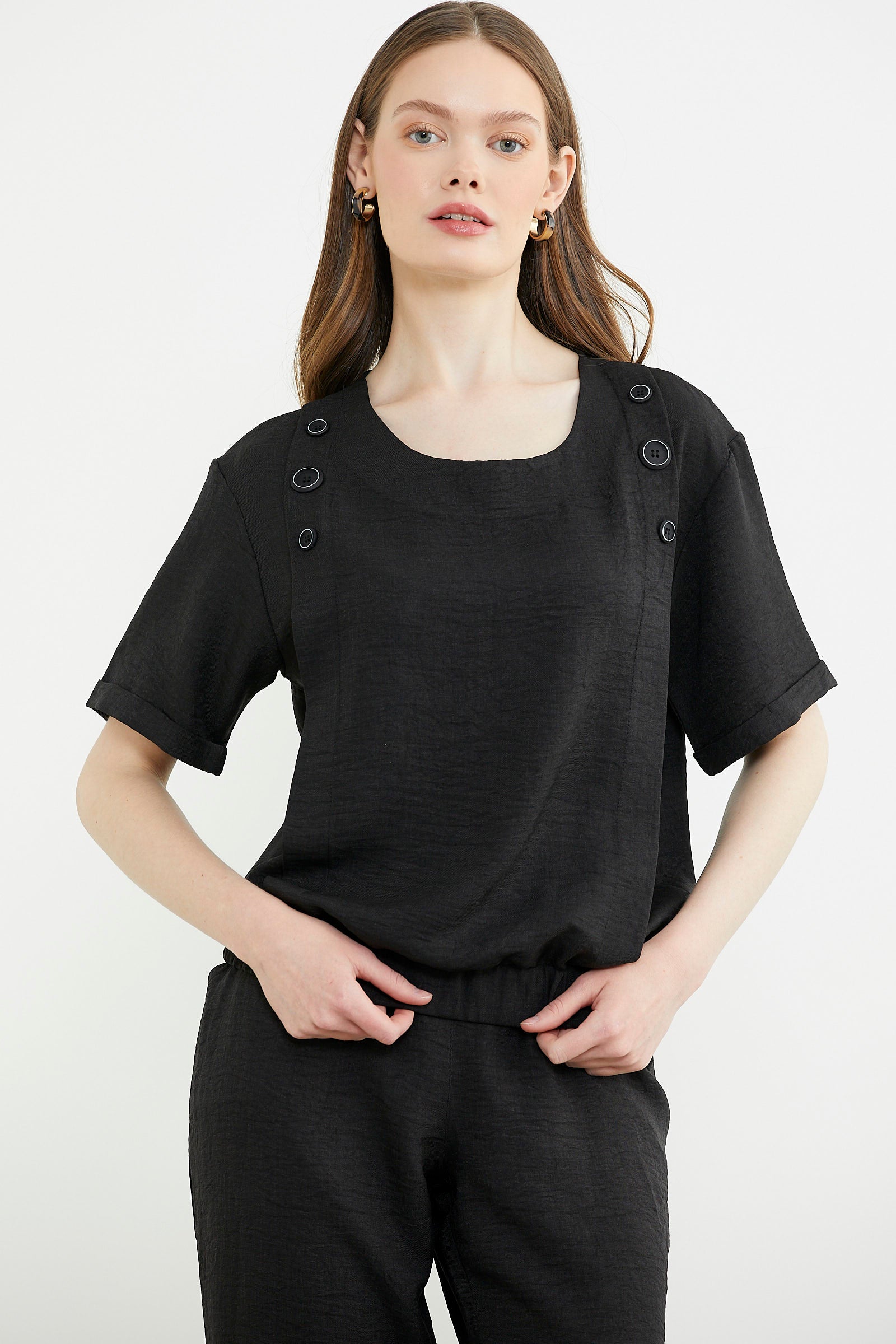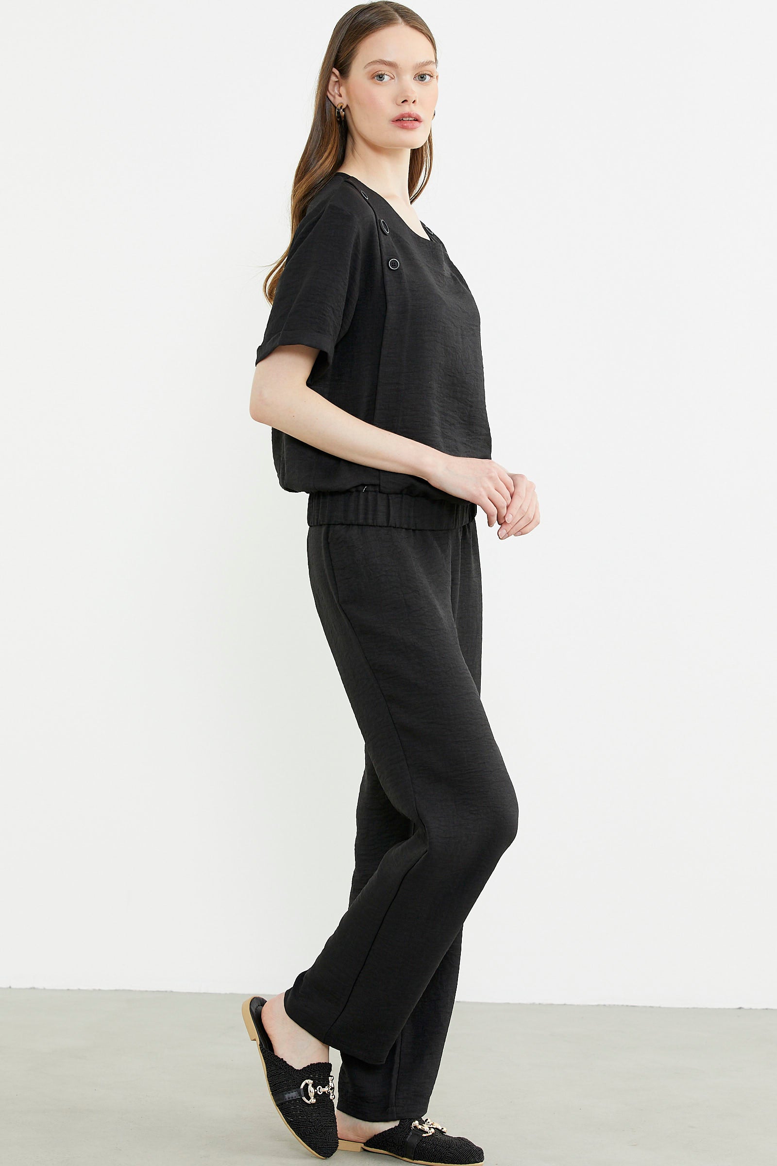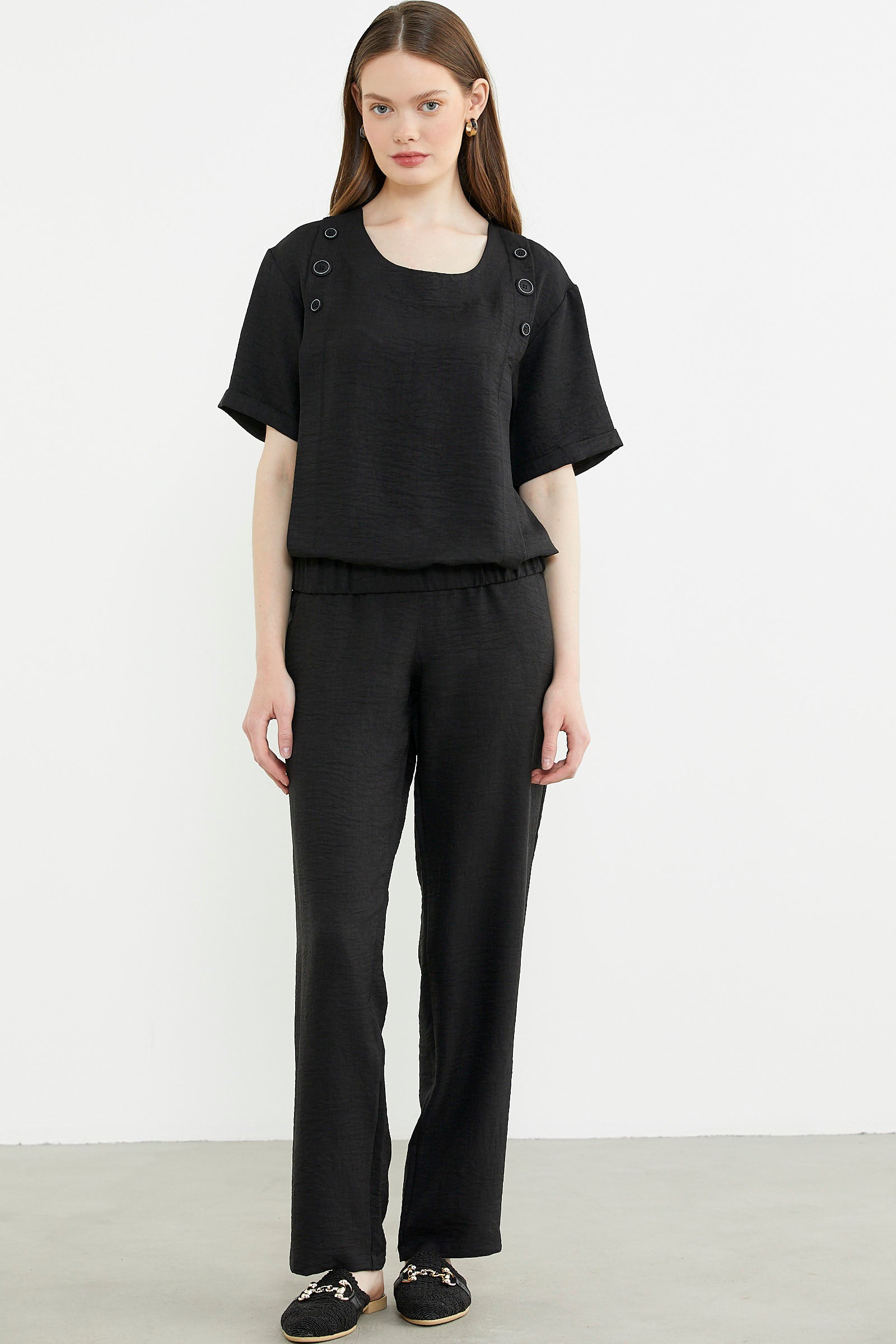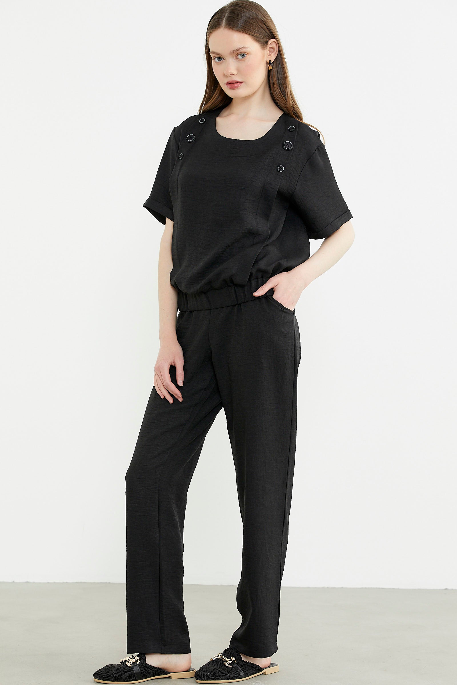 Keten Görünümlü Kısa Kol İkili Takım - Siyah