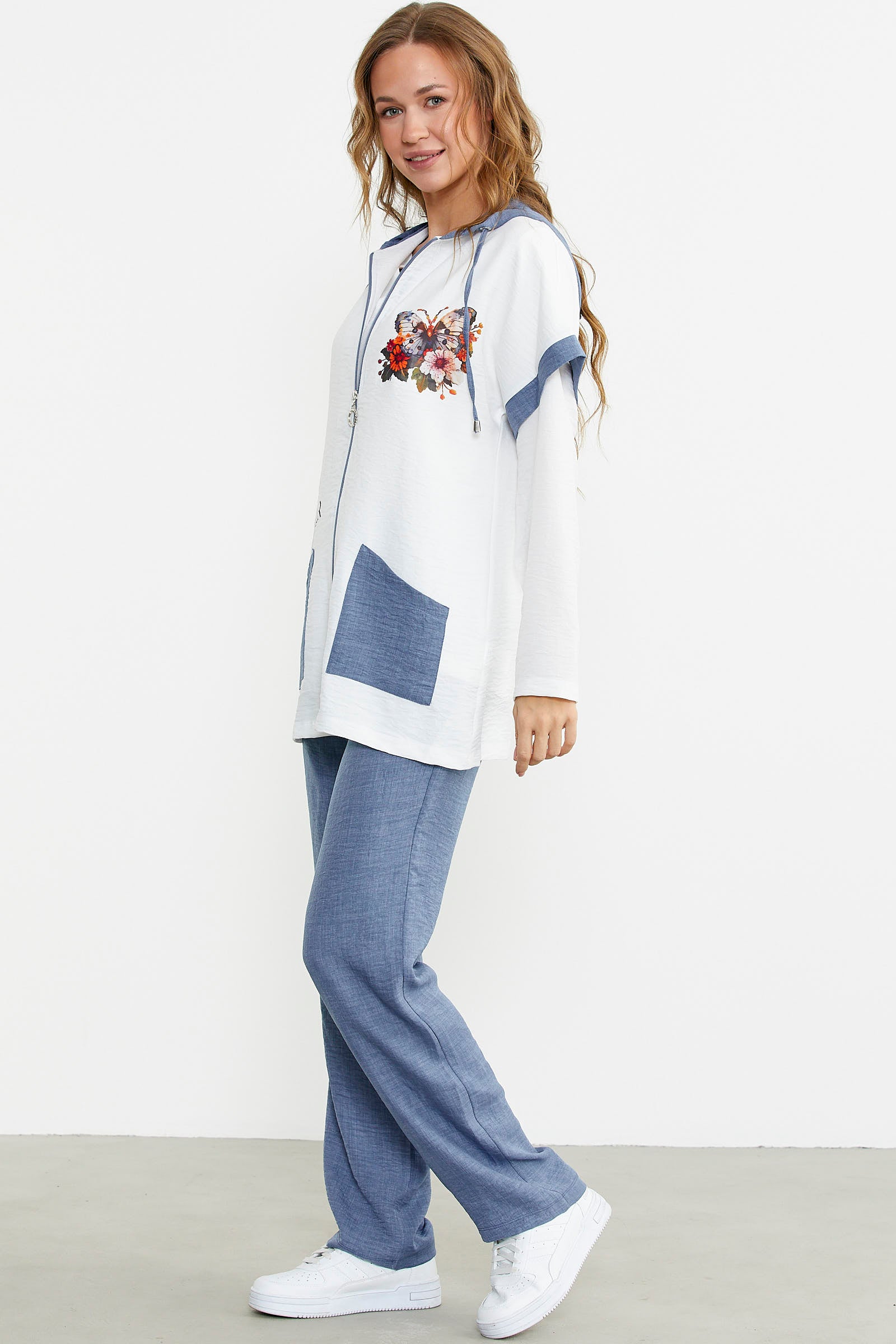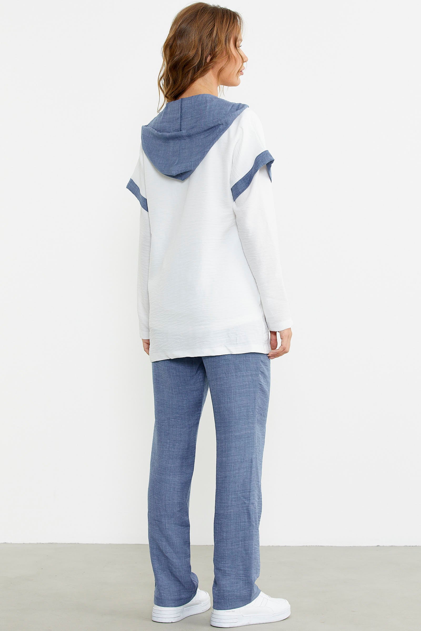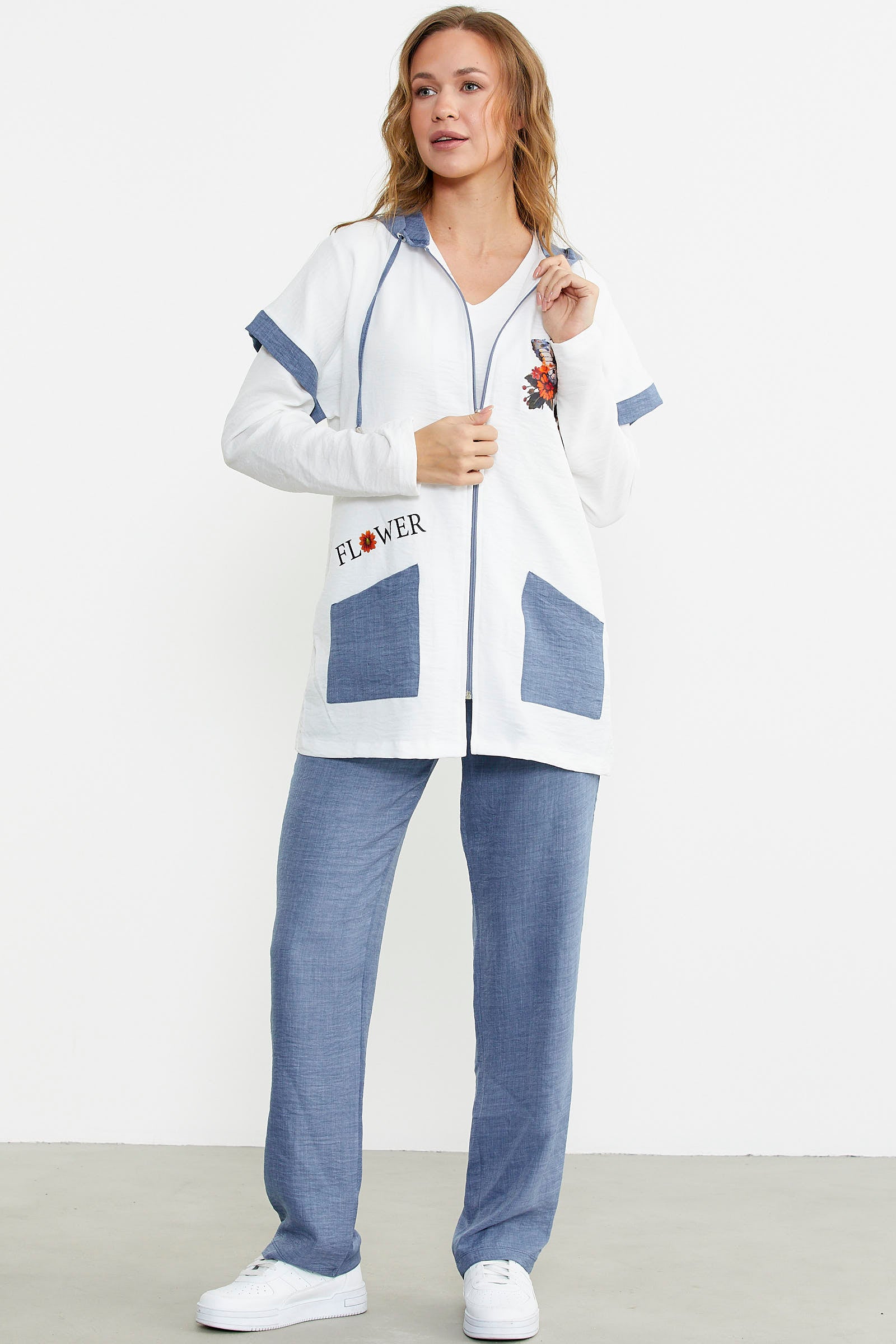 Keten Görünümlü Rahat Kalıp Üçlü Takım - Indigo