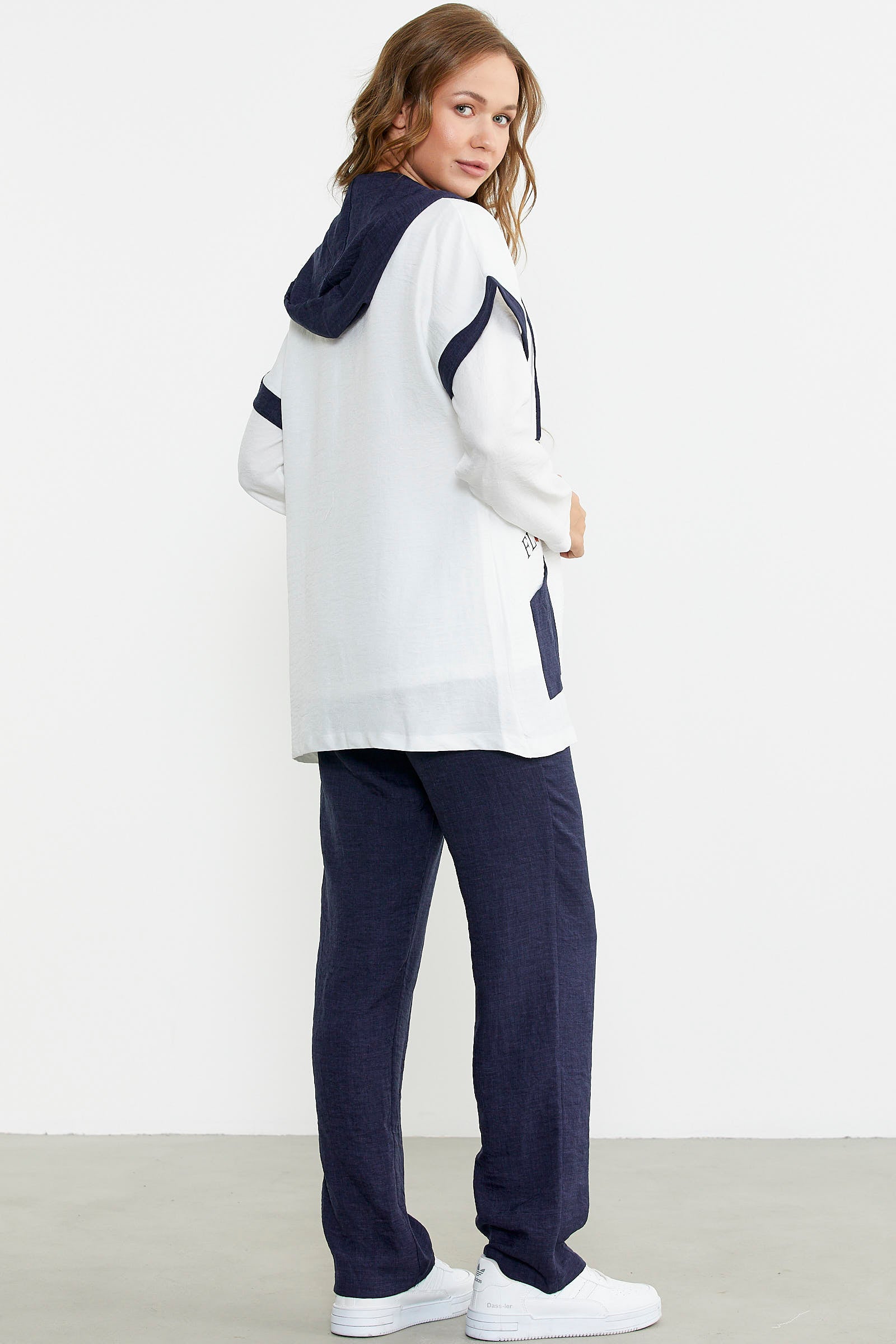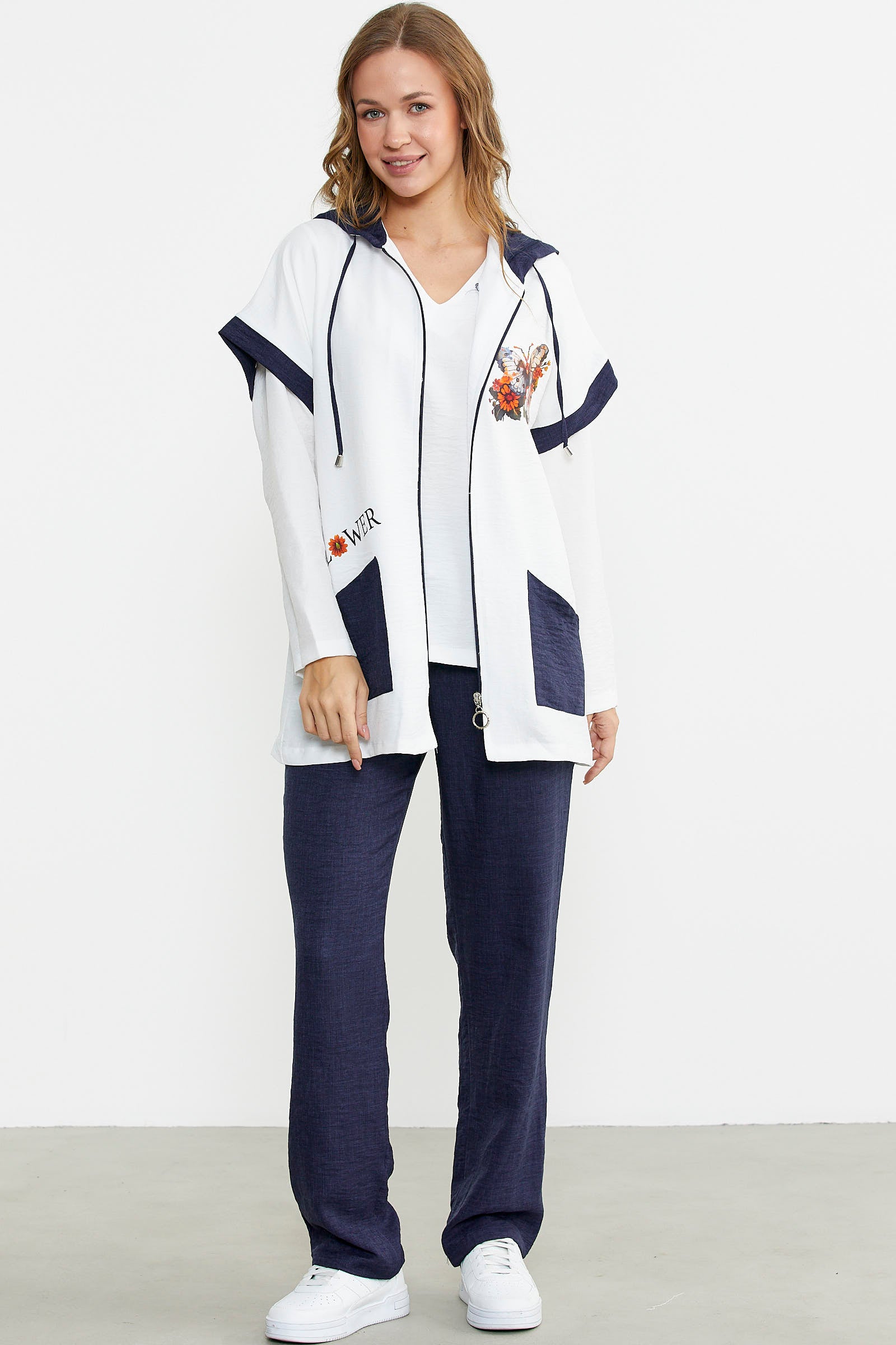 Keten Görünümlü Rahat Kalıp Üçlü Takım - Lacivert