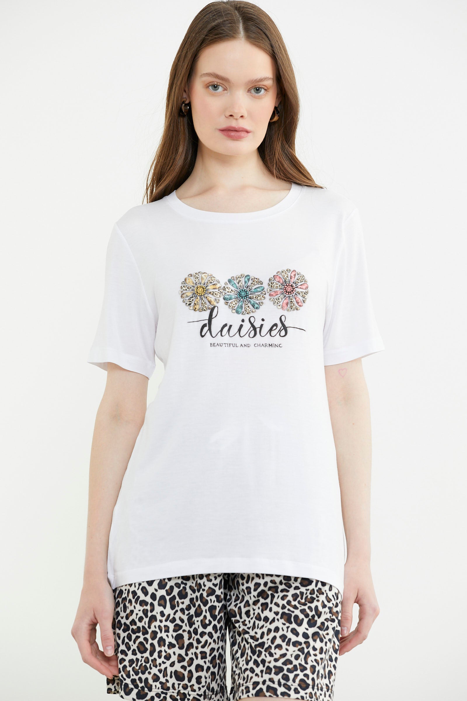 Leopar Kombinli Şortlu Takım - Ekru
