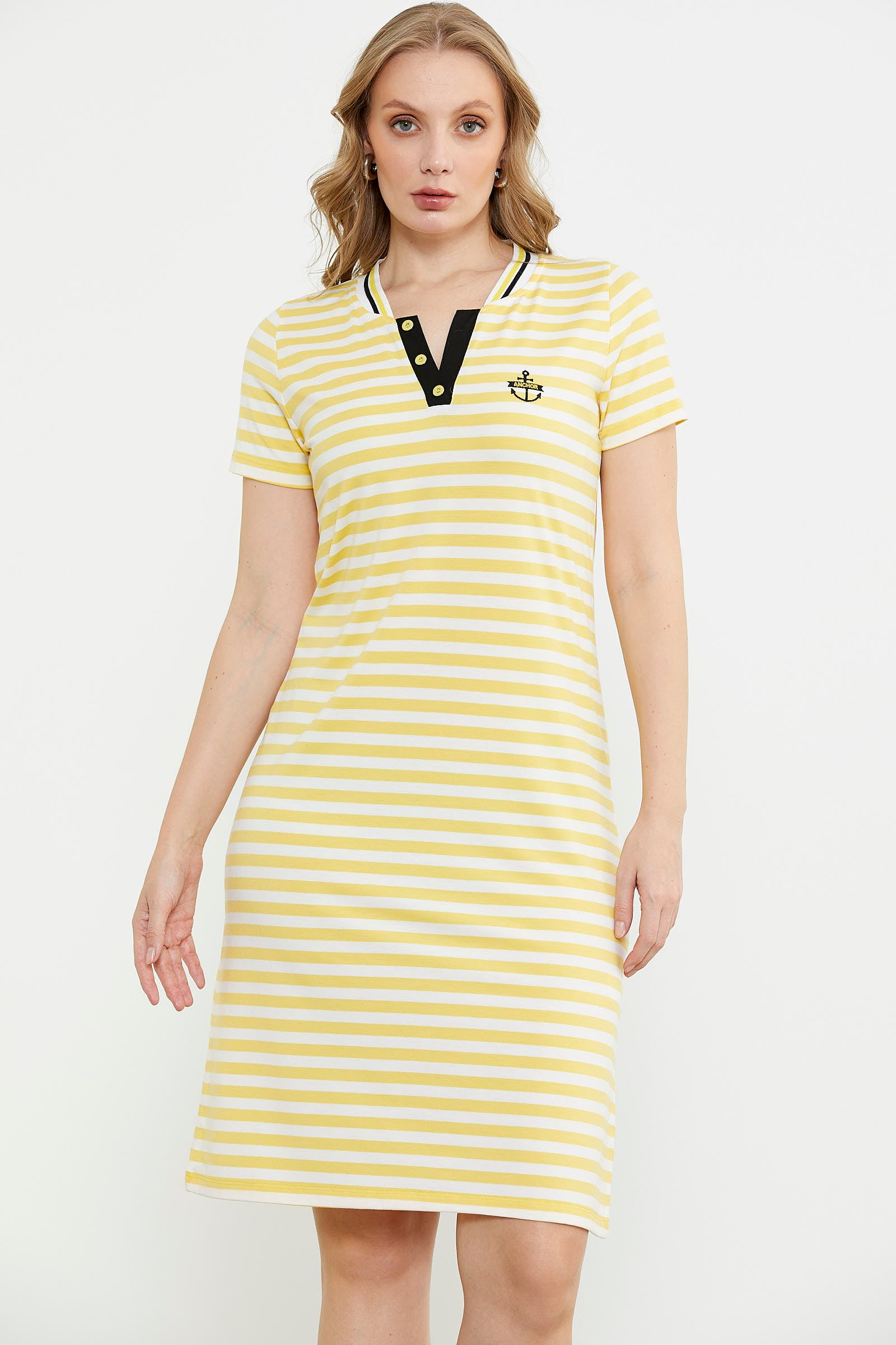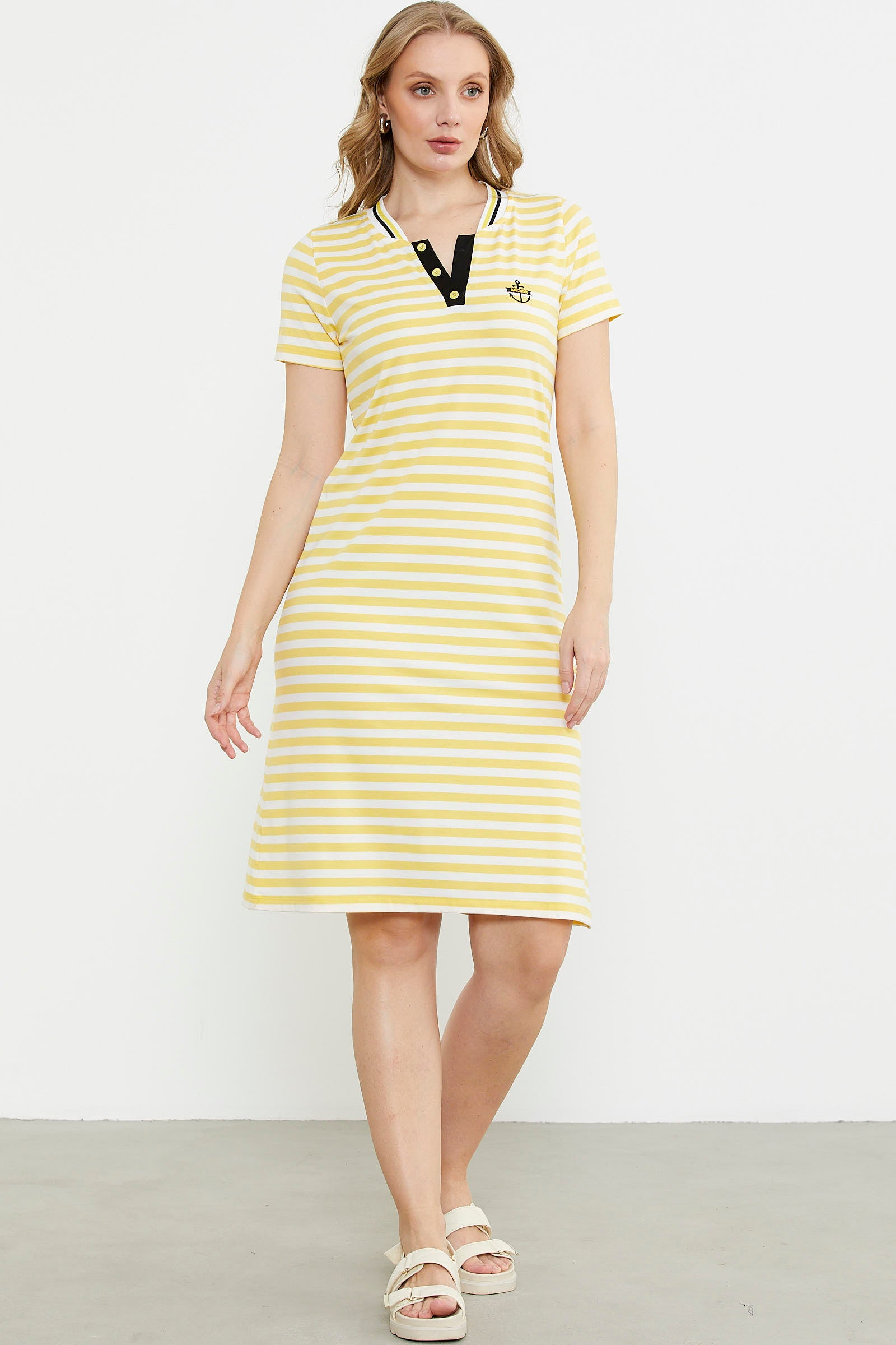 Marine Yaka Detaylı Penye Elbise - Sarı