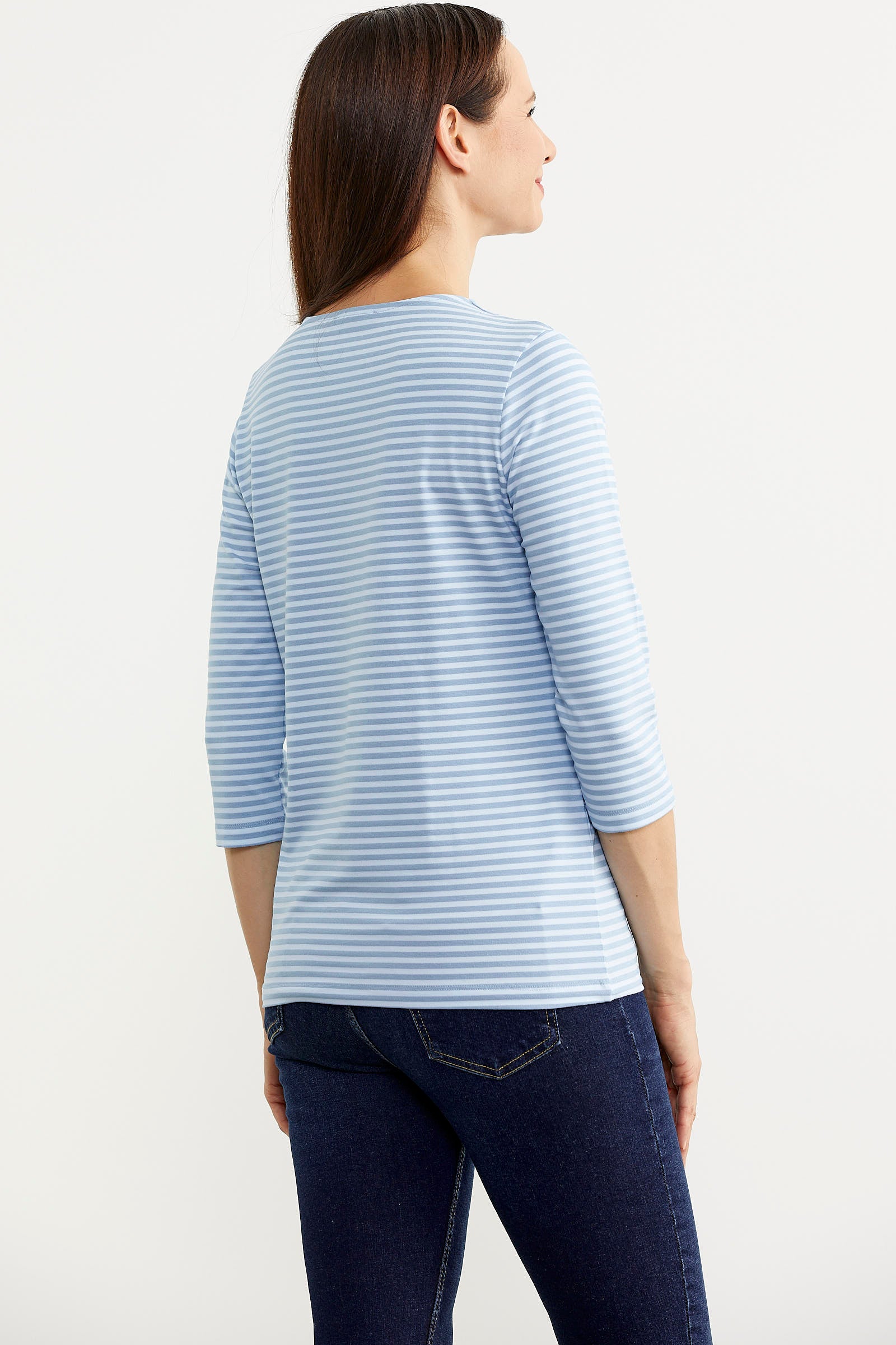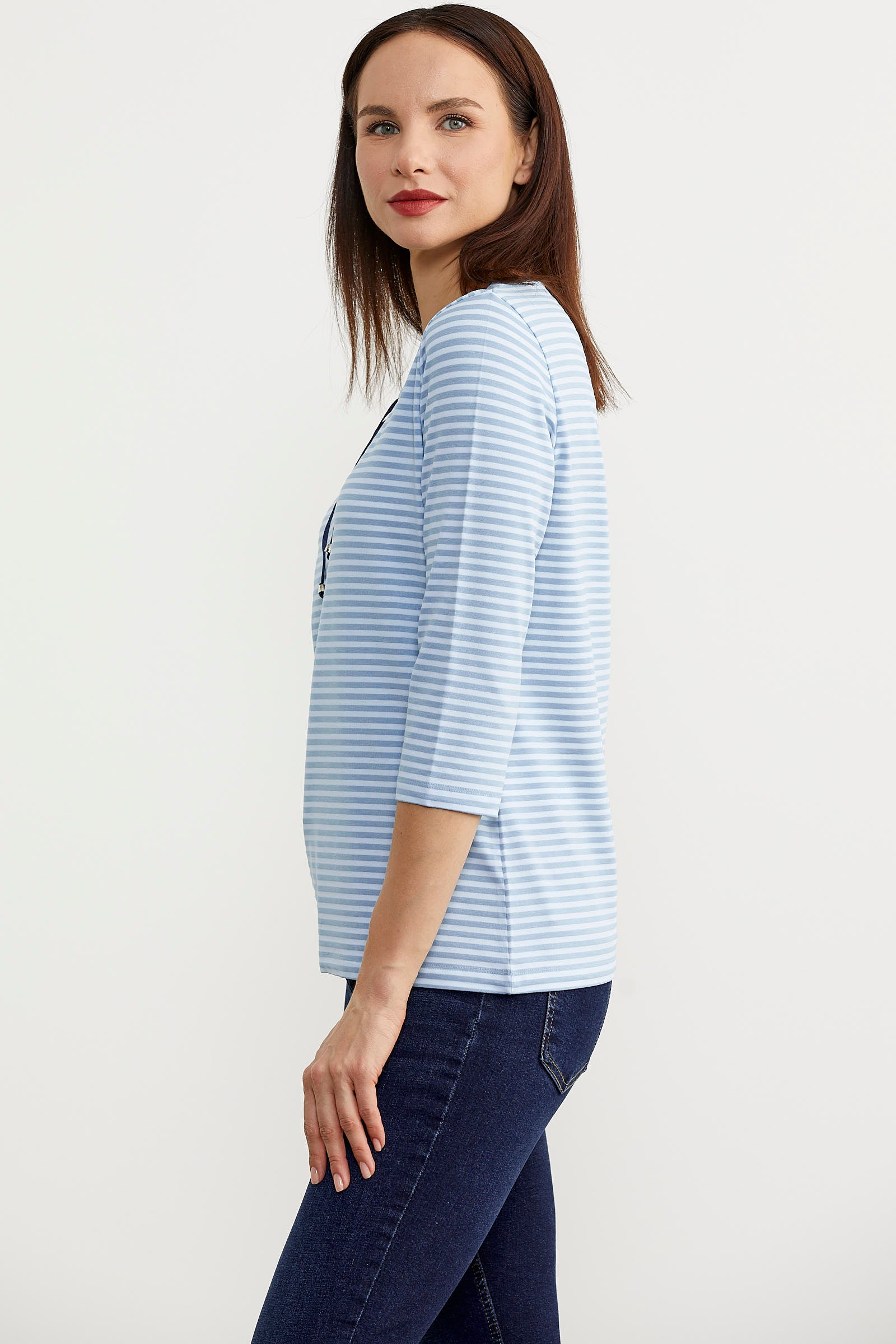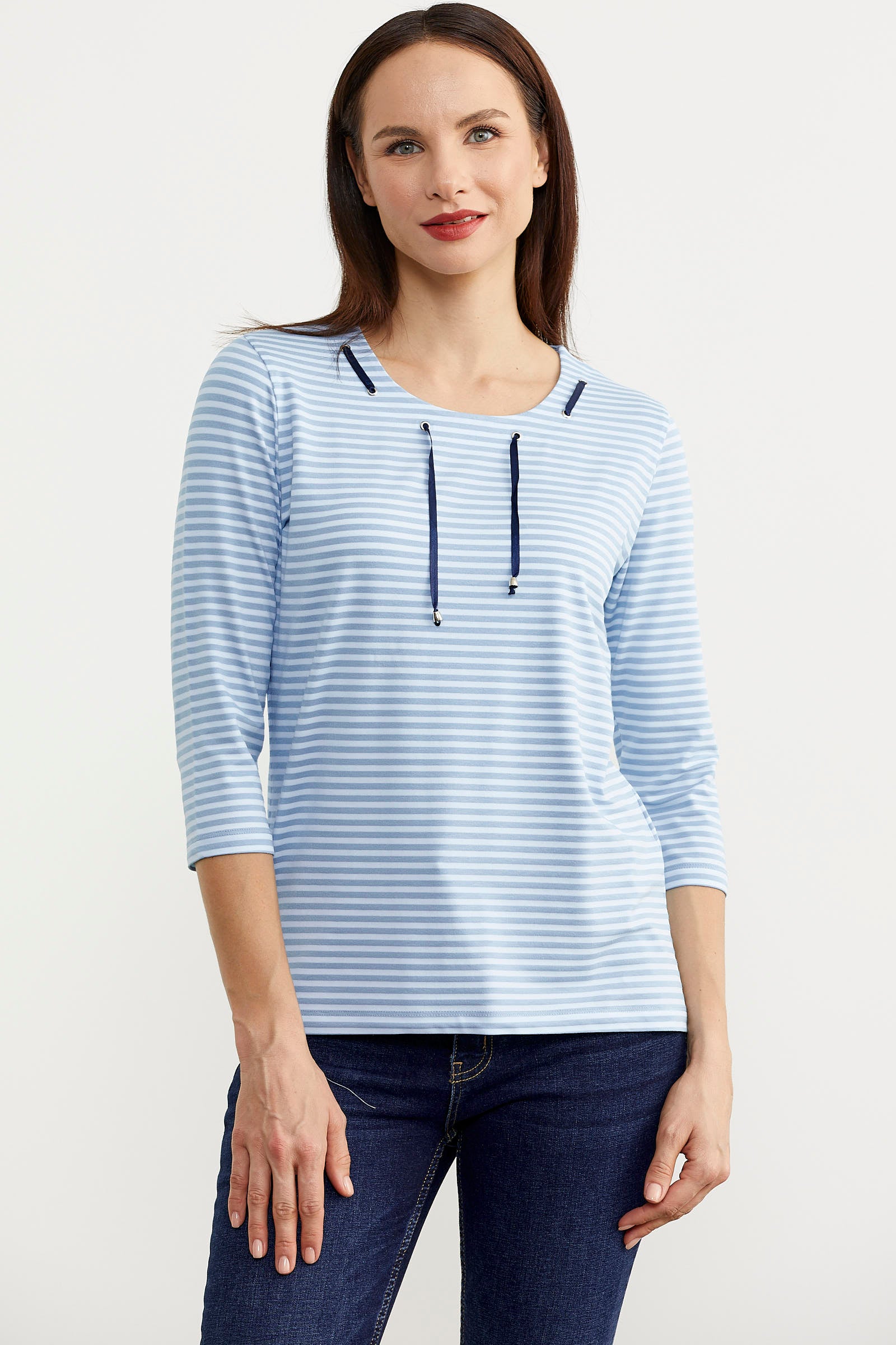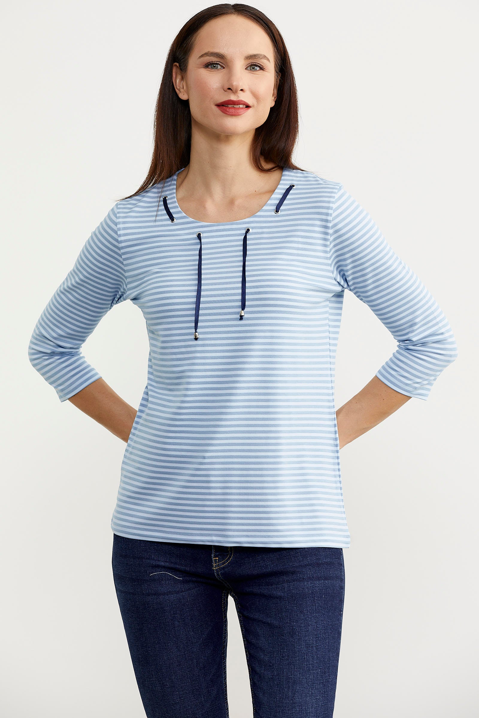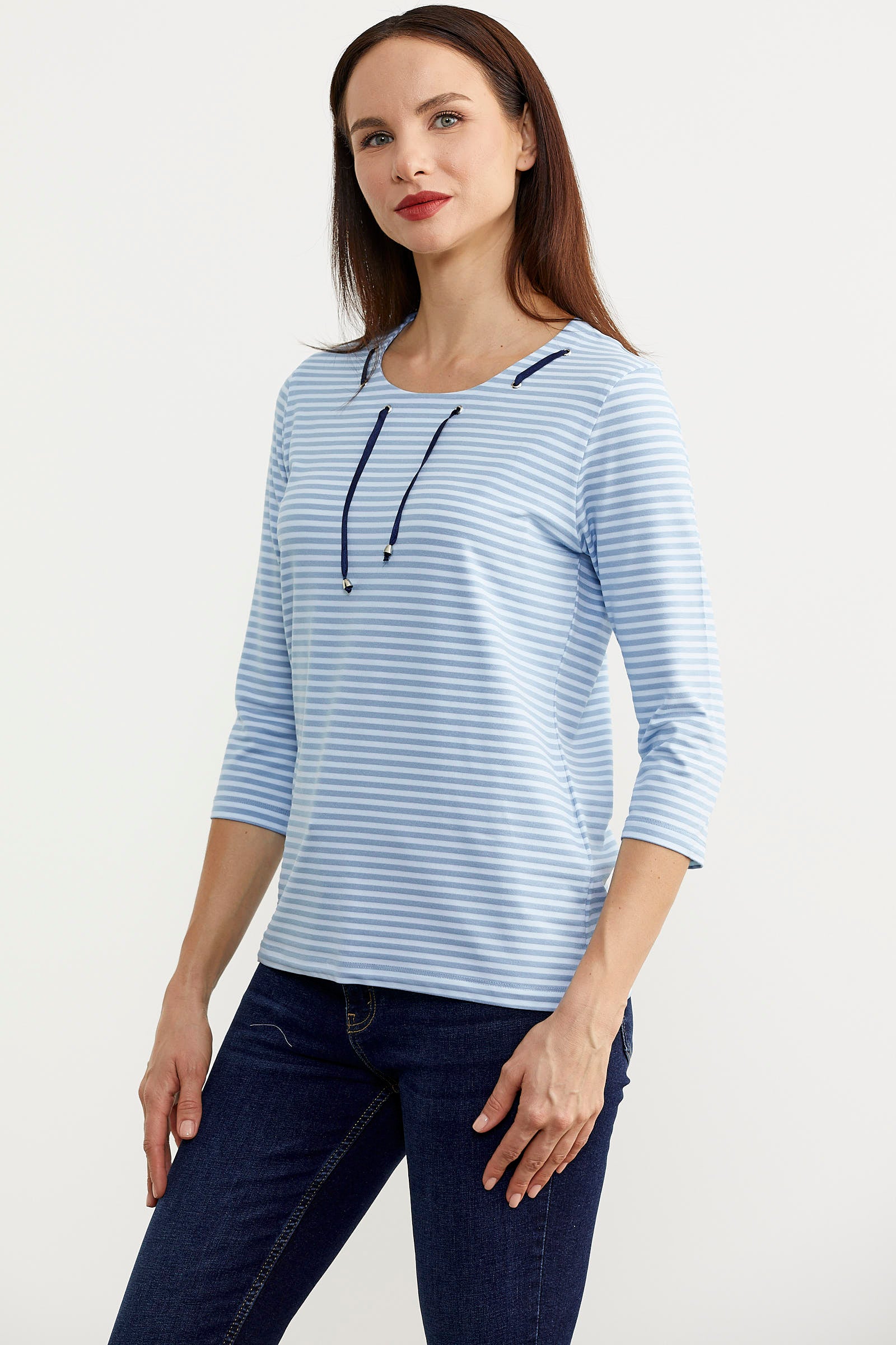 Neon İp Detaylı Çizgili Tişört - Mavi