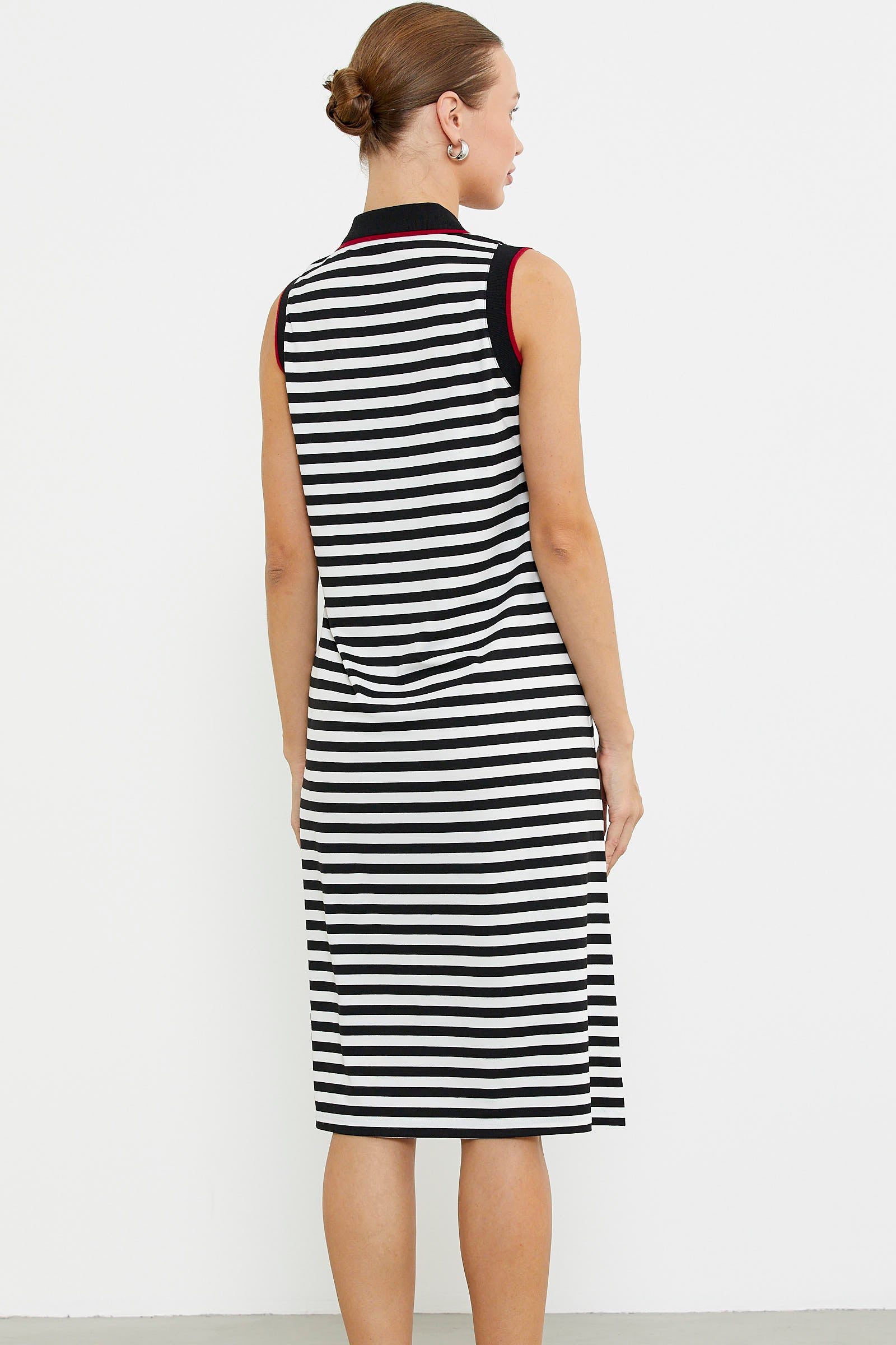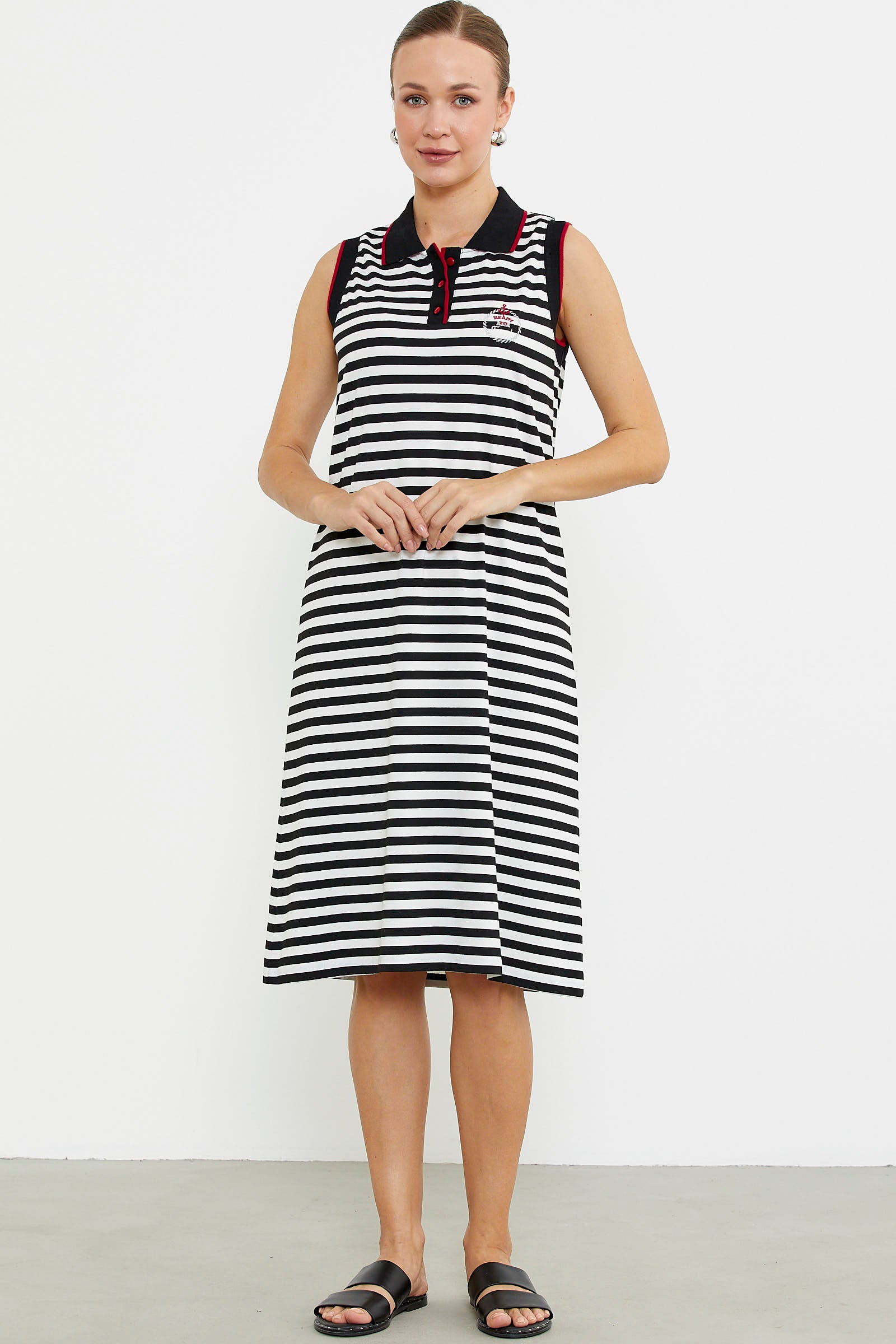 Polo Yaka Marine Çizgili Elbise - Siyah