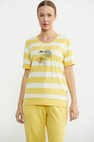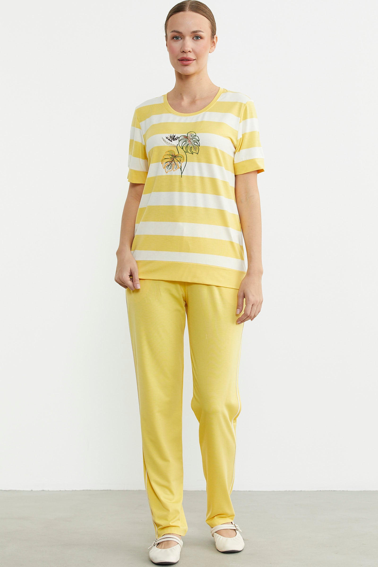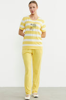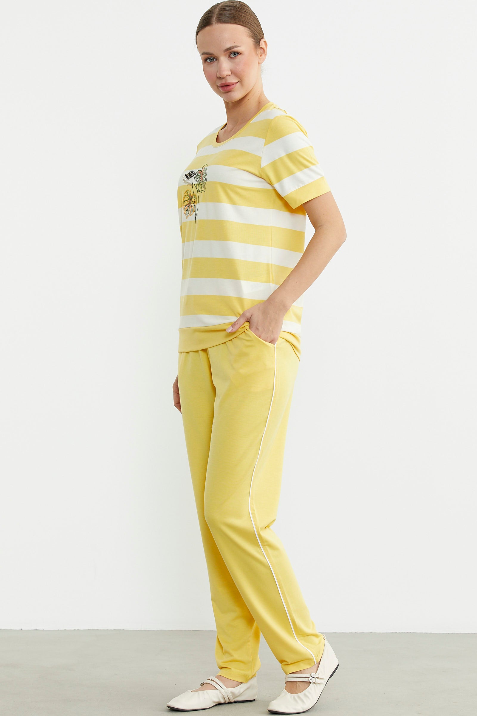 Rahat Kalıp Çizgili Pantolon Takım - Sarı