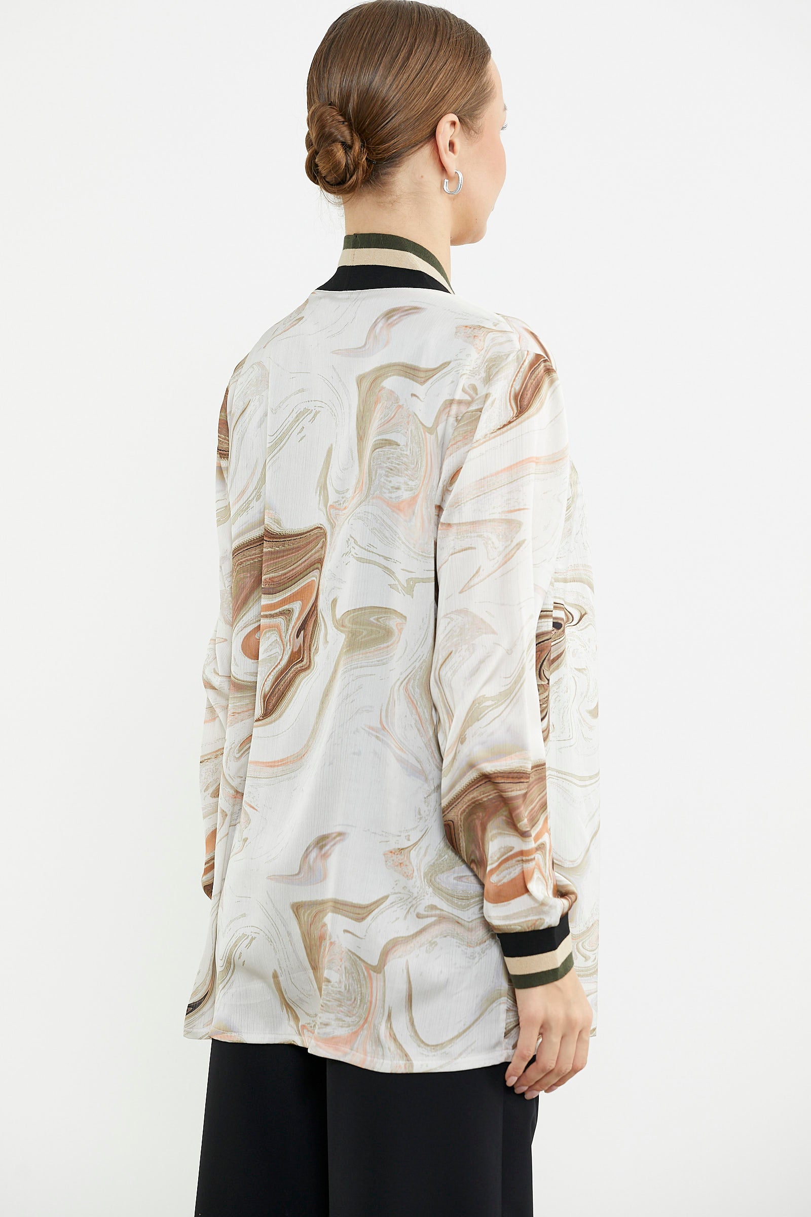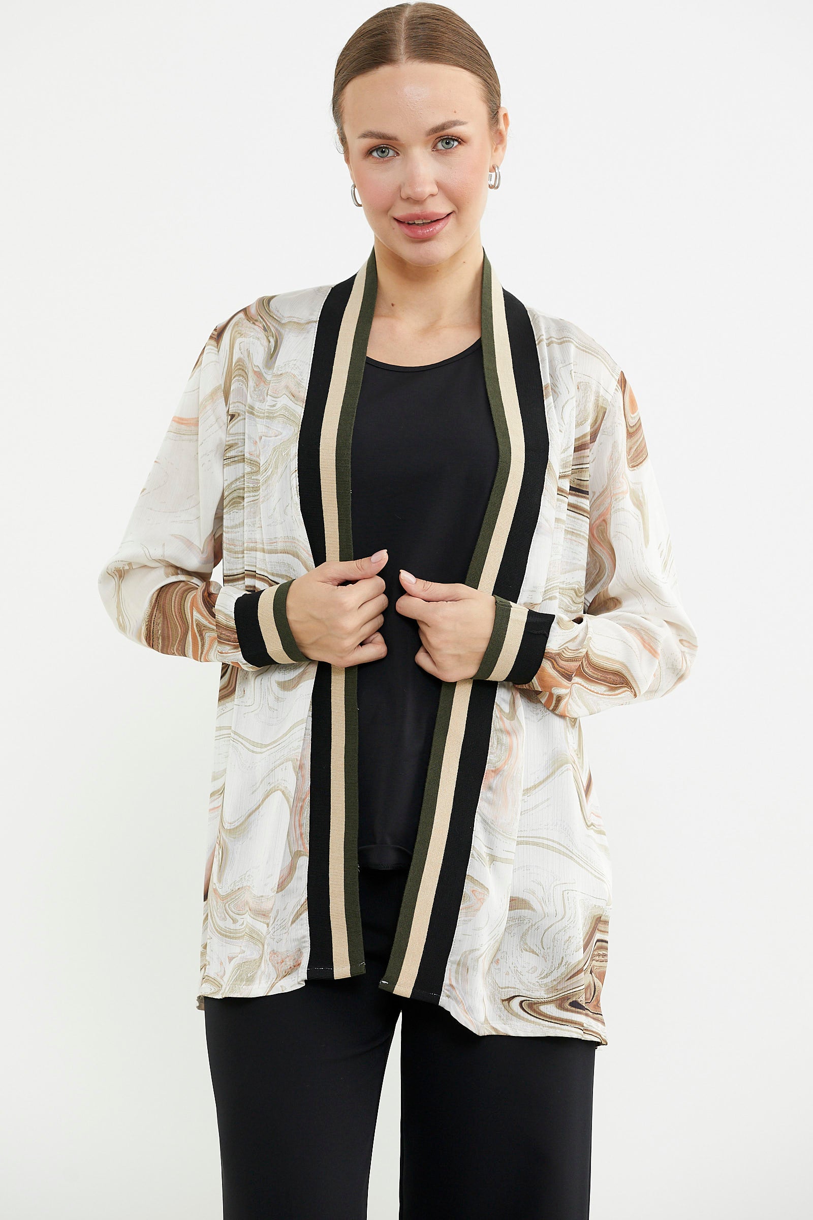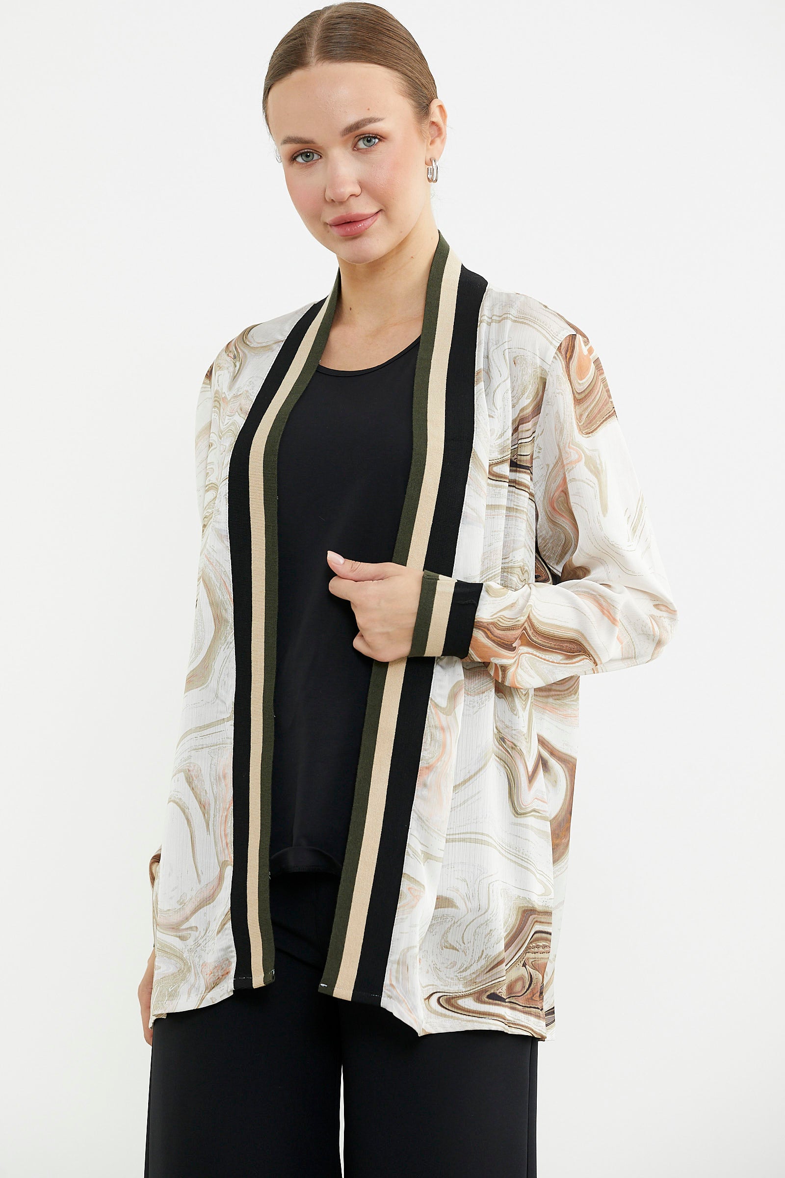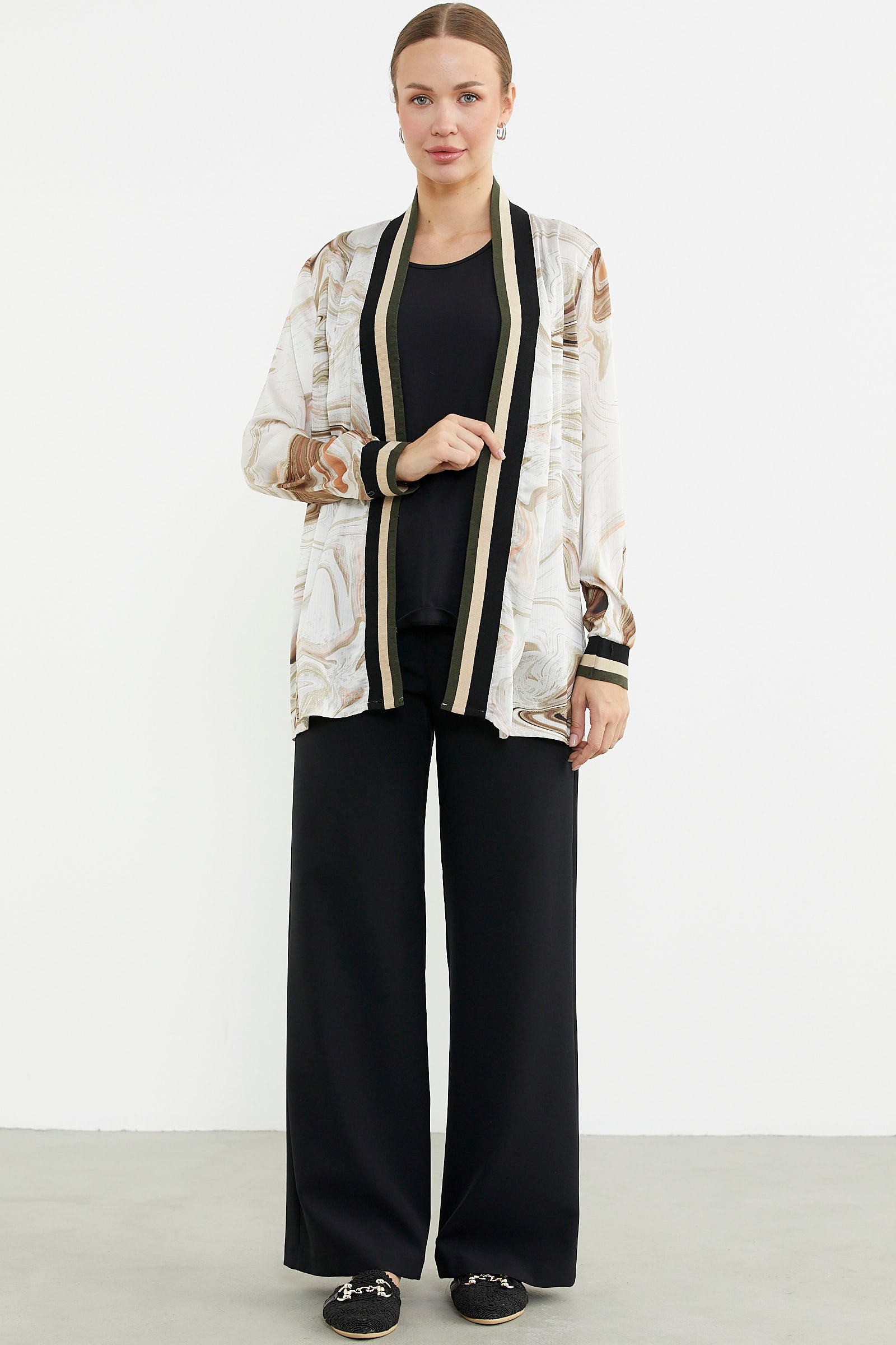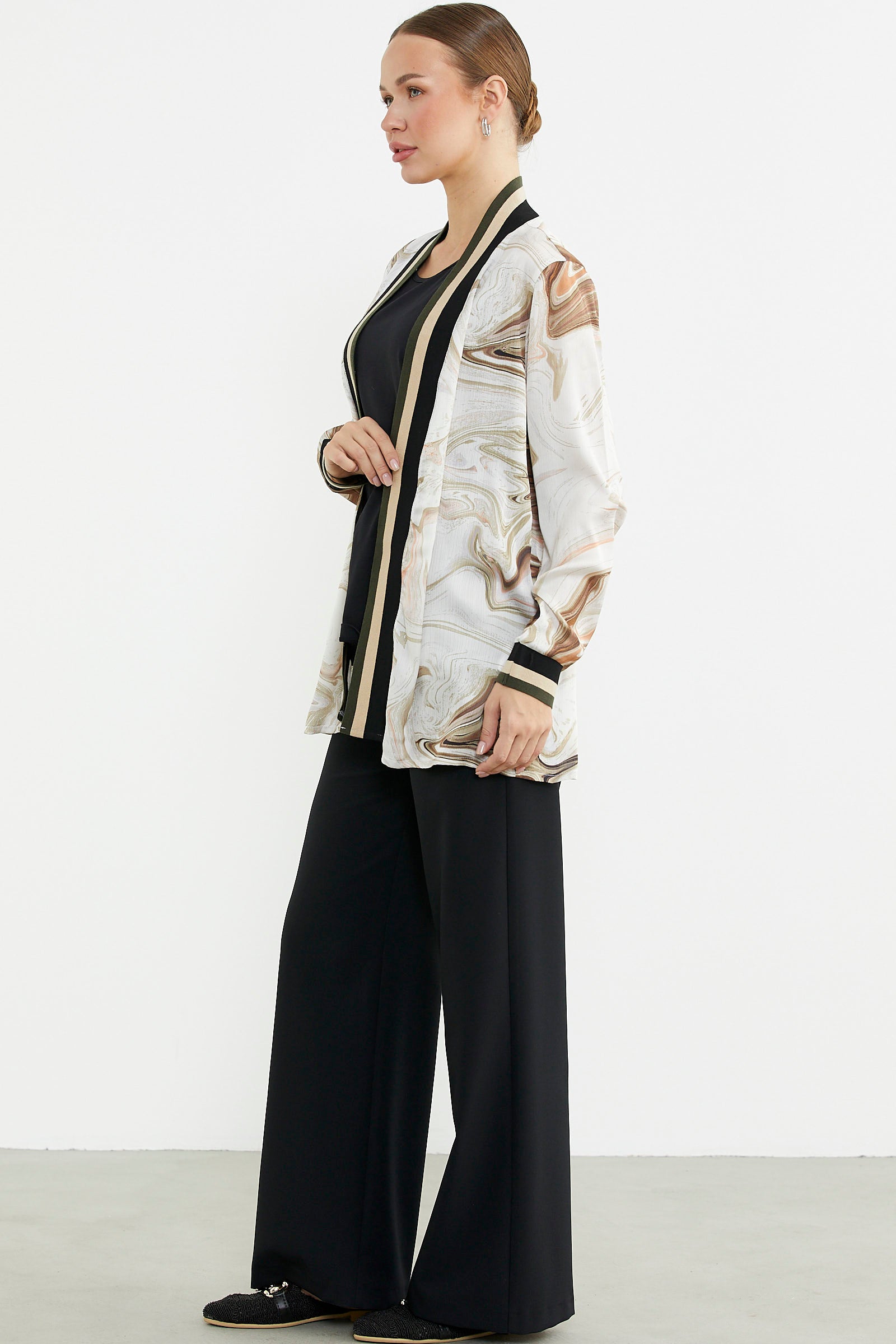Rahat Kalıp Desenli İkili Krep Takım - Bej