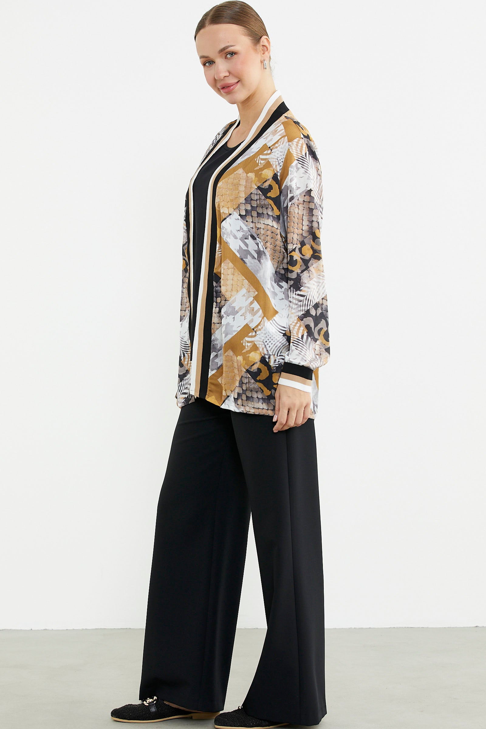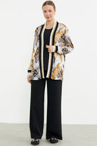 Rahat Kalıp Desenli İkili Krep Takım - Tarçın