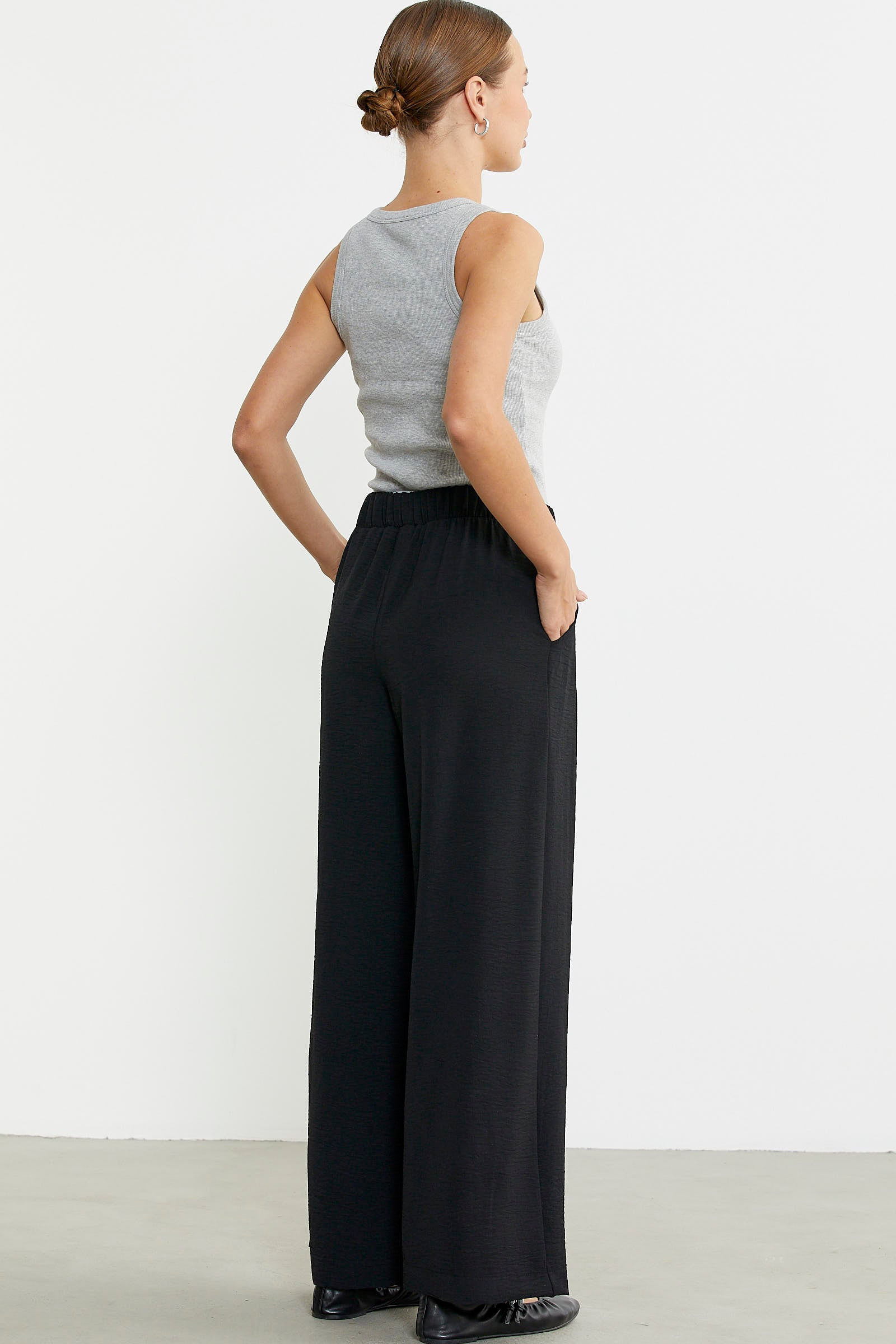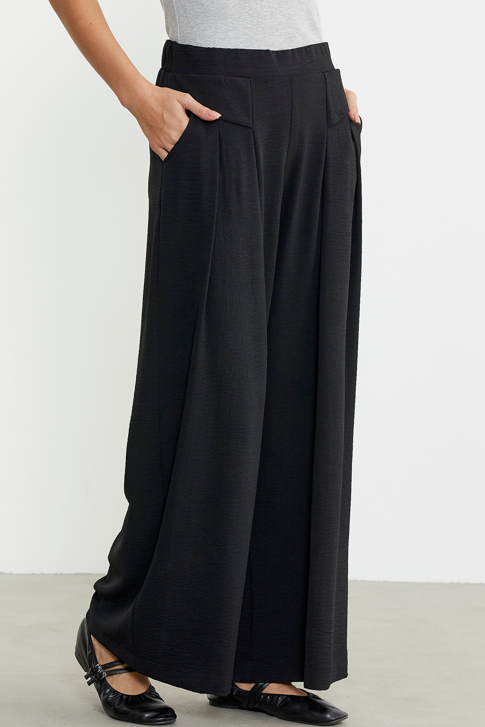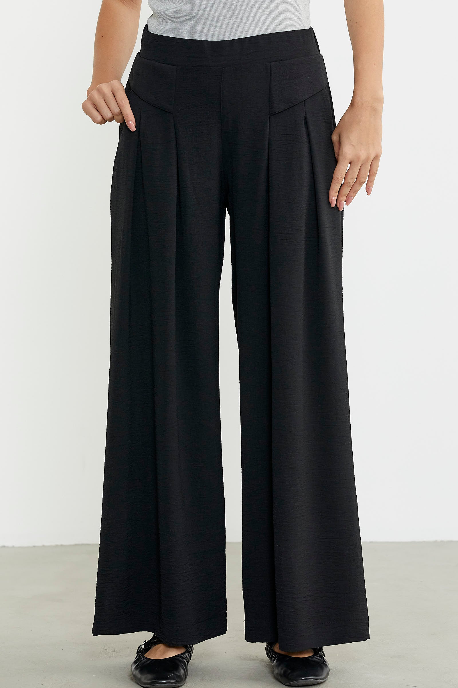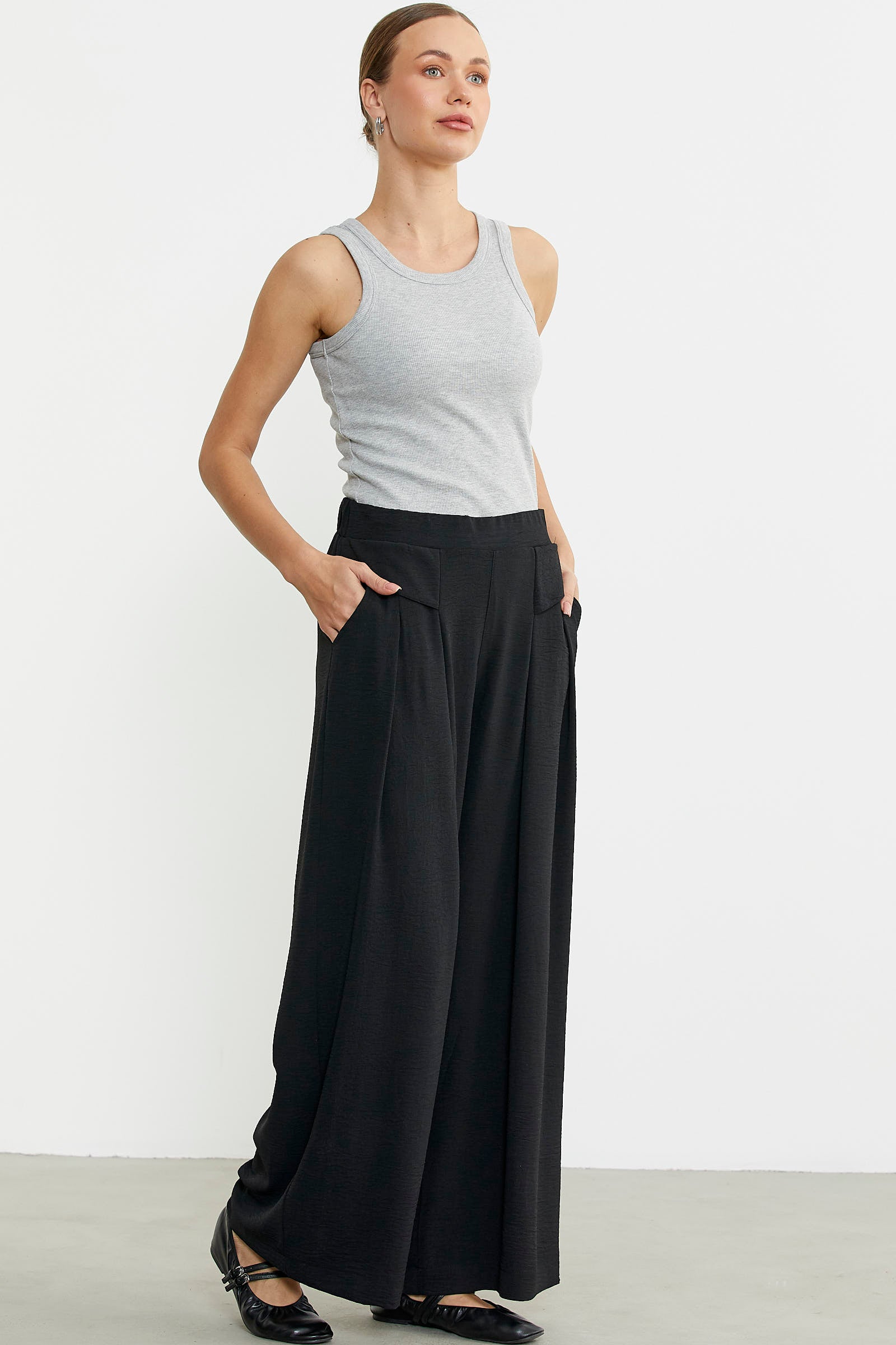 Volanlı Bol Kesim Krep Pantolon - Siyah