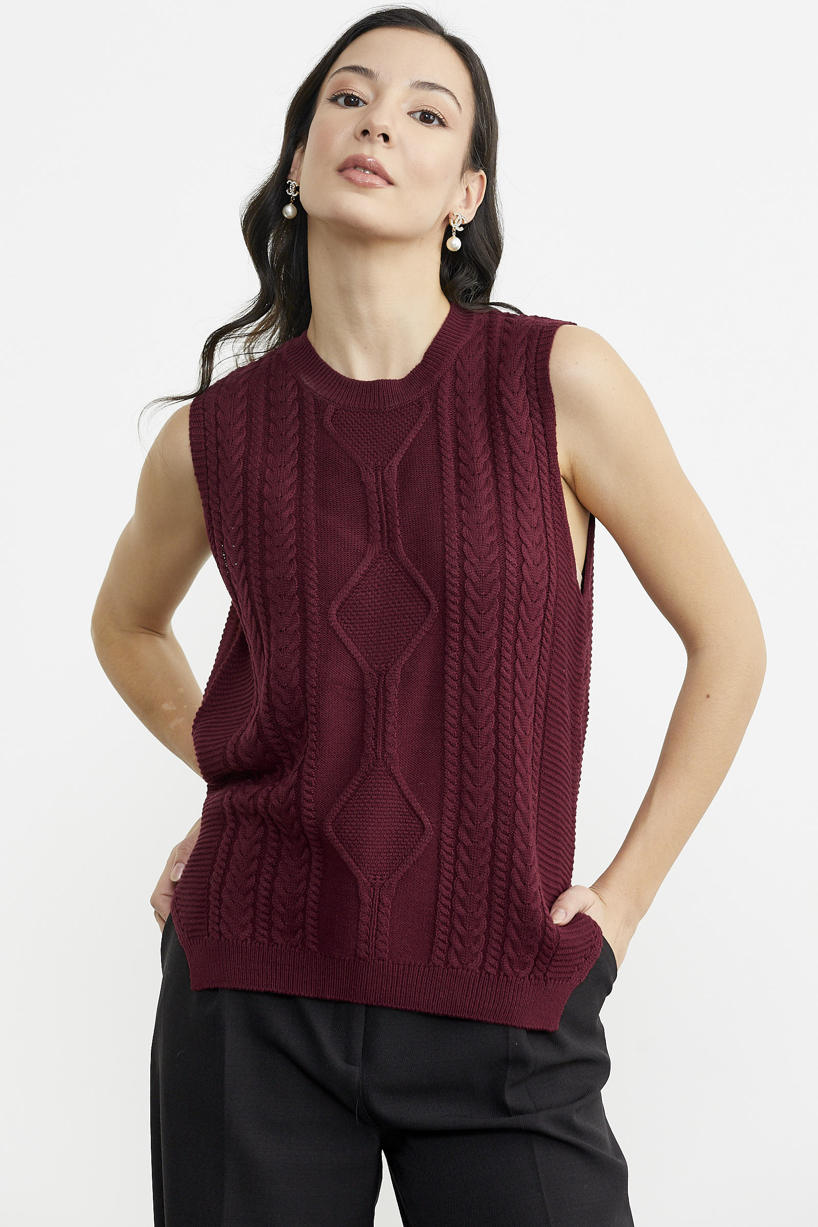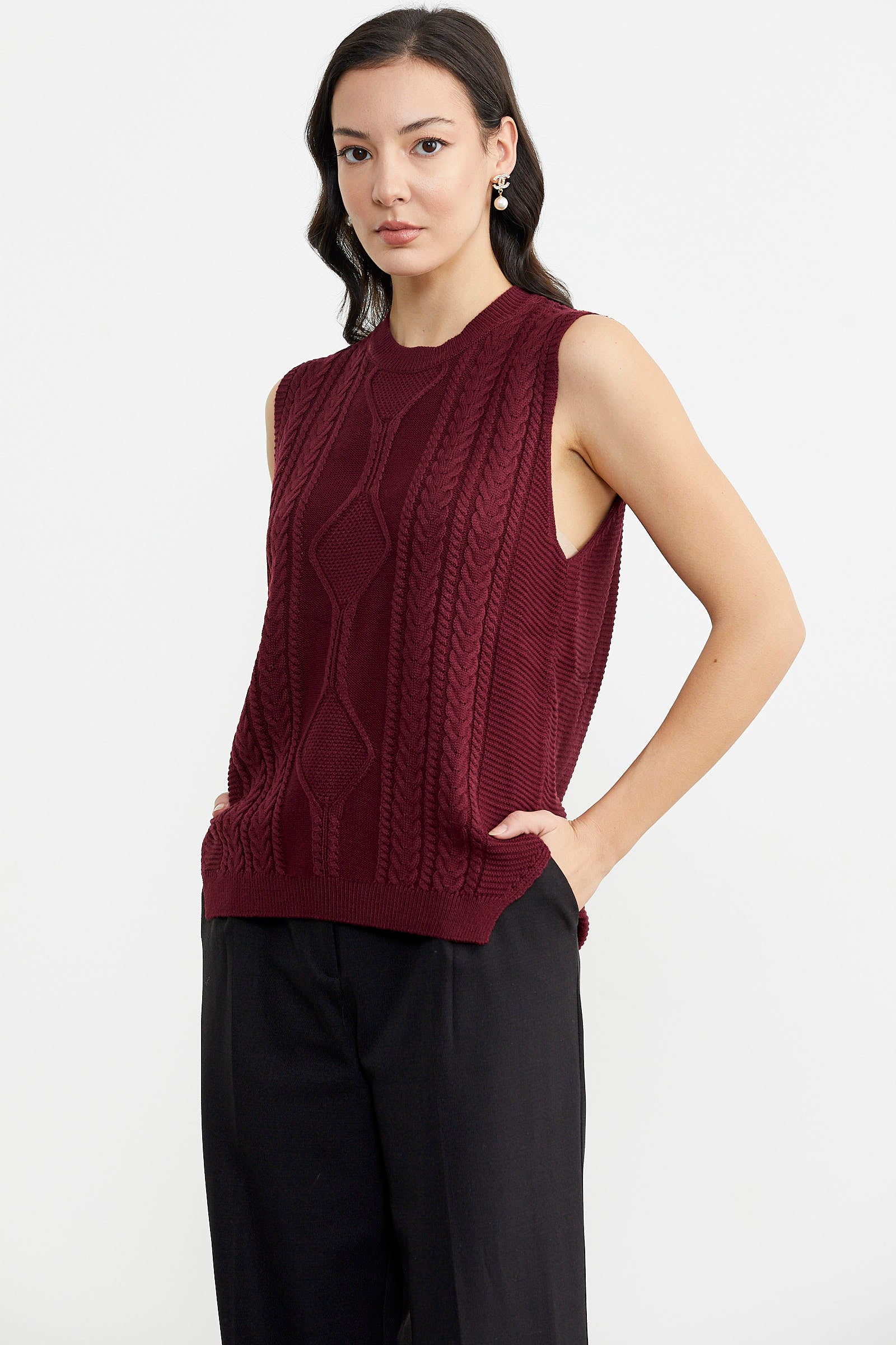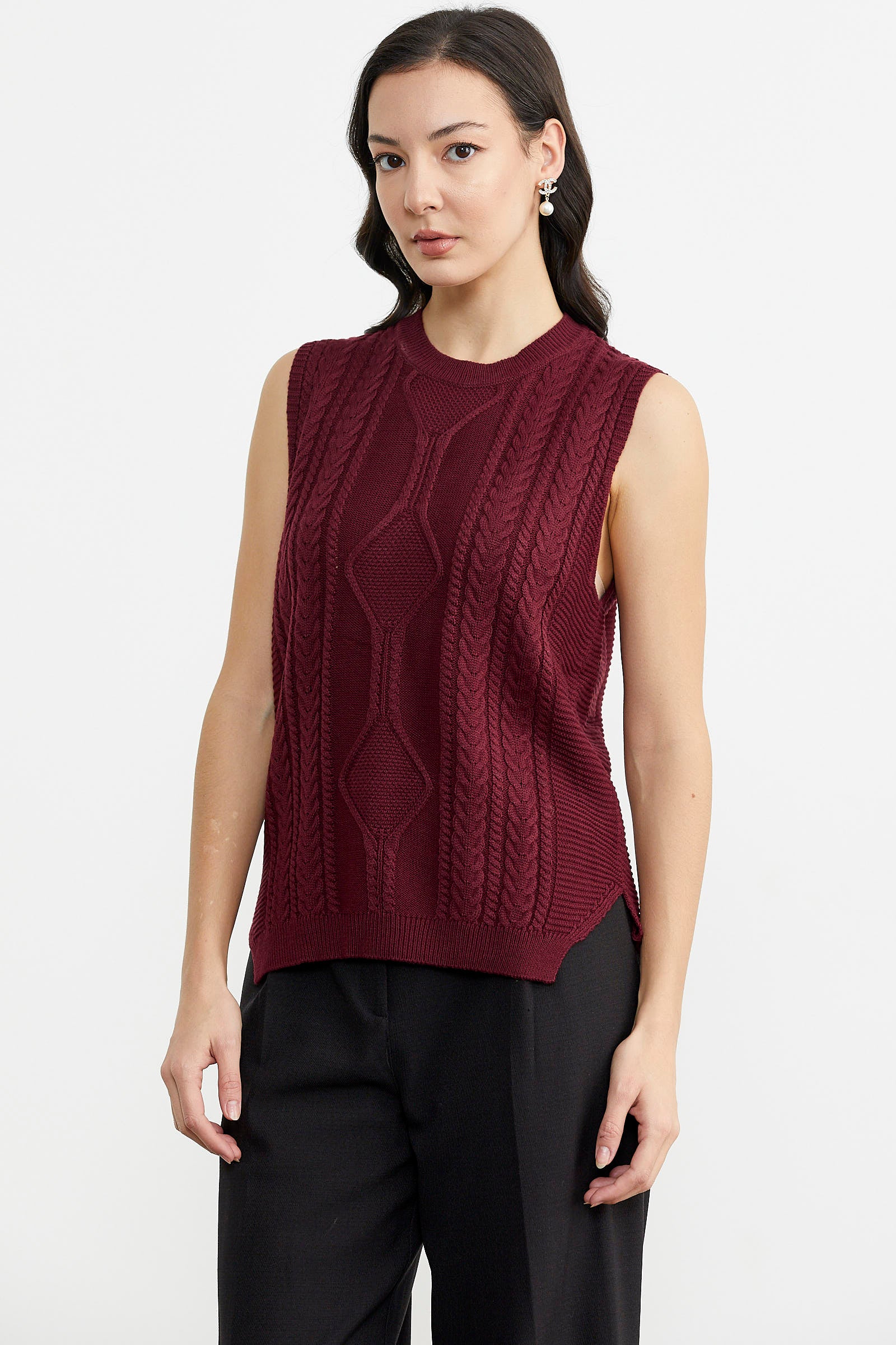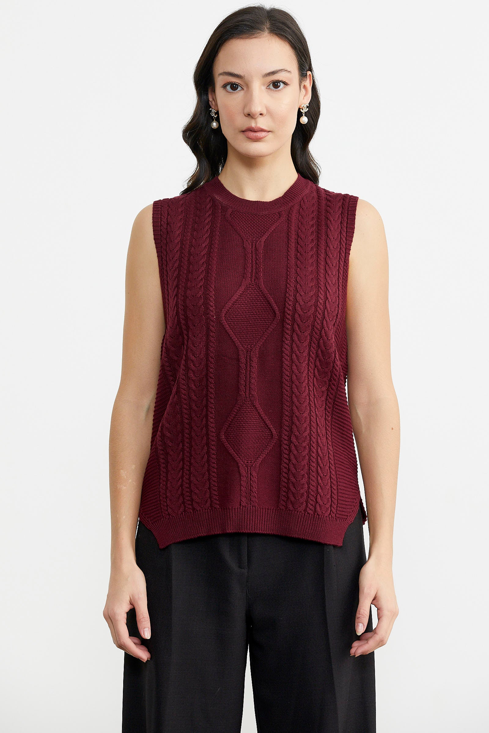 Arkası Uzun Motifli Triko Süveter - Bordo