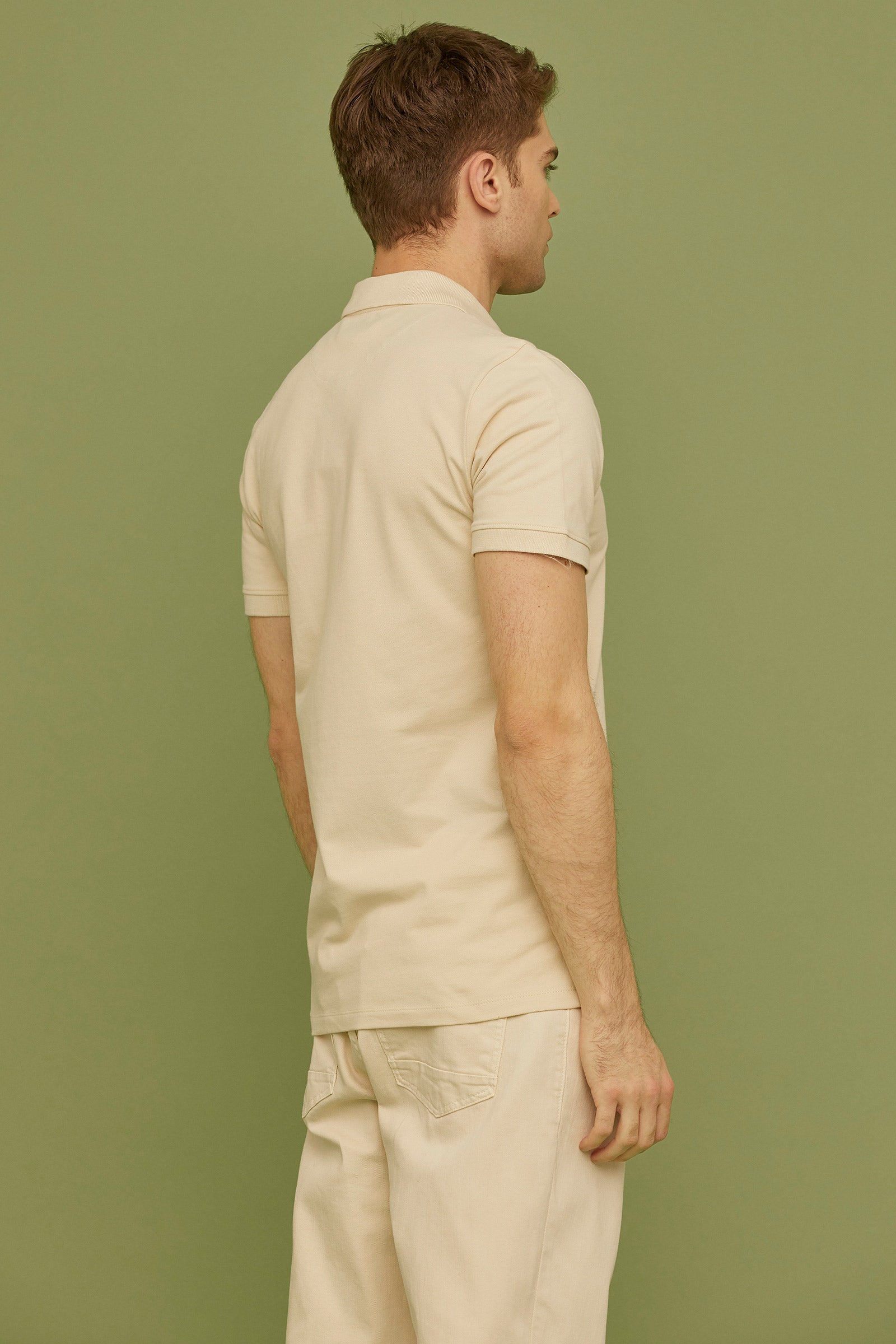 Detaylı Polo Yaka Kısa Kol Tişört - Taş