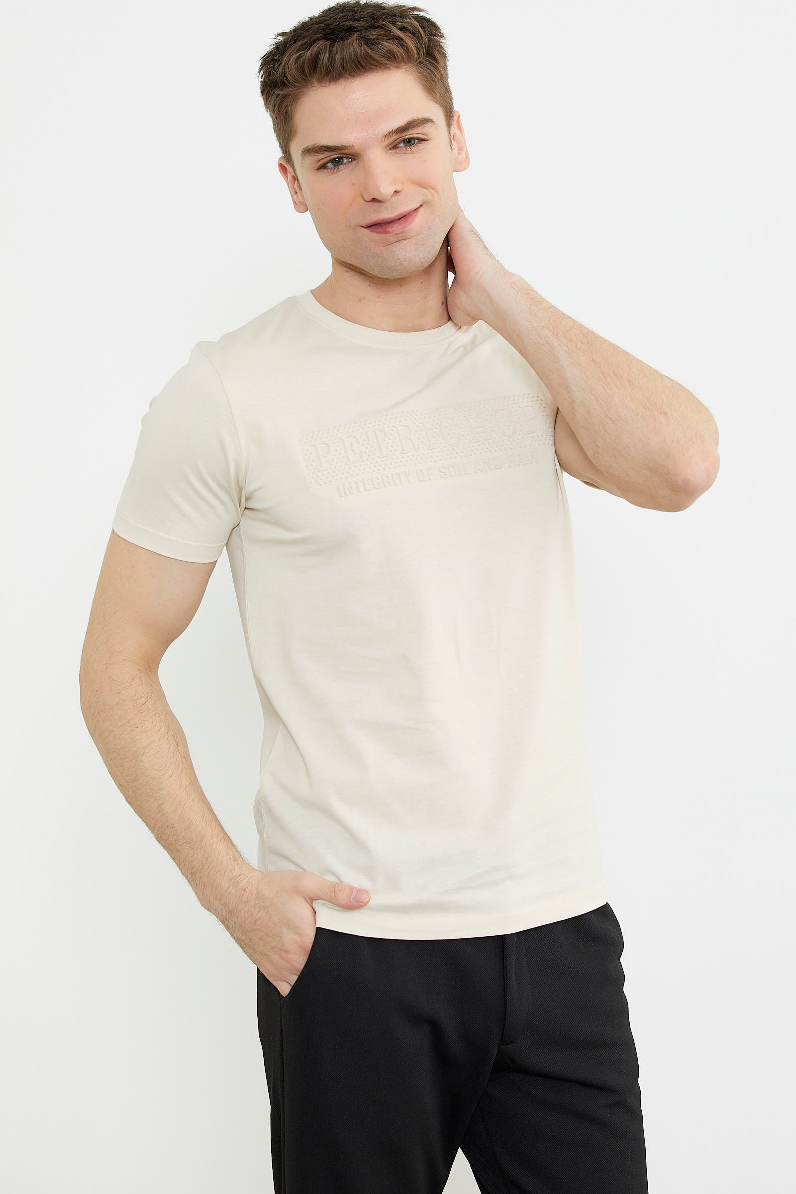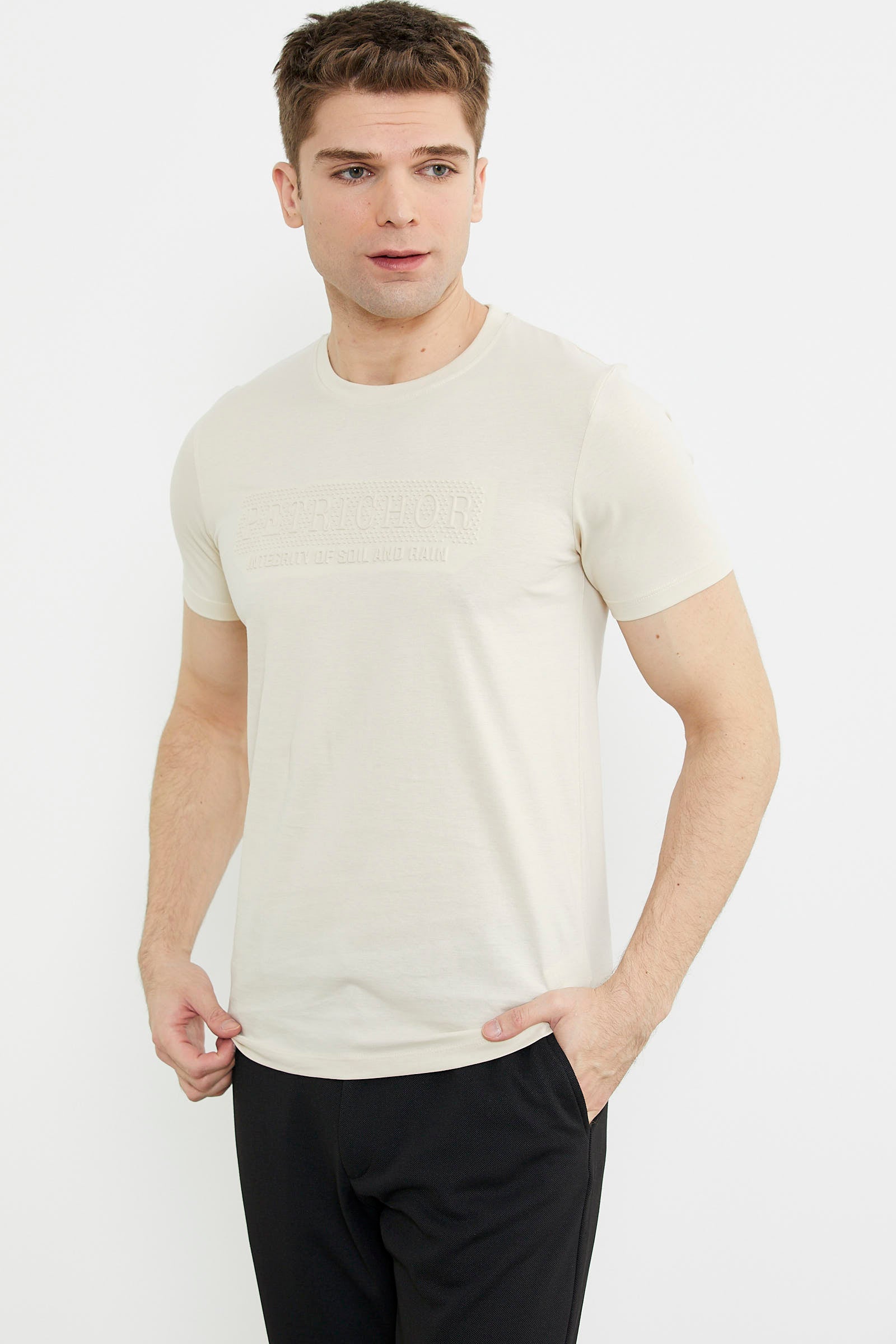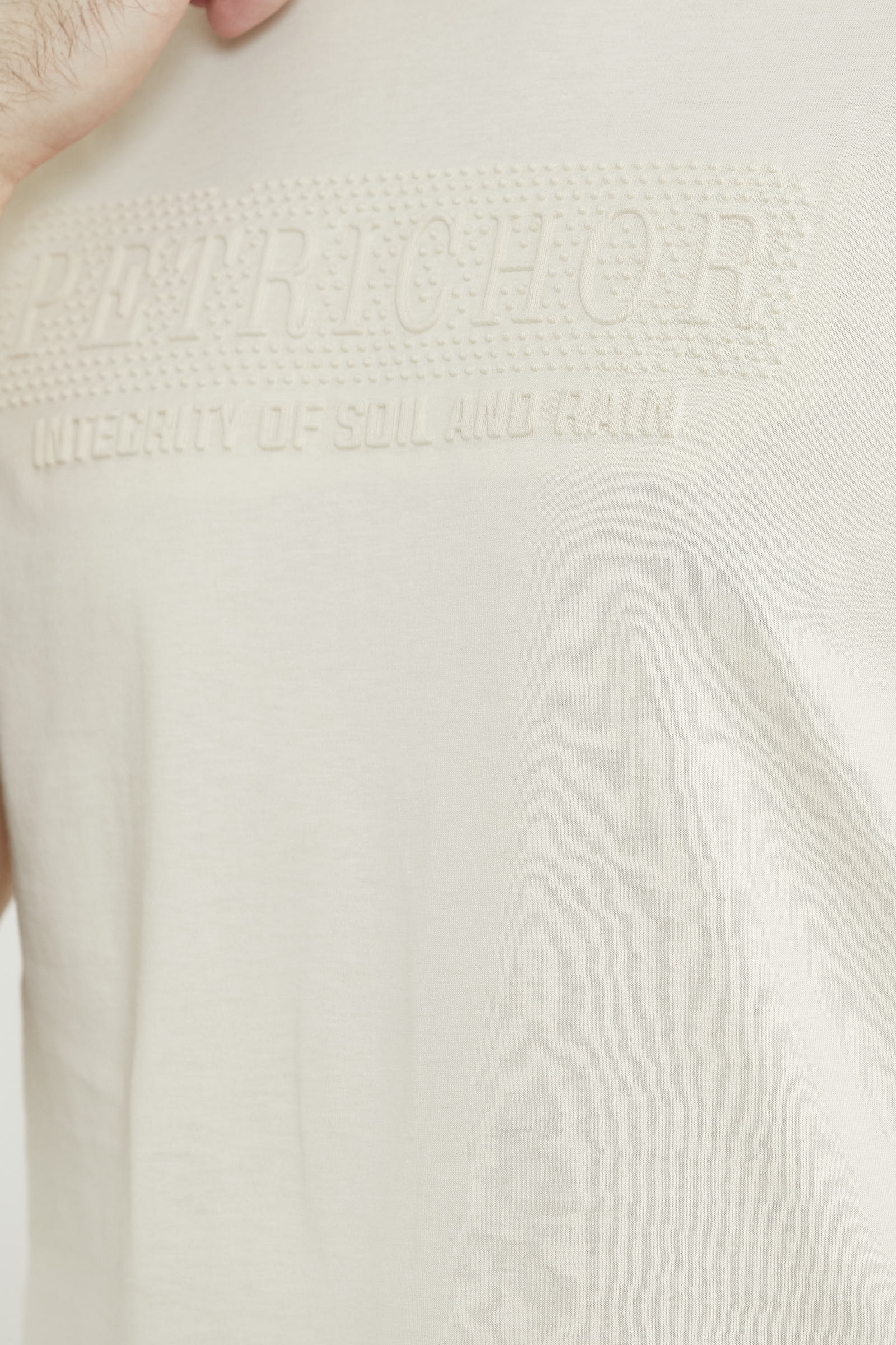 Kabartma Baskı Detaylı Pamuk Tişört - Kemik