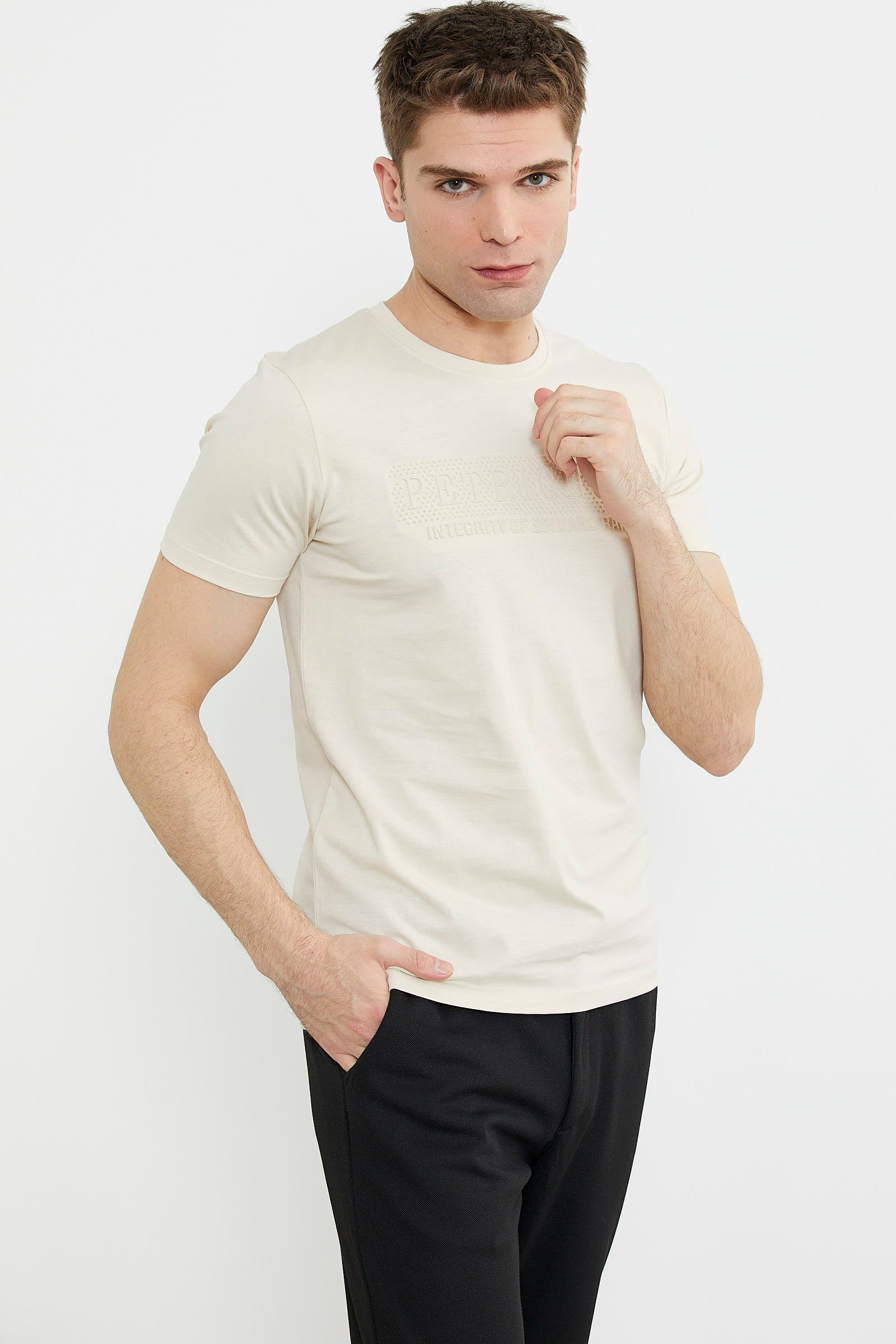 Pamuklu slim fit tişört, kabartma baskı detaylıdır.Renge renk kullanılmıştır. Spor kombinler için idealdir.