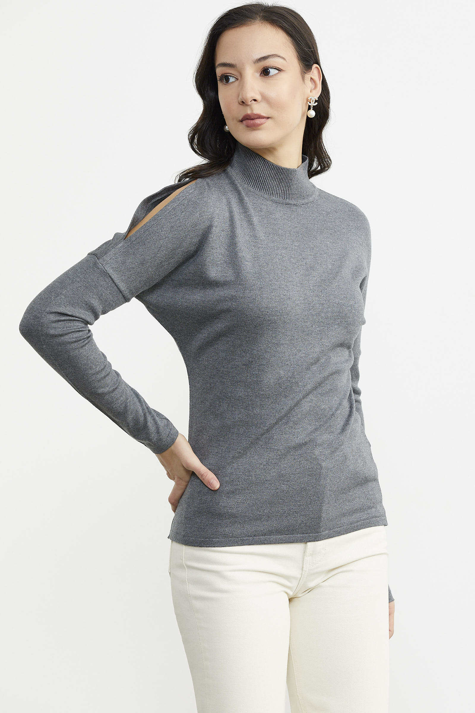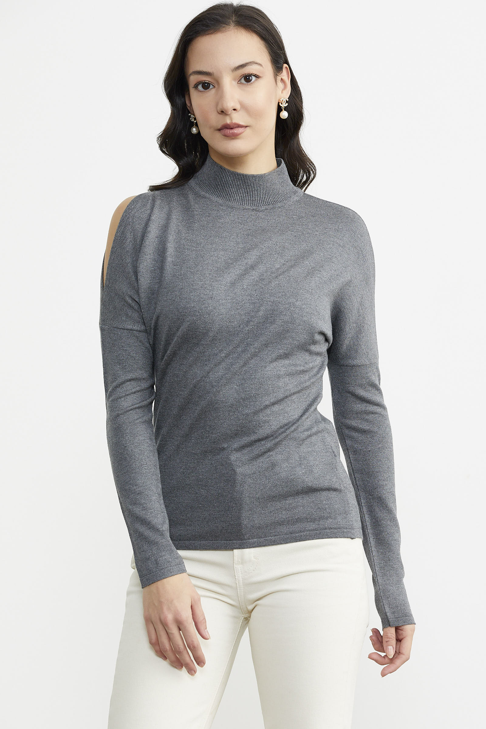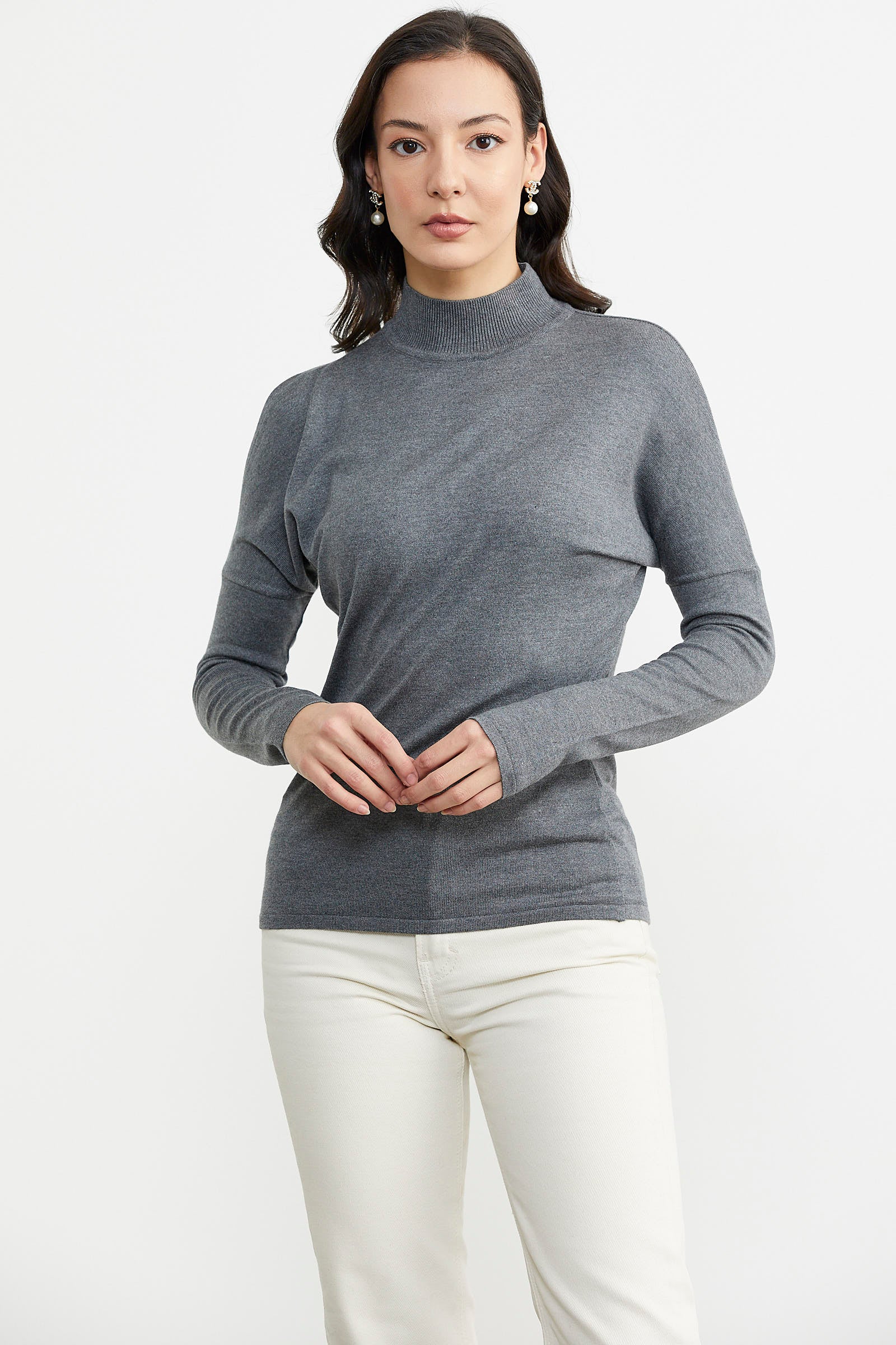 Omuz Detaylı Triko Kazak - Koyu Gri