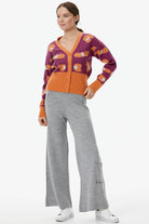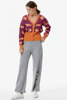 Renkli Desenli Düğmeli Triko Hırka - Taba
