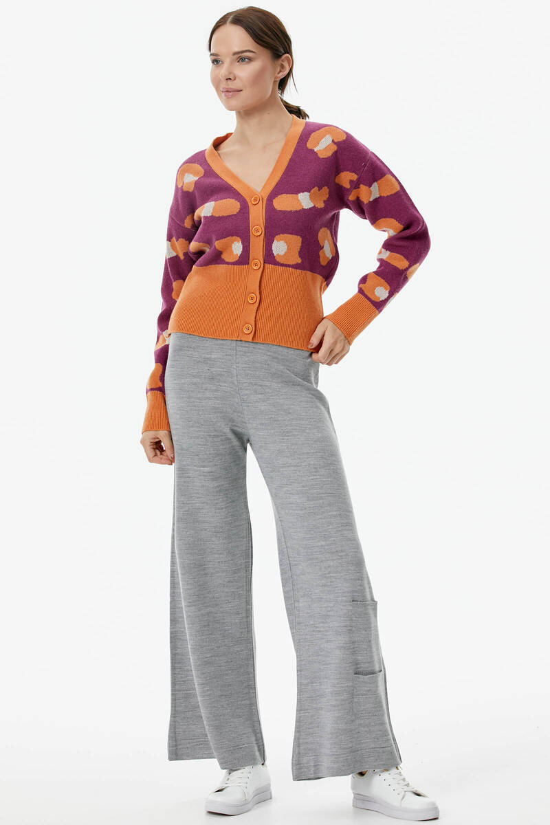 Düğmeli, desenli, kol ağızları ve etek ucu lastik örgülü, v yaka modeli ve rahat kullanımlı triko hırka. Yüksek bel pantolonlarınızla kolayca kombinleyebileceğiniz, içine giydiğiniz triko crop top ve gömlekle mükemmel bir uyum yakalayabileceğiniz, basic kombinlerinizde stilinize ayrıcalık katacak.