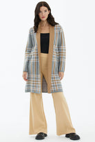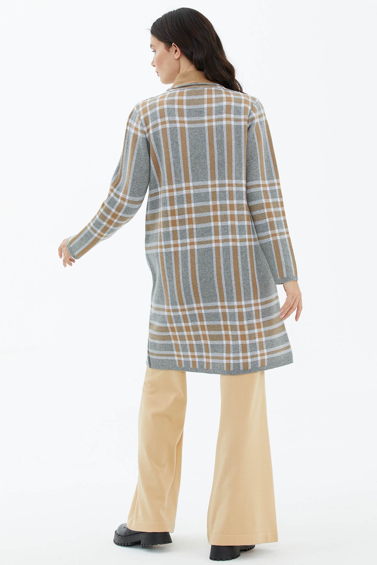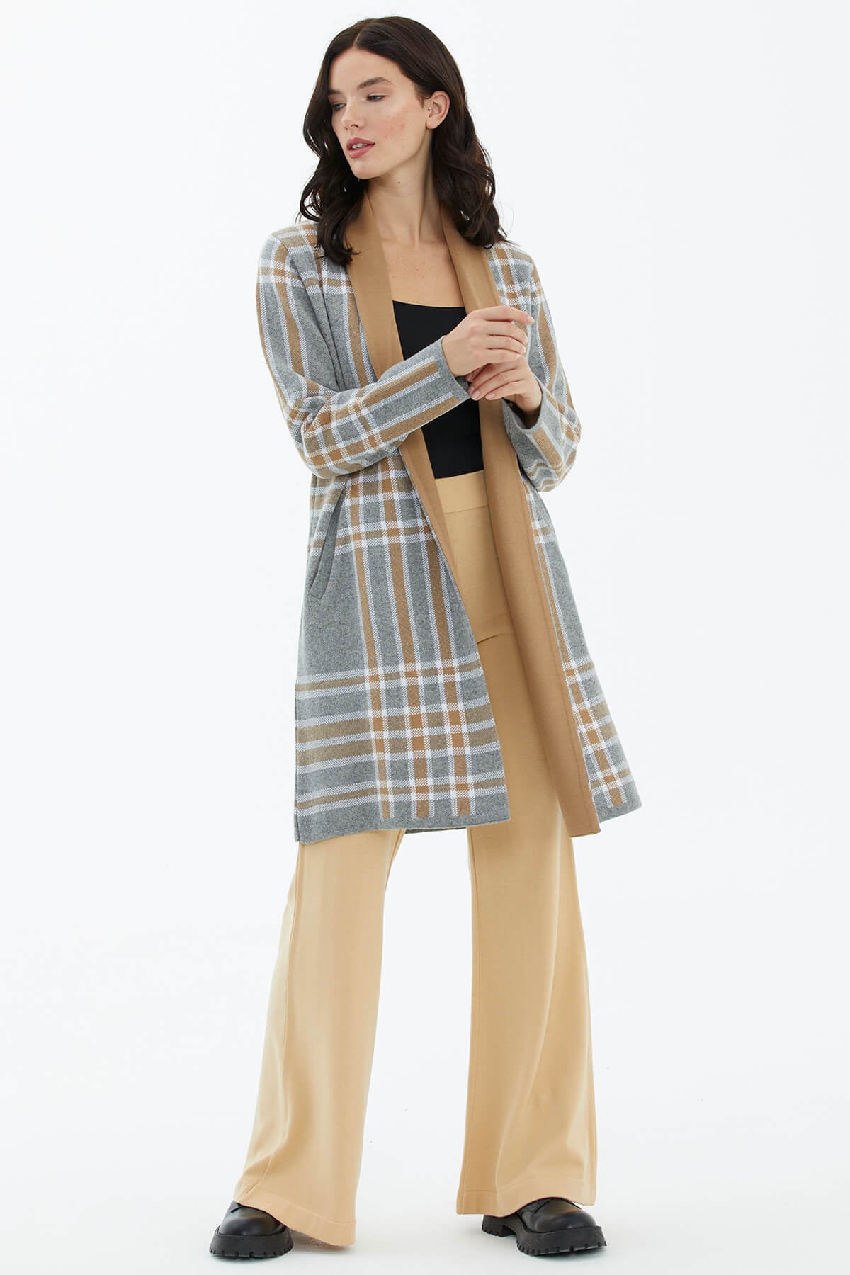 Şal Yaka Ekose Desenli Triko Hırka - Gri