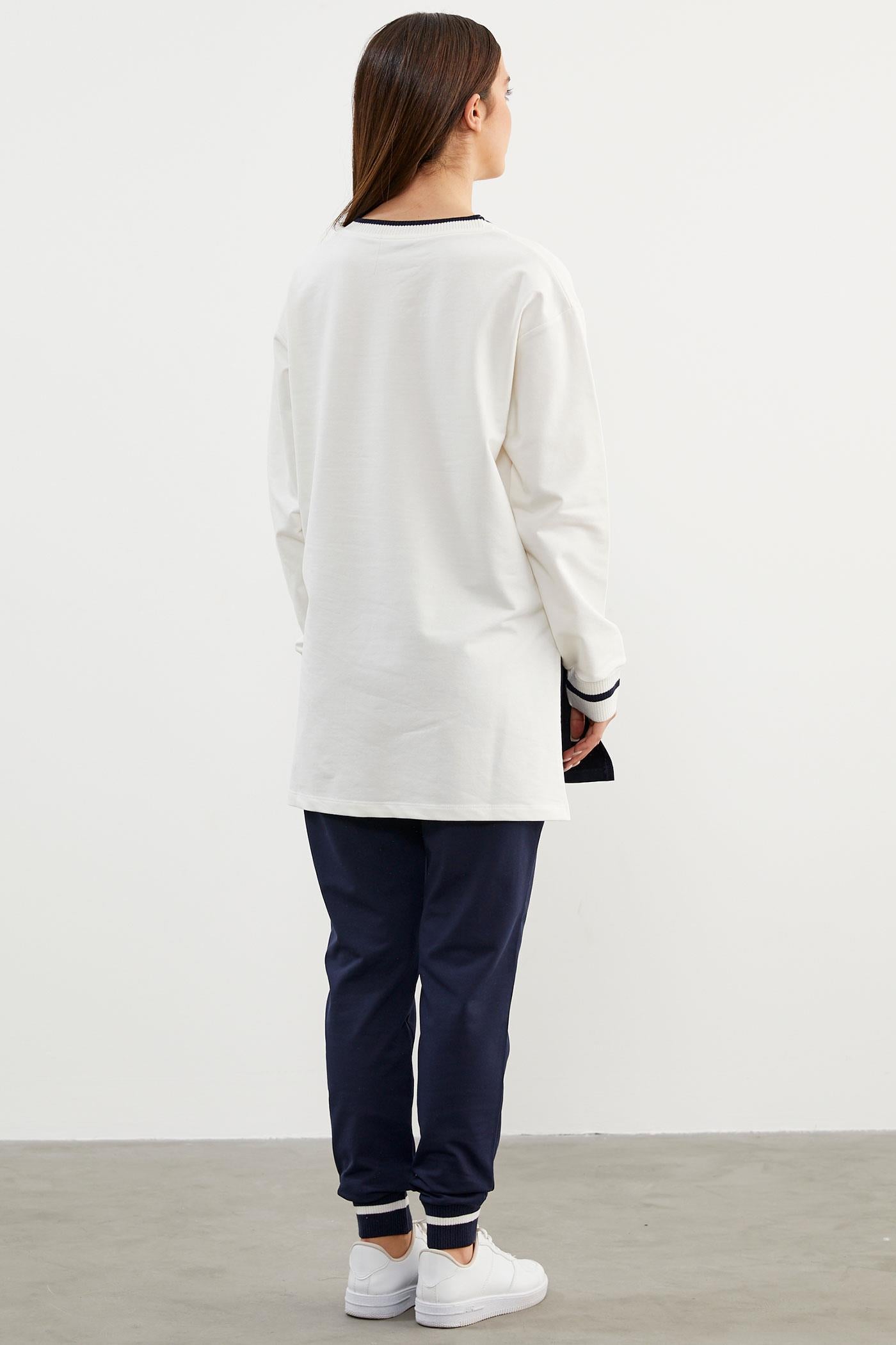 Triko Yaka Detaylı Oversize Eşofman Takım - Lacivert