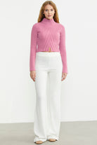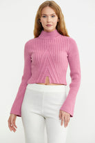Yarım Balıkçı Crop Triko Kazak - Pembe