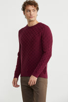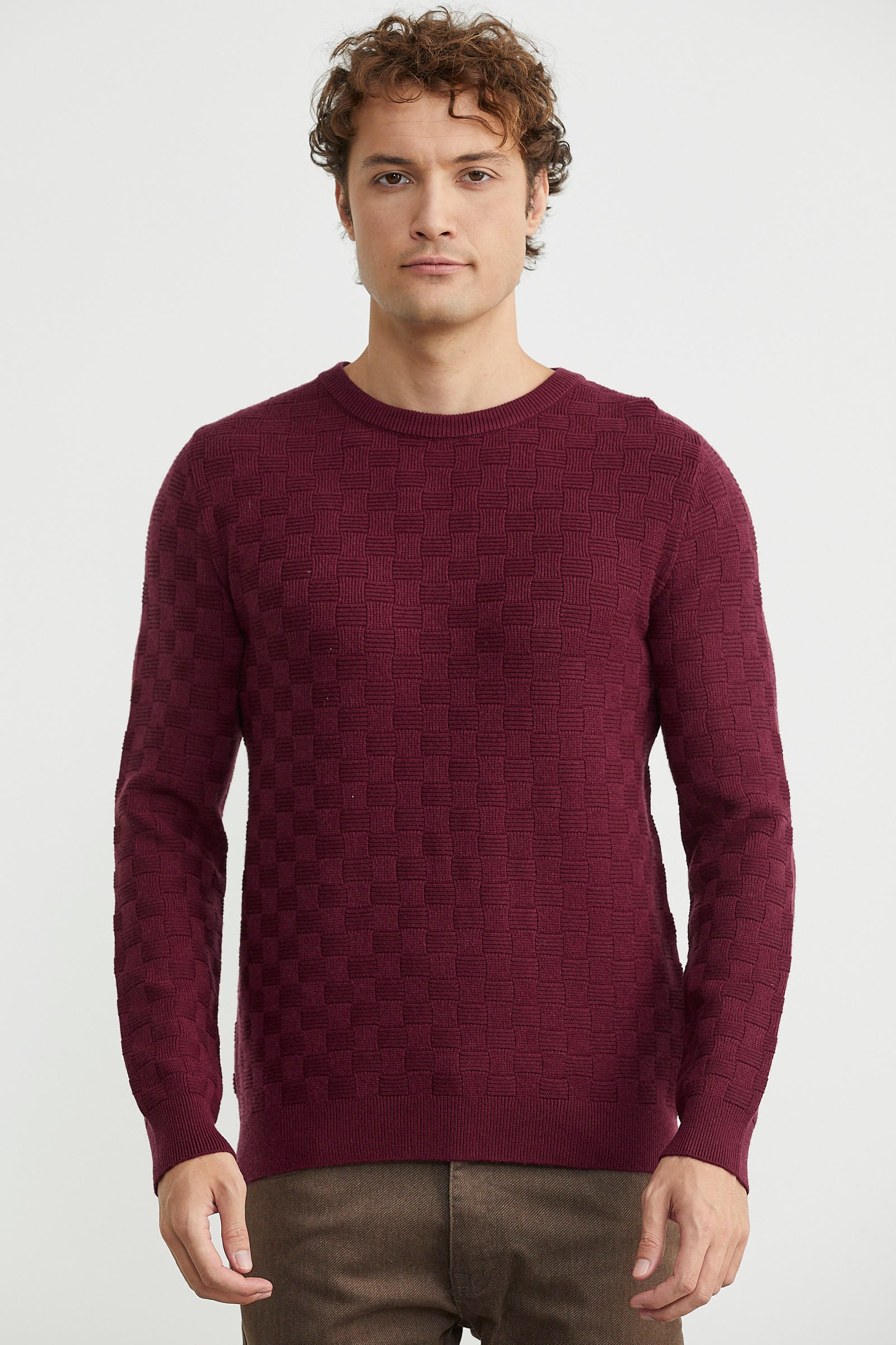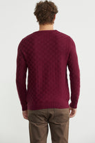 Motifli Sıfır Yaka Triko Kazak - Bordo