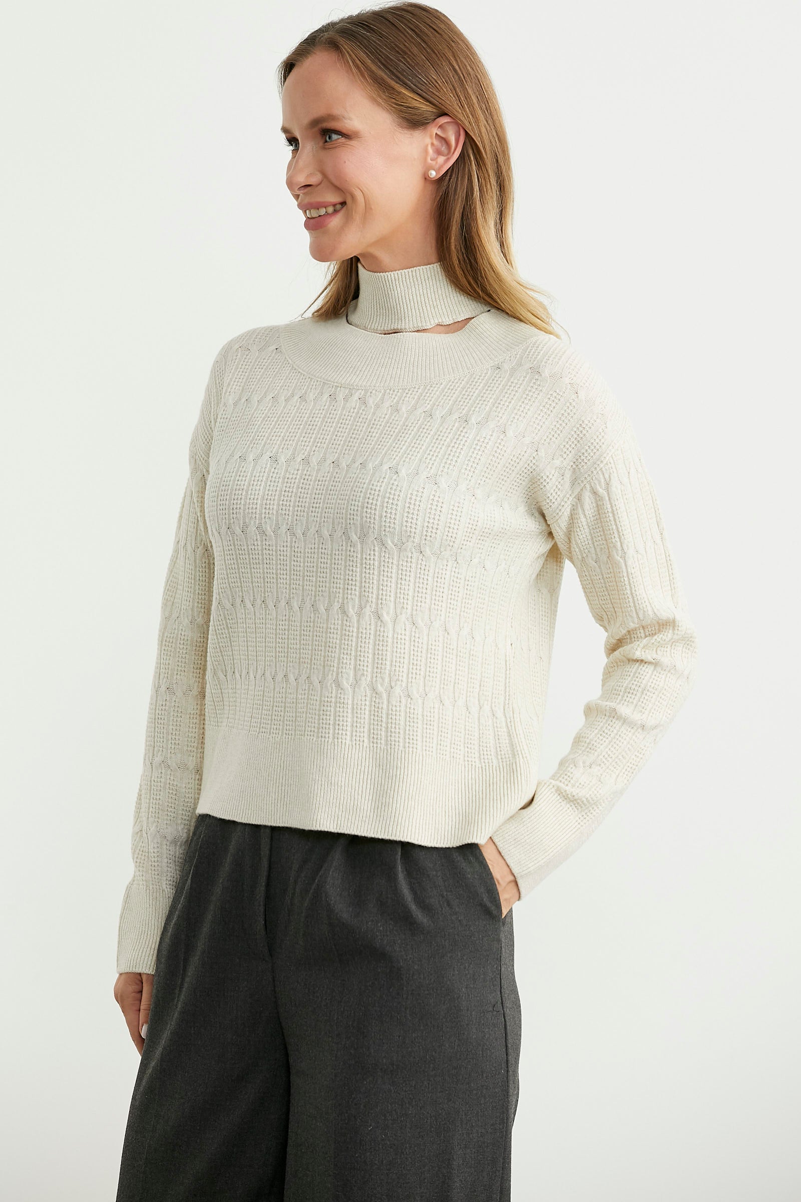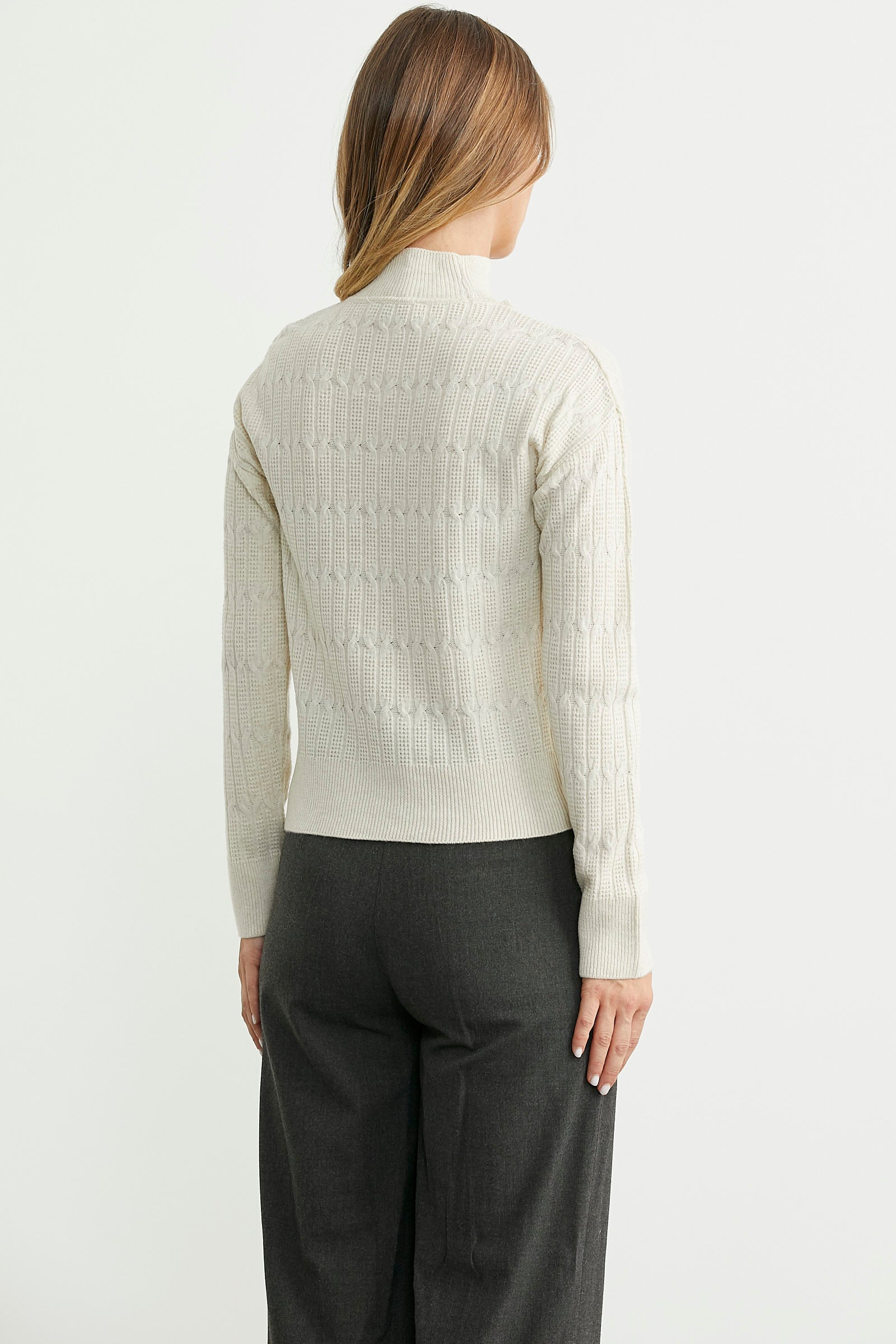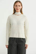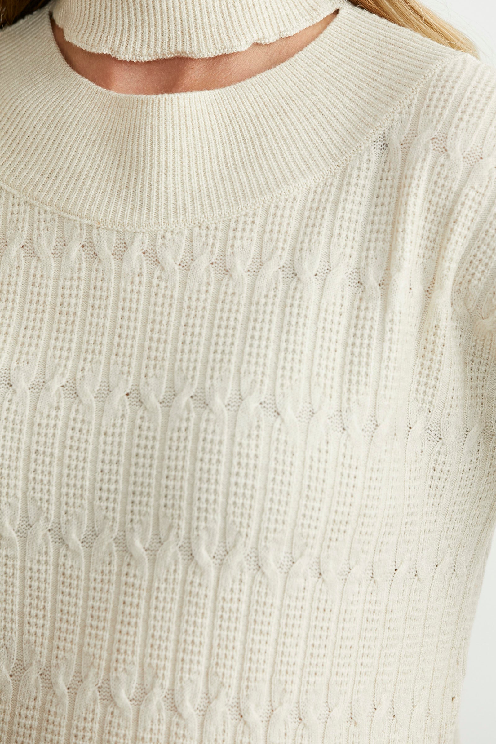 Saç Örgü Basic Dik Yaka Triko Kazak - Taş